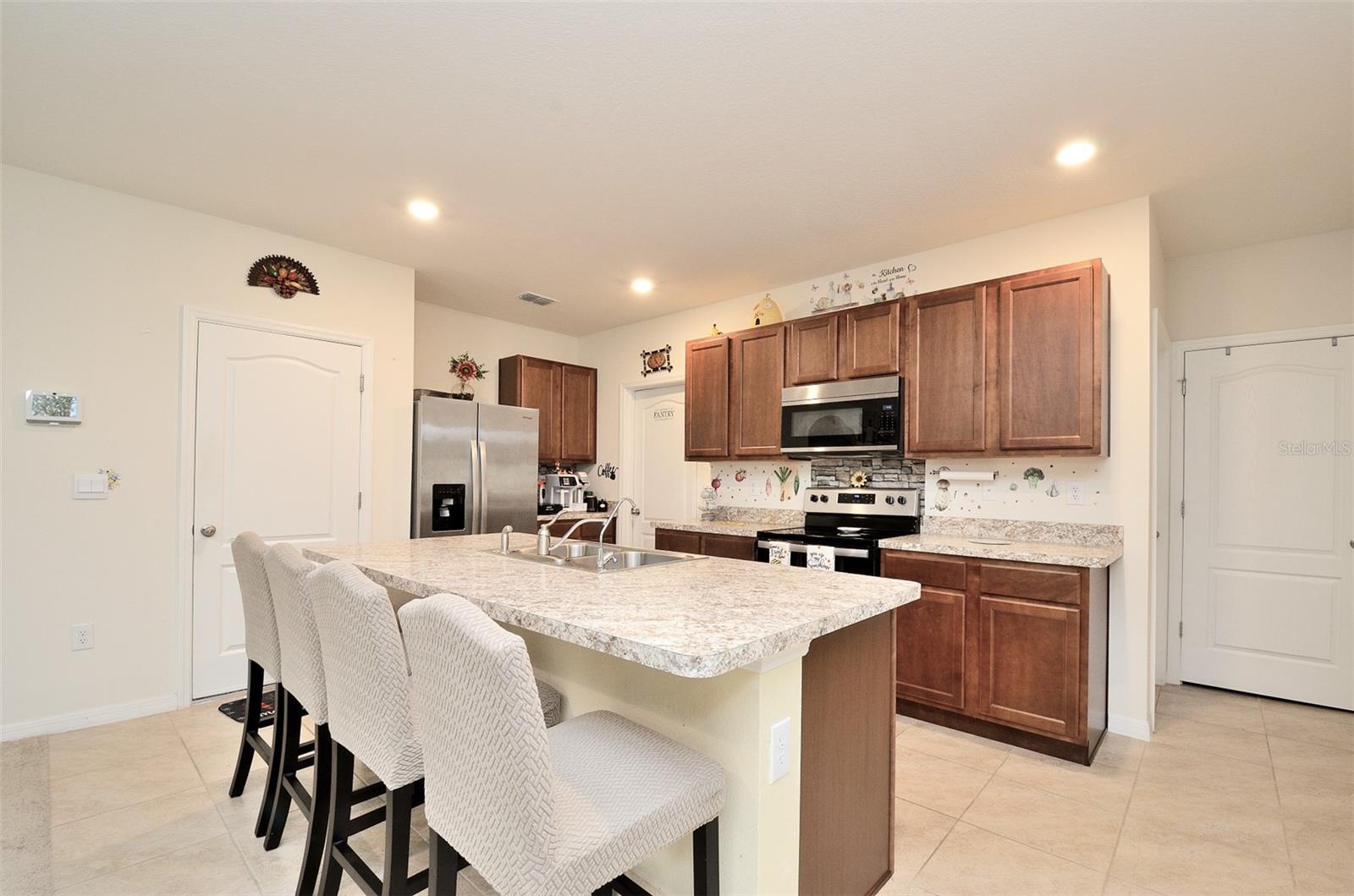 Welcome to your dream home in the highly sought-after Horse Creek at Crosswinds community, located in Davenport. This stunning 5 bedroom, 3-bathroom model offers an impressive 2,447 sq. ft. of living space and is perfect for modern family living. Step inside and be greeted by a spacious open-concept floor plan, featuring a beautifully designed kitchen with a large island, stainless steel appliances, and ample cabinetry— ideal for entertaining guests and family gatherings. The main floor includes a convenient bedroom and a full bathroom, perfect for guests or multi-generational living. Upstairs, you'll find a versatile loft area, perfect for a home office or playroom, along with additional bedrooms and a xurious master suite complete with a walk-in closet and an ensuite bathroom featuring dual vanities and a large shower. Located just minute way from major highway I-4, this home offers easy access to all that Central Florida amusement parks, highways and entertainment. Enjoy nearby shopping at Posner Park, Target, and Publix, as well as world-class entertainment and dining options in ChampionsGate, this location is erfect for families looking for both convenience and a vibrant community atmosphere. Schedule your showing today and discover the perfec blend of comfort, style, and convenience.