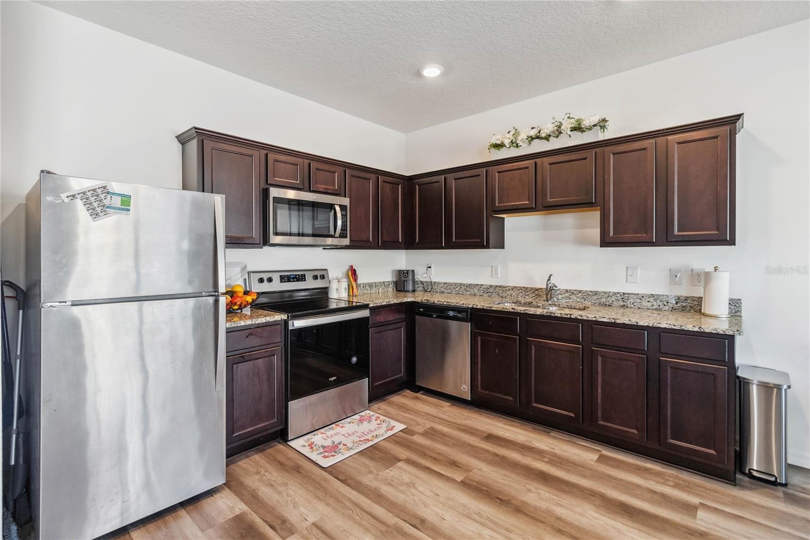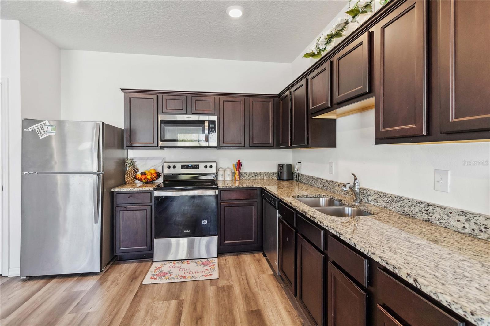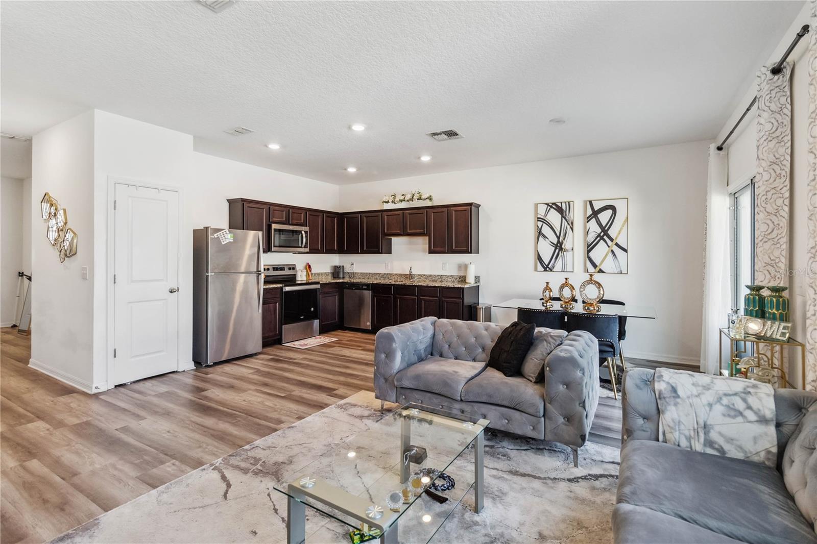 BETTER THAN NEW CONSTRUCTION! NO CARPET, FENCED BACKYARD AND $5000.00 towards your CLOSING COSTS, when using our preferred lender! The interior showcases beautiful laminate flooring that flows seamlessly throughout the inviting first floor. As you enter, you are greeted by a spacious entryway that sets the stage for the well-designed layout, leading to the modern kitchen that flows effortlessly into a cozy dining and living room combo — ideal for entertaining friends and family. Upstairs, you will find all the comfortable bedrooms, providing a serene retreat at the end of the day, as well as a dedicated laundry room for added convenience. This home is situated in a vibrant community, just a short stroll away from the refreshing community pool, convenient mailboxes, and a fun playground. Additionally, the townhome features an attached single-car garage, along with extra parking available in the driveway, making it a practical choice for families. Experience the perfect blend of comfort and convenience in this delightful Davenport townhome!