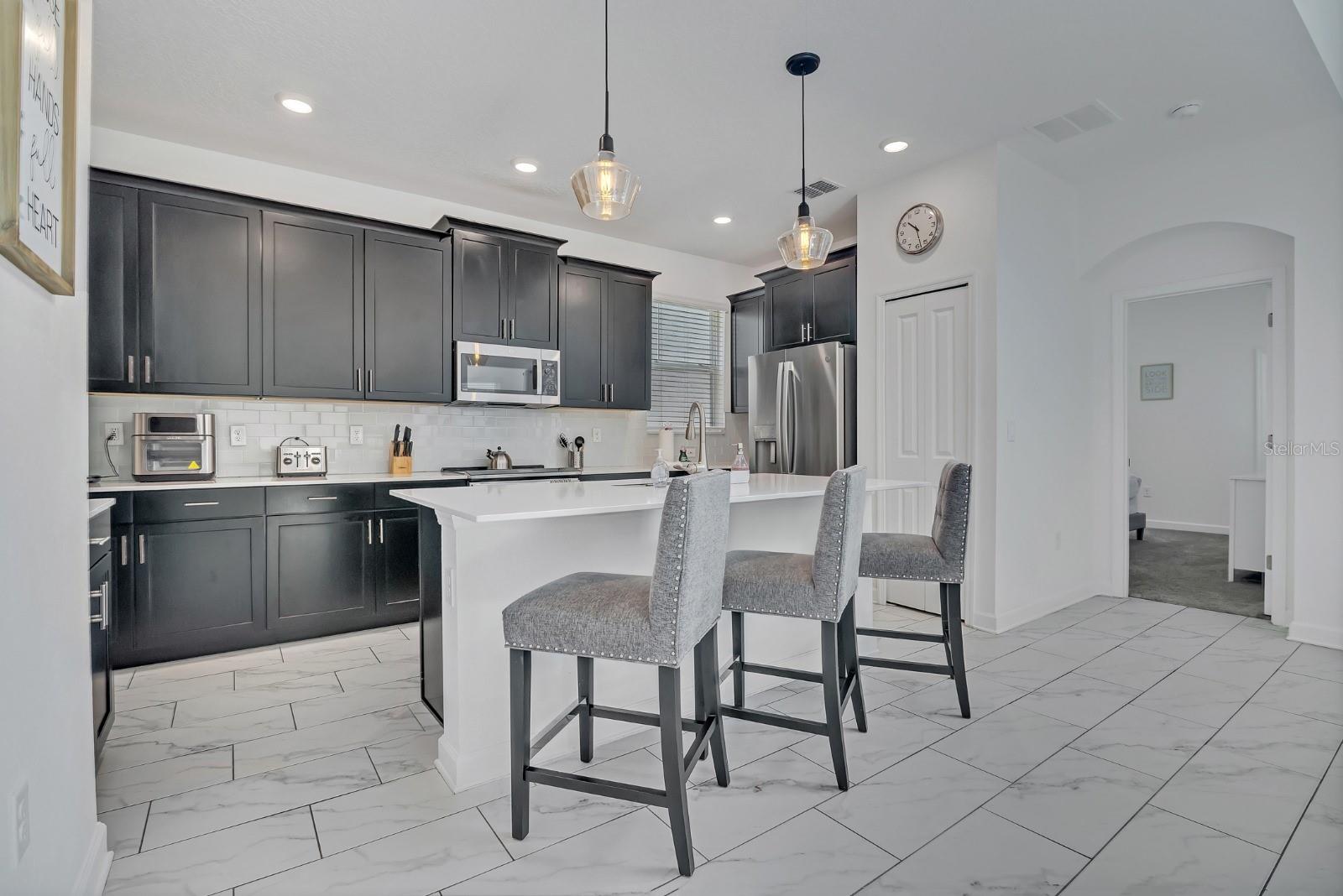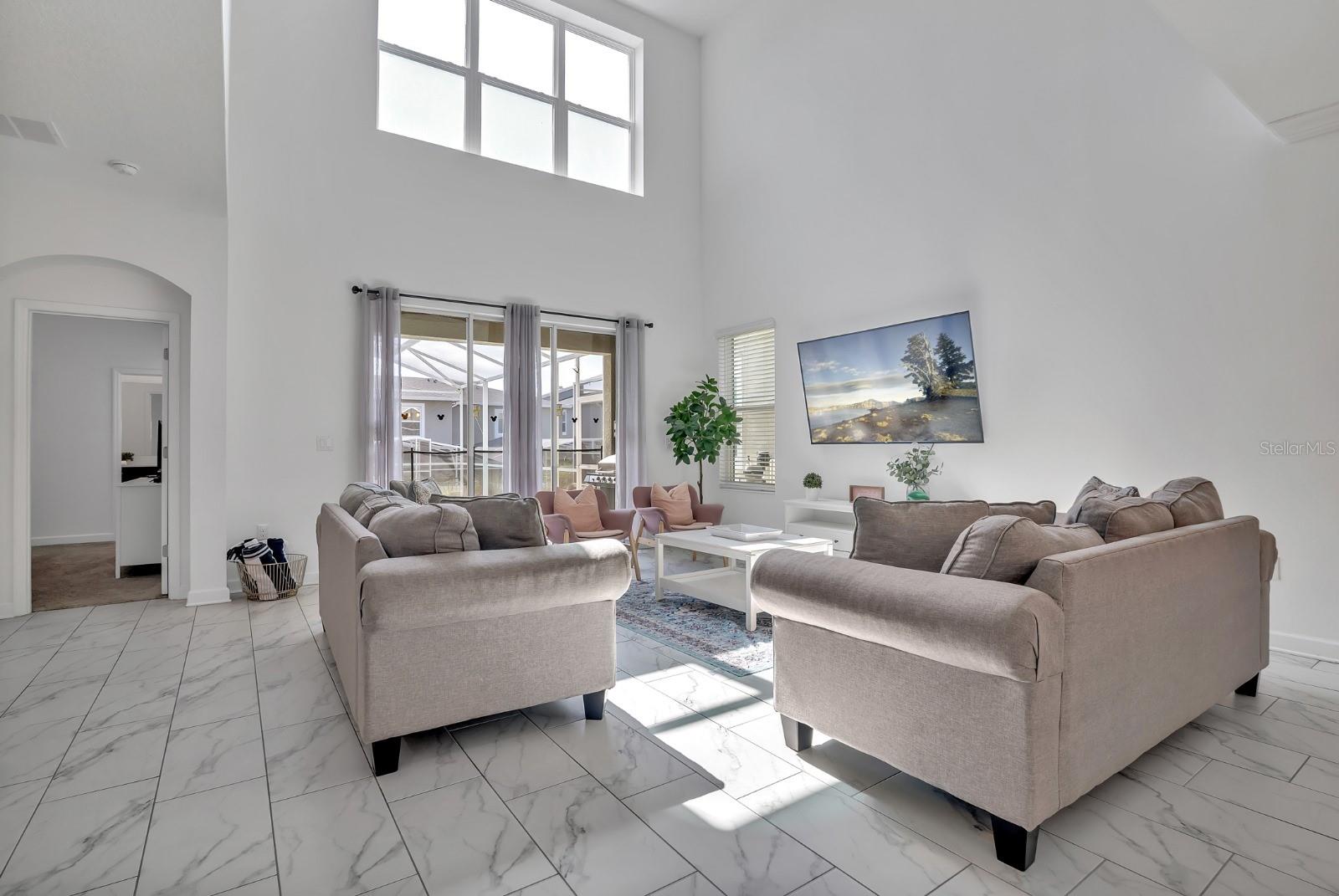 This stunning 5-bedroom, 5-bathroom single-family home is located in the highly sought-after Champions Gate community in Florida. This fully furnished home is a perfect blend of luxury, comfort, and convenience. It offers a spacious and open floor plan, each bedroom is well-appointed, with ample space and comfort, including two master ensuite options. Both master suites include a luxurious and spacious bathroom. The kitchen is equipped with stainless steel appliances, quartz countertops, modern cabinetry, and a large island with seating. Open living & dining area ideal for entertaining, featuring large windows that bring in plenty of natural light. Come enjoy Florida’s sunshine with a screened-in pool, spa, and a spacious patio for outdoor relaxation. Resort-Style amenities located in Champions Gate, residents and guests have access, the Oasis Club, featuring a lazy river, water park, clubhouse, fitness center, restaurant, golf course, soccer fields, playgrounds and more. Retreat water park with splash pad, water slide, restaurant and bar. Prime location, just minutes from Disney, shopping, dining, and major highways like, I-4 and US 27 for easy access to Orlando’s top attractions.