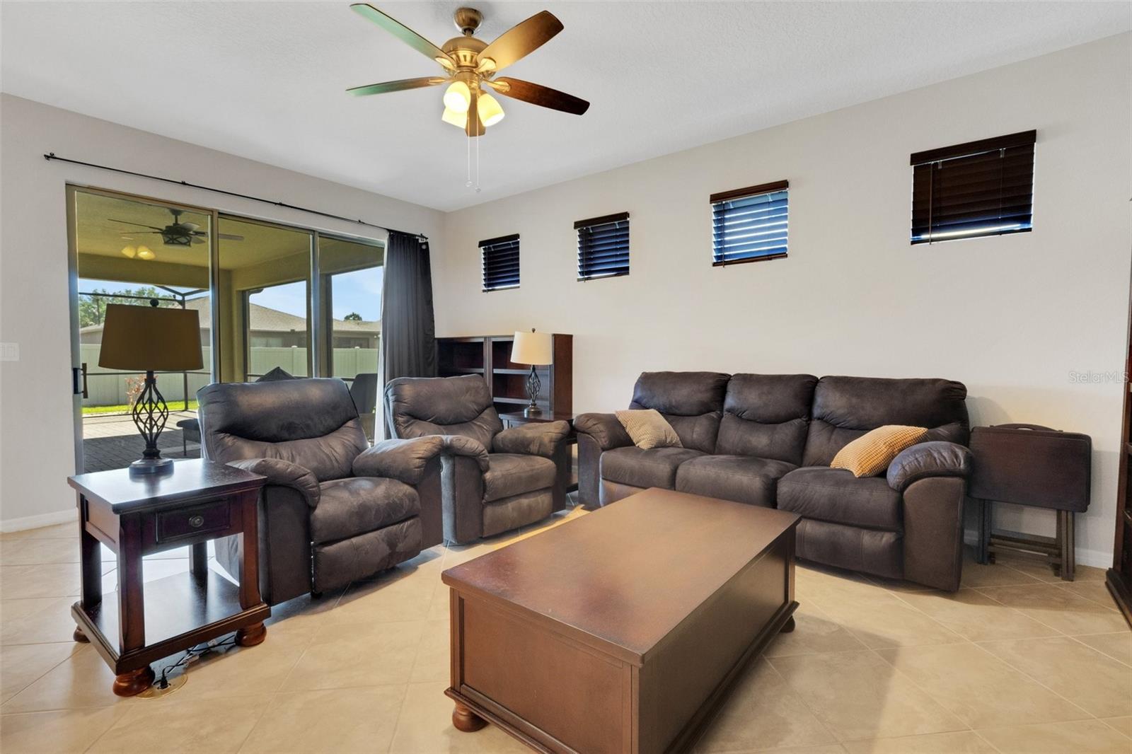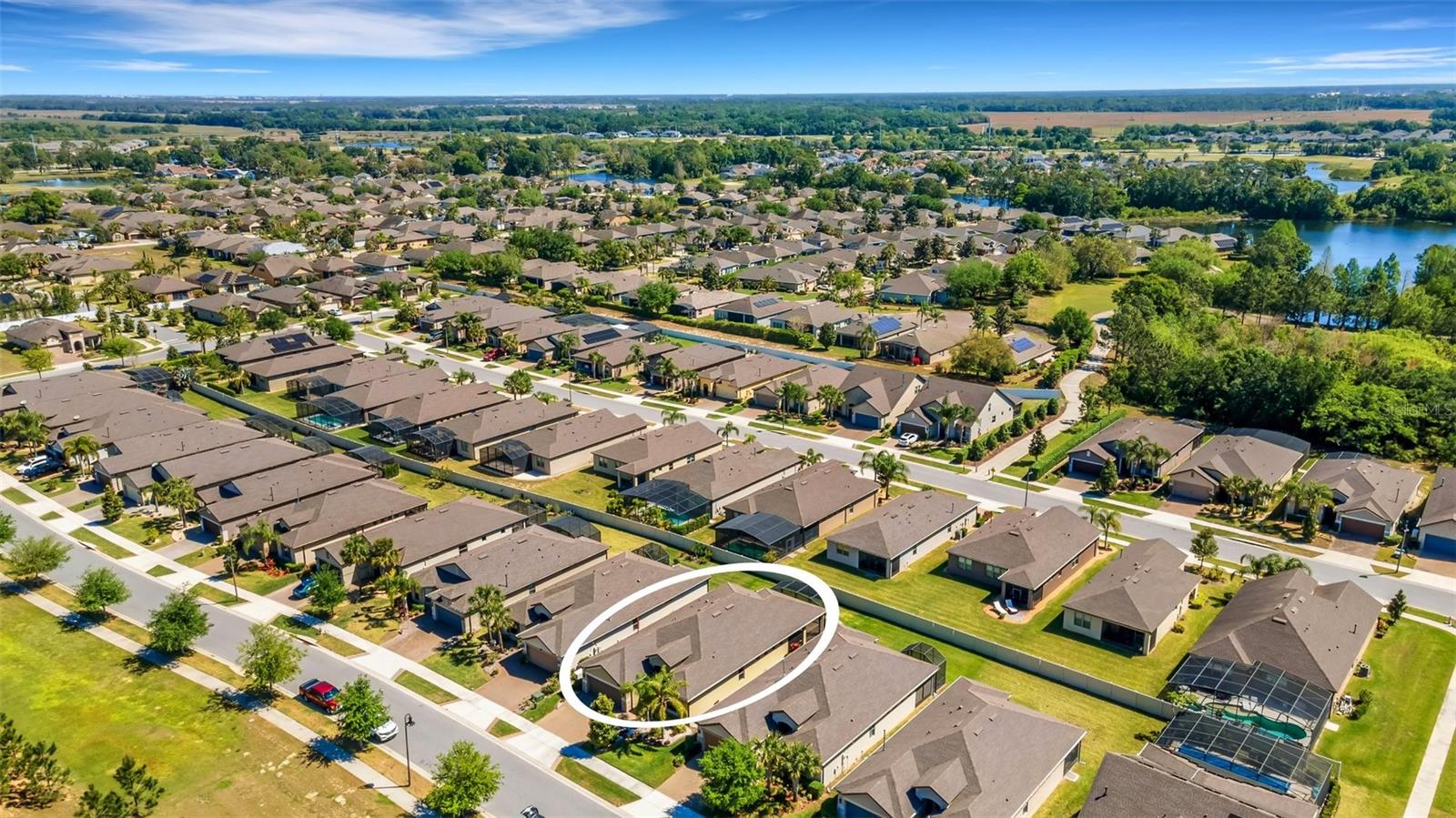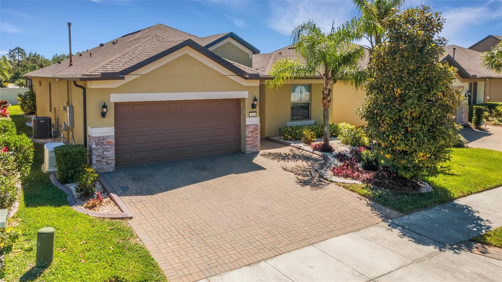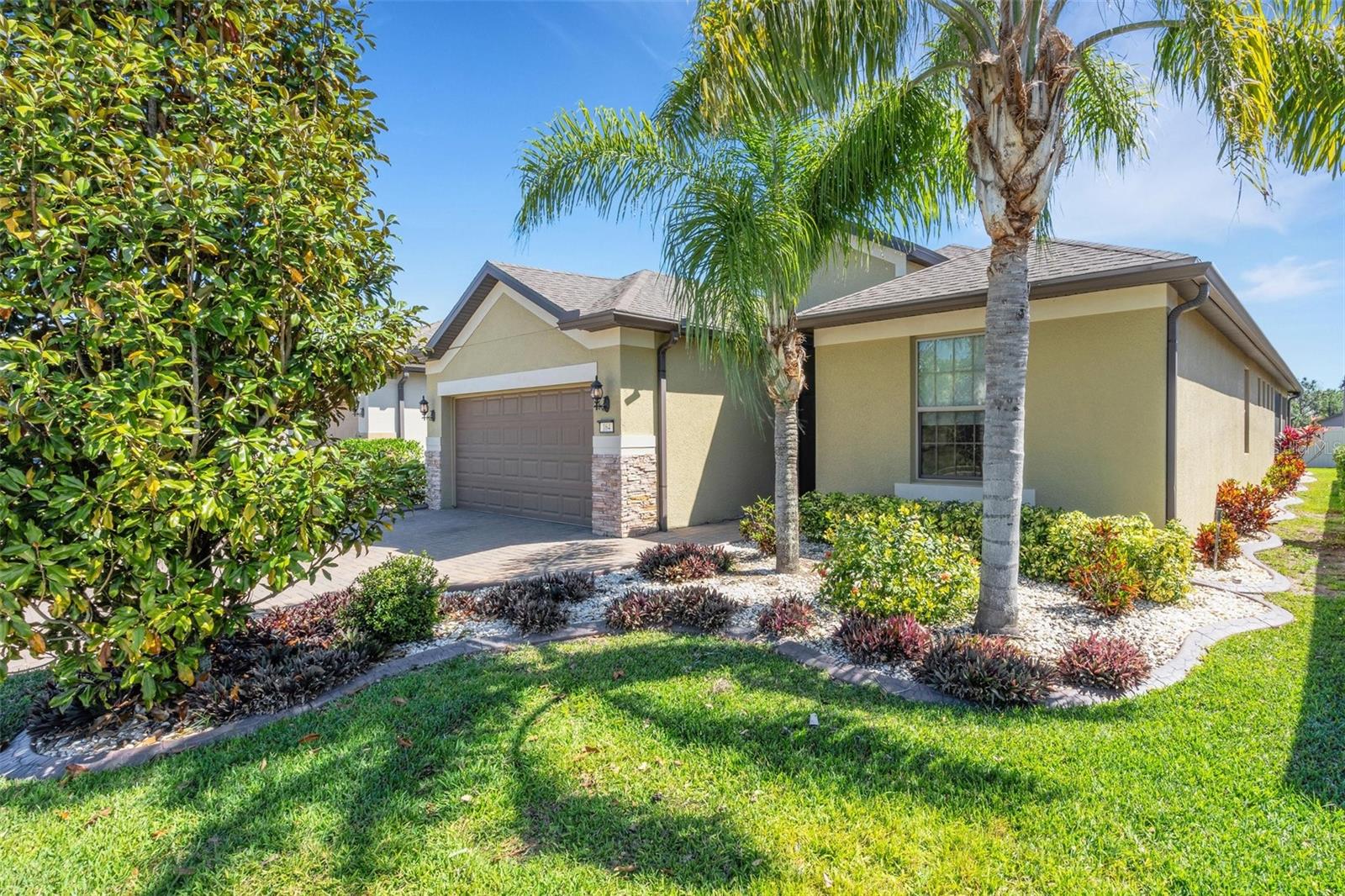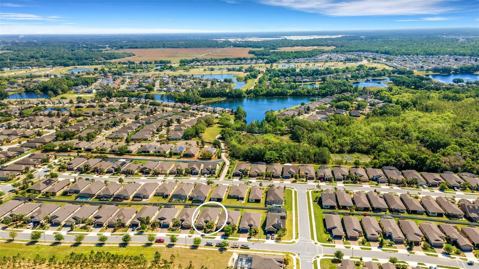 Located in the desired 55+ RESORT STYLE community of Del Webb Orlando, this Beautiful Summerwood floor plan is a MUST SEE! This home features 3 bedrooms + a den, and 2 bathrooms. You walk into the screened front porch and through the decorative front door into the open floor plan. The guest bedrooms and bathroom are in the front of the home. The heart of the home, the kitchen, features black appliances including a NATURAL GAS STOVE, granite countertops, a backsplash, a large island perfect for entertaining, and a spacious pantry. The PRIMARY BEDROOM is in the rear of the home for owner privacy. The primary bathroom suite features double sinks with granite countertops, a extra-large tiled shower, and a large walk-in closet. The dining room is conveniently located adjacent to the kitchen. The large living room features large glass sliding doors that open to the extended covered lanai with a NATURAL GAS HOOK-UP. Beyond the covered lanai is a screened cage. The large laundry room includes a utility sink and built-in cabinets. Best of all this home features ceramic tile laid on the diagonal throughout - NO CARPET! The home also includes a WHOLE-HOUSE GENERATOR and a WHOLE-HOUSE VACUUM. The 2-car garage has a 4' extension and a utility sink. The additional home upgrades include updated lighting and ceiling fans and a NATURAL GAS hot water heater. The exterior of the home features a extra-wide paver driveway, gutters and concrete landscaping curbing. The $328 monthly Del Webb HOA fee includes lawn maintenance, and exclusive access to resident-owned 30,000+ SF Montecito clubhouse and amenities. DEL WEBB ORLANDO is a 55+ community with a tavern, indoor walking track, fitness center, indoor and outdoor pools and spas with locker rooms and showers, billiards, ping pong, craft room, and a ballroom for special events. Outdoor activities include pickleball, tennis, bocce, basketball, shuffleboard, community gardening center, an outdoor amphitheater, large brick fire pit and large screened-in gazebo over the water. Miles of biking and walking trails within Ridgewood Lakes gated community. The $425 semi-annual HOA fee provides 24x7 staffed security gate and master association-owned private road maintenance. Adjacent to recently renovated 18-hole White Heron Golf Club. Community is located conveniently to shopping at Posner Park (4 miles), Disney World, Universal Studios, Orlando & Central FL entertainment nearby. Easy access to I-4, medical facilities, airports & Sunrail Station. Advent Health hospital is 3 miles away.