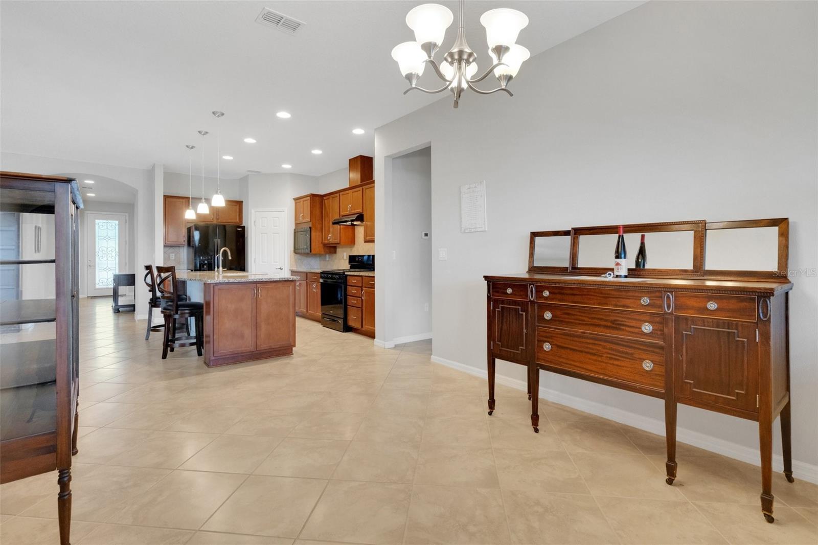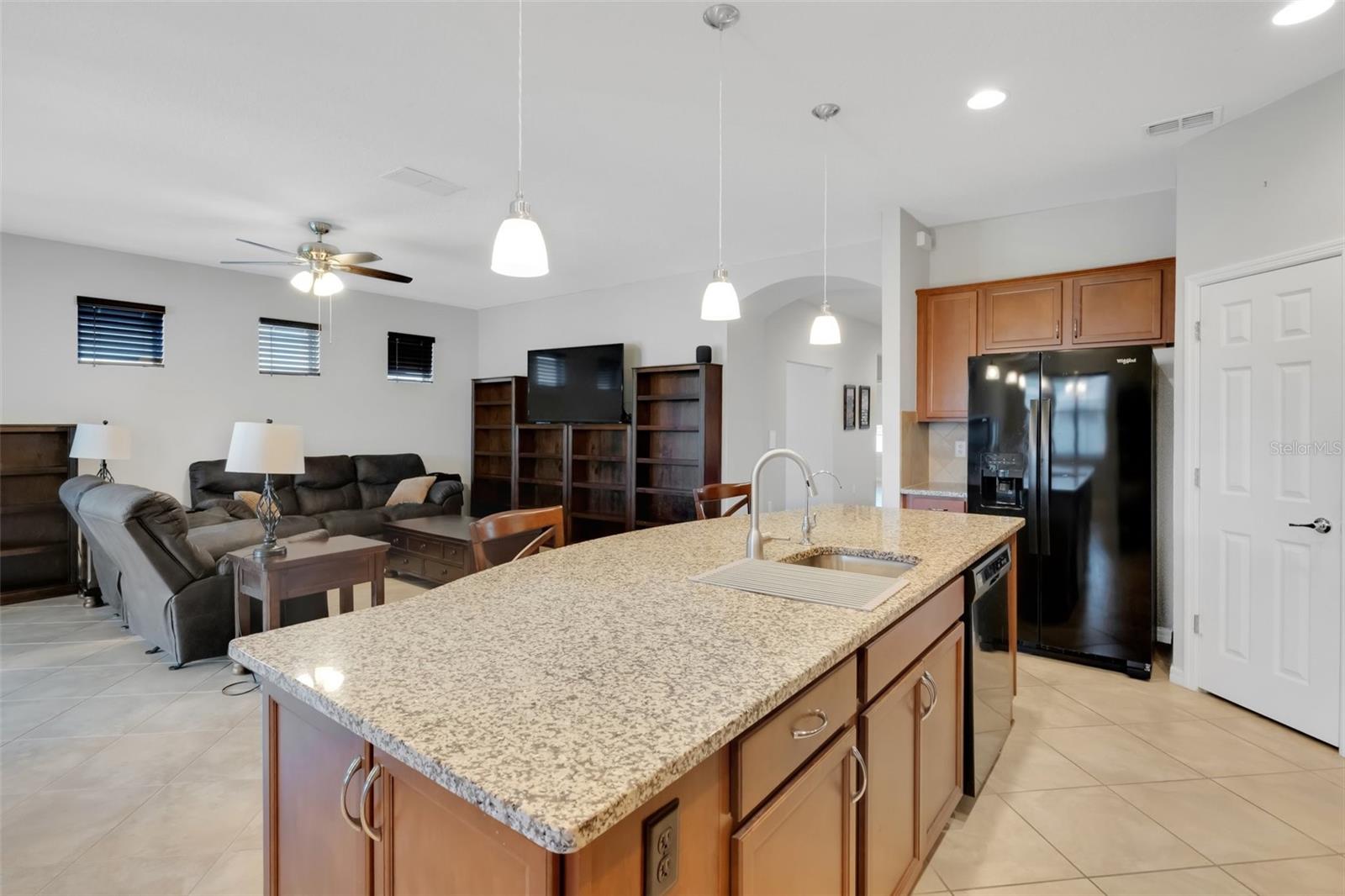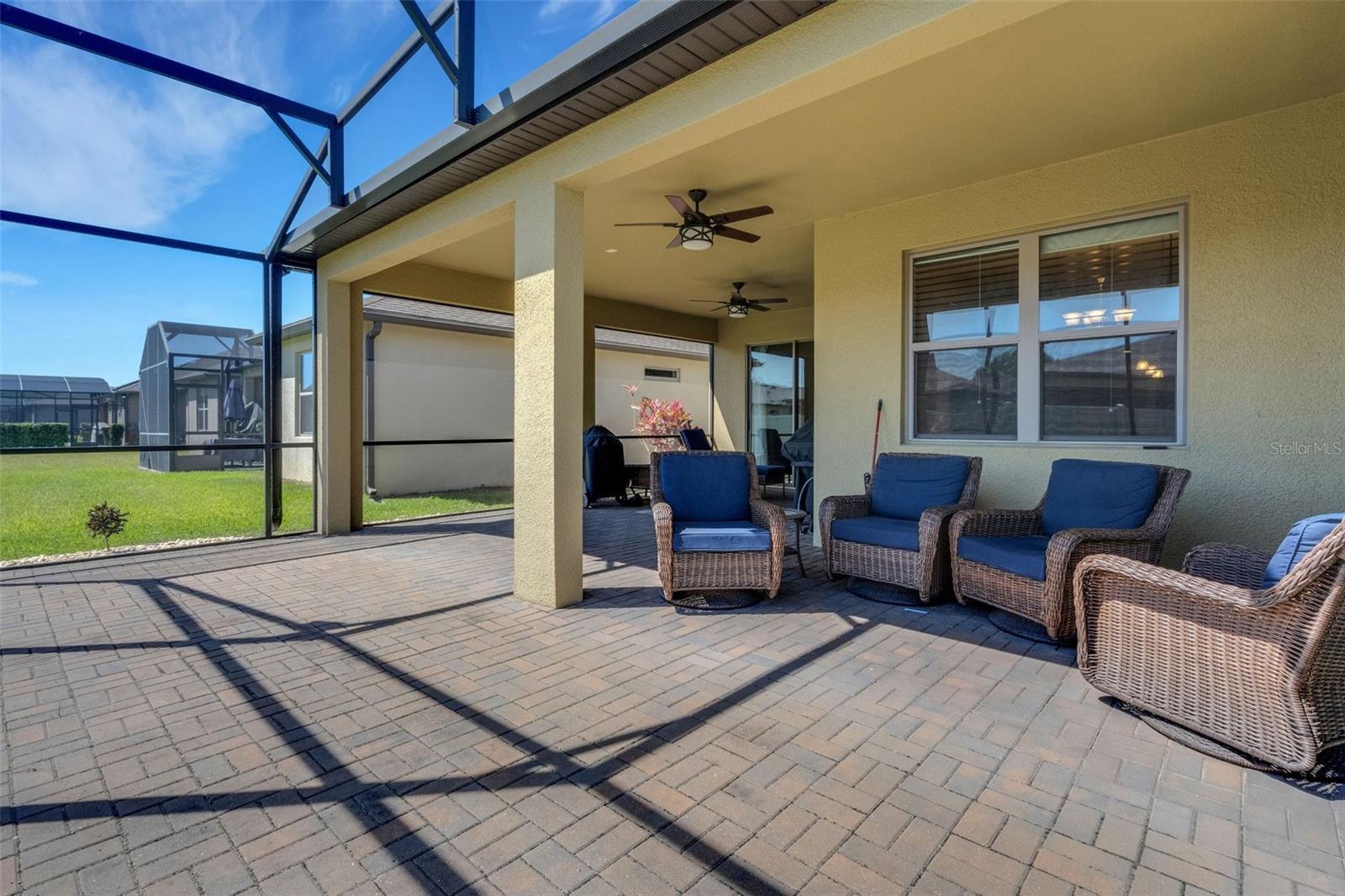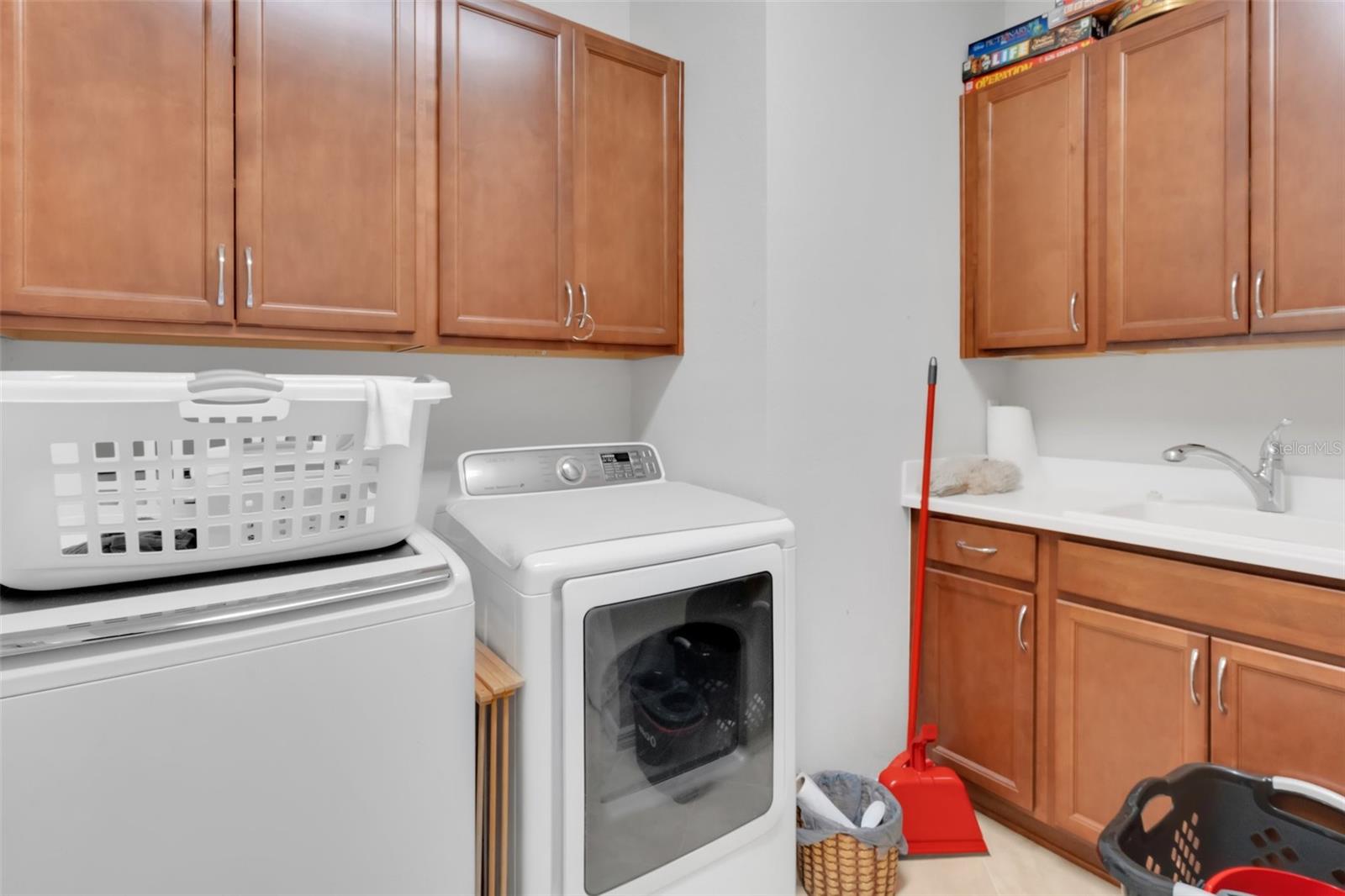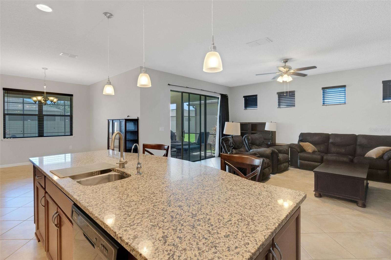 Located in the desired 55+ RESORT STYLE community of Del Webb Orlando, this Beautiful Summerwood floor plan is a MUST SEE! This home features 3 bedrooms + a den, and 2 bathrooms. You walk into the screened front porch and through the decorative front door into the open floor plan. The guest bedrooms and bathroom are in the front of the home. The heart of the home, the kitchen, features black appliances including a NATURAL GAS STOVE, granite countertops, a backsplash, a large island perfect for entertaining, and a spacious pantry. The PRIMARY BEDROOM is in the rear of the home for owner privacy. The primary bathroom suite features double sinks with granite countertops, a extra-large tiled shower, and a large walk-in closet. The dining room is conveniently located adjacent to the kitchen. The large living room features large glass sliding doors that open to the extended covered lanai with a NATURAL GAS HOOK-UP. Beyond the covered lanai is a screened cage. The large laundry room includes a utility sink and built-in cabinets. Best of all this home features ceramic tile laid on the diagonal throughout - NO CARPET! The home also includes a WHOLE-HOUSE GENERATOR and a WHOLE-HOUSE VACUUM. The 2-car garage has a 4' extension and a utility sink. The additional home upgrades include updated lighting and ceiling fans and a NATURAL GAS hot water heater. The exterior of the home features a extra-wide paver driveway, gutters and concrete landscaping curbing. The $328 monthly Del Webb HOA fee includes lawn maintenance, and exclusive access to resident-owned 30,000+ SF Montecito clubhouse and amenities. DEL WEBB ORLANDO is a 55+ community with a tavern, indoor walking track, fitness center, indoor and outdoor pools and spas with locker rooms and showers, billiards, ping pong, craft room, and a ballroom for special events. Outdoor activities include pickleball, tennis, bocce, basketball, shuffleboard, community gardening center, an outdoor amphitheater, large brick fire pit and large screened-in gazebo over the water. Miles of biking and walking trails within Ridgewood Lakes gated community. The $425 semi-annual HOA fee provides 24x7 staffed security gate and master association-owned private road maintenance. Adjacent to recently renovated 18-hole White Heron Golf Club. Community is located conveniently to shopping at Posner Park (4 miles), Disney World, Universal Studios, Orlando & Central FL entertainment nearby. Easy access to I-4, medical facilities, airports & Sunrail Station. Advent Health hospital is 3 miles away.