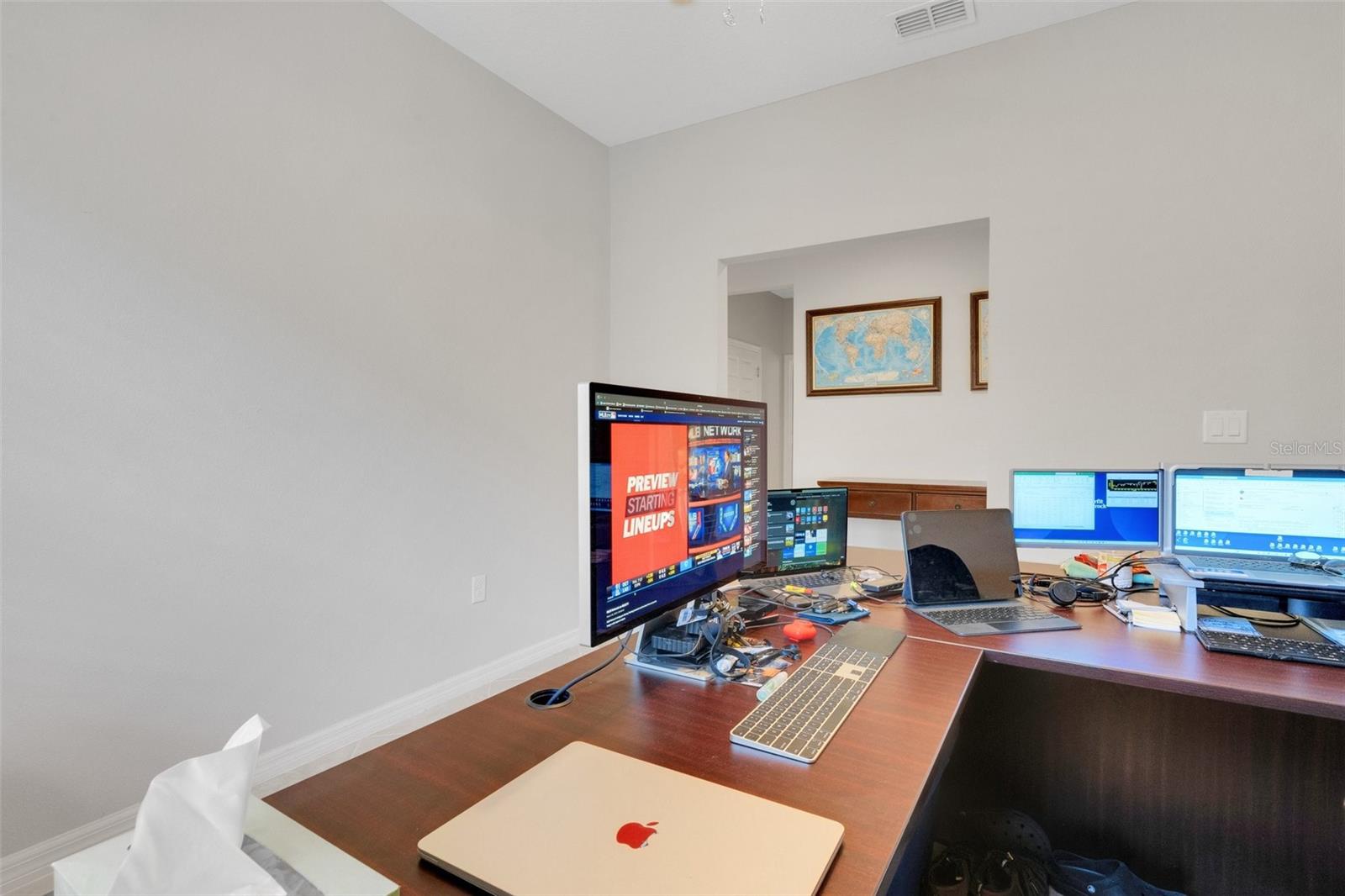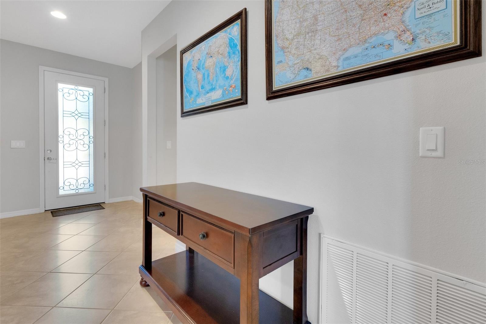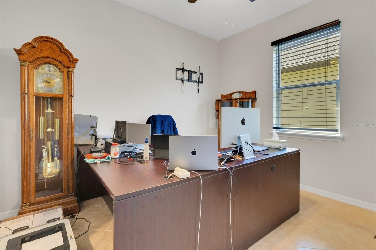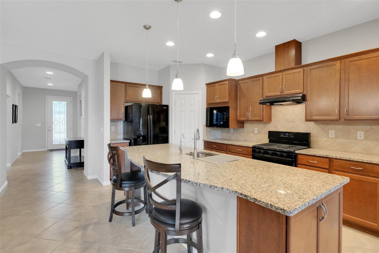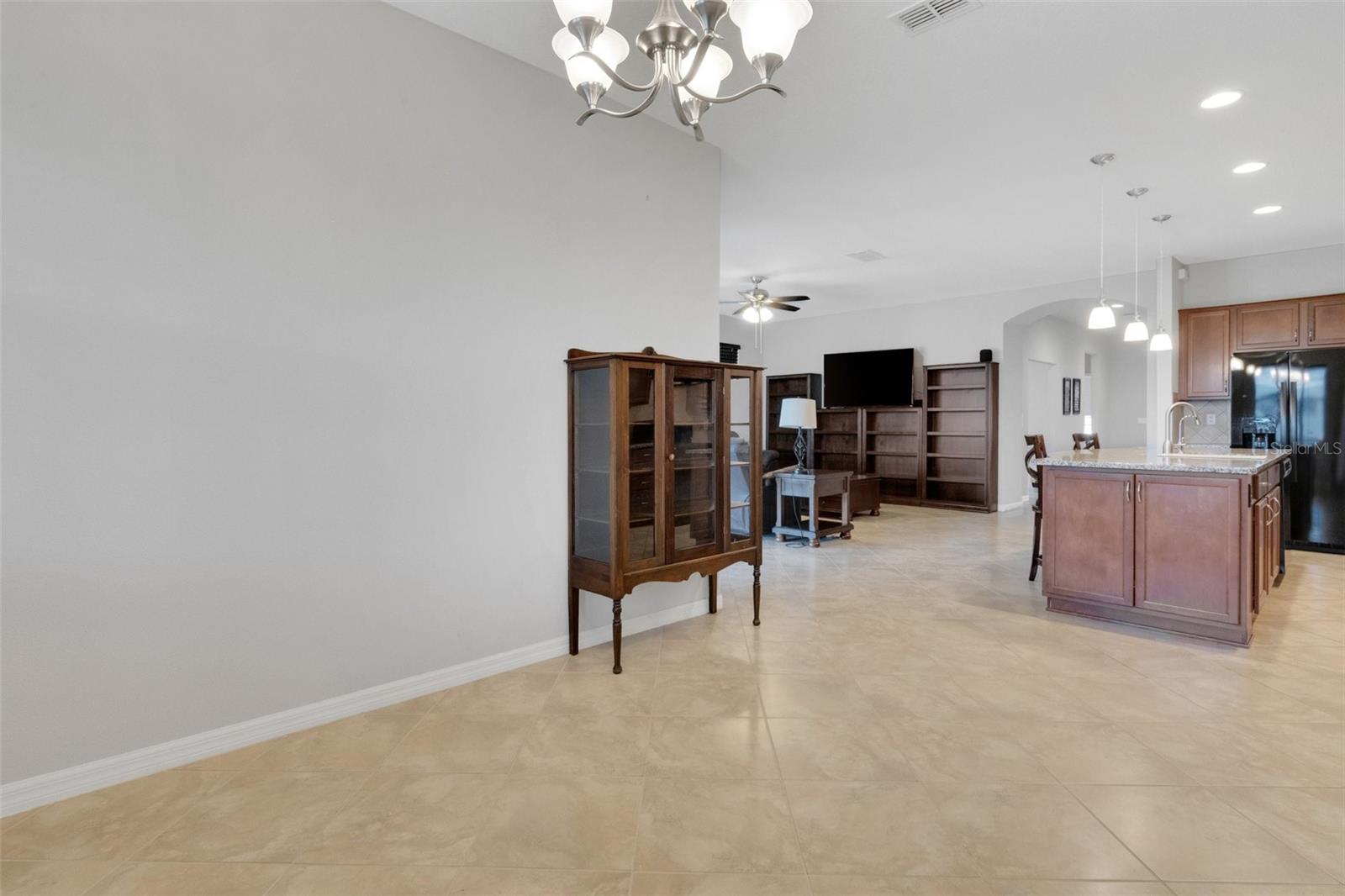 Located in the desired 55+ RESORT STYLE community of Del Webb Orlando, this Beautiful Summerwood floor plan is a MUST SEE! This home features 3 bedrooms + a den, and 2 bathrooms. You walk into the screened front porch and through the decorative front door into the open floor plan. The guest bedrooms and bathroom are in the front of the home. The heart of the home, the kitchen, features black appliances including a NATURAL GAS STOVE, granite countertops, a backsplash, a large island perfect for entertaining, and a spacious pantry. The PRIMARY BEDROOM is in the rear of the home for owner privacy. The primary bathroom suite features double sinks with granite countertops, a extra-large tiled shower, and a large walk-in closet. The dining room is conveniently located adjacent to the kitchen. The large living room features large glass sliding doors that open to the extended covered lanai with a NATURAL GAS HOOK-UP. Beyond the covered lanai is a screened cage. The large laundry room includes a utility sink and built-in cabinets. Best of all this home features ceramic tile laid on the diagonal throughout - NO CARPET! The home also includes a WHOLE-HOUSE GENERATOR and a WHOLE-HOUSE VACUUM. The 2-car garage has a 4' extension and a utility sink. The additional home upgrades include updated lighting and ceiling fans and a NATURAL GAS hot water heater. The exterior of the home features a extra-wide paver driveway, gutters and concrete landscaping curbing. The $328 monthly Del Webb HOA fee includes lawn maintenance, and exclusive access to resident-owned 30,000+ SF Montecito clubhouse and amenities. DEL WEBB ORLANDO is a 55+ community with a tavern, indoor walking track, fitness center, indoor and outdoor pools and spas with locker rooms and showers, billiards, ping pong, craft room, and a ballroom for special events. Outdoor activities include pickleball, tennis, bocce, basketball, shuffleboard, community gardening center, an outdoor amphitheater, large brick fire pit and large screened-in gazebo over the water. Miles of biking and walking trails within Ridgewood Lakes gated community. The $425 semi-annual HOA fee provides 24x7 staffed security gate and master association-owned private road maintenance. Adjacent to recently renovated 18-hole White Heron Golf Club. Community is located conveniently to shopping at Posner Park (4 miles), Disney World, Universal Studios, Orlando & Central FL entertainment nearby. Easy access to I-4, medical facilities, airports & Sunrail Station. Advent Health hospital is 3 miles away.