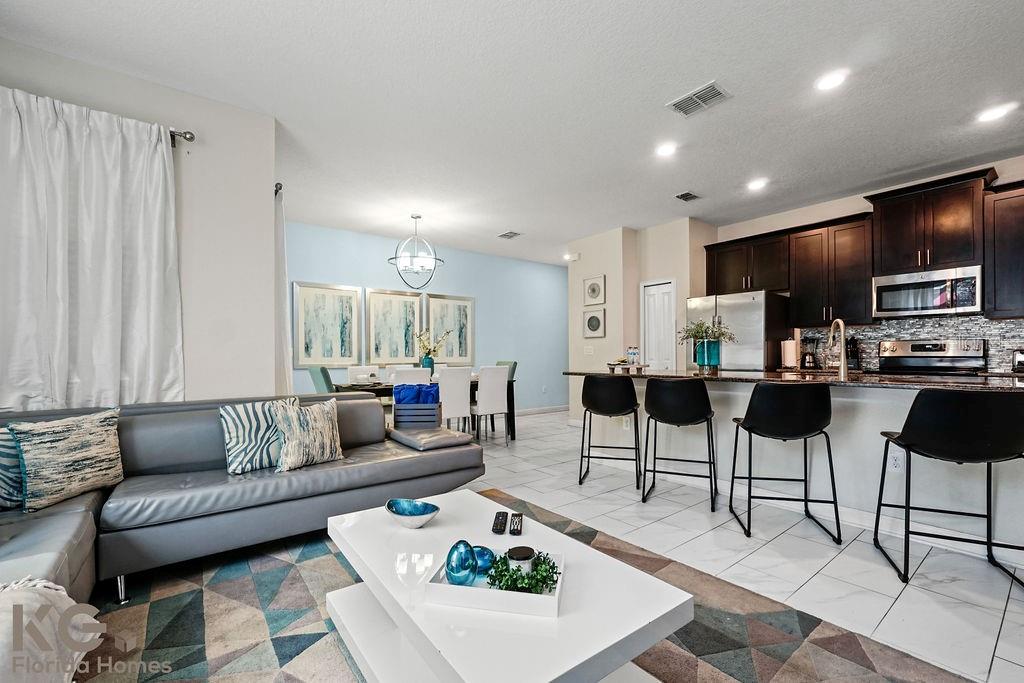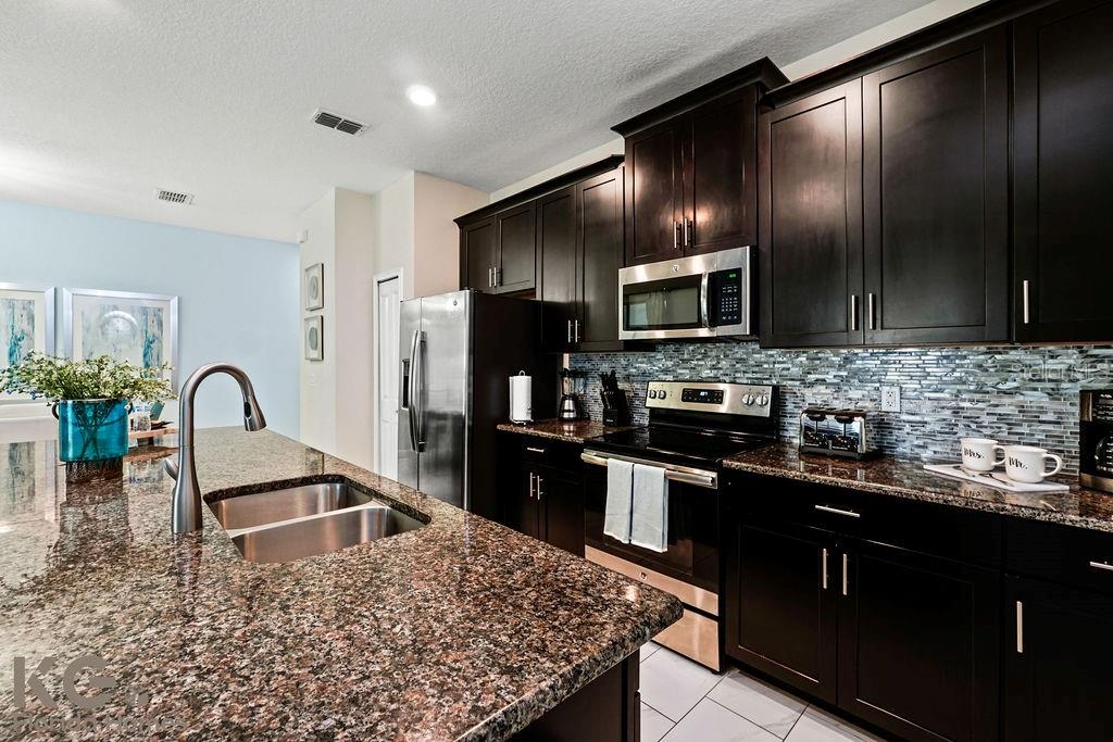 Welcome to Champions Gate. Now is your golden opportunity to relish maintenance free living and enjoy a luxury, "lifestyle by design." Fully furnished, beautiful home with it's own private pool and includes exclusive access to spectacular, world class amenities such as: a) the amazing Oasis Club that proudly boasts 3 pools: one pool for the little ones with a splash pad, a larger pool for all that features a lazy river, and one pool for adults with a tiki bar, private air-conditioned cabanas, and Jacuzzi, restaurant, workout room with the latest equipment, playroom, game room, a movie theatre that seats 26, office center, gym; and b) the Plaza. The Plaza has 2 pools, a restaurant, fitness center, sauna and showers. Private and secure, residents and registered guests only will enter via the 24-hr man-guarded entrance. You will feel like royalty coming home to your modern open floor plan that looks out onto the pool and is just perfect for spending time with friends or just winding down alone after a long and hard day at work. If you feel like staying in and cooking at home, you will be pleased to find a huge breakfast bar, with an inside mount sink that comfortable seats 4, granite countertops and backsplash in modern, neutral colors, stainless steel appliances and 42" maple cabinets. Upstairs you will find all the bedrooms nicely tucked away and plenty of closet space for storage. A relaxed and calm atmosphere awaits in the spacious master suite with its ample and enlightened space. HOA also includes, lawn care, cable, tv, internet, and alarm. Champions Gate is one of Orlando's premier destinations that proudly caters to homeowners and investors alike. Located just minutes away from Orlando International Airport, Disney World Parks, local restaurants, and shops. Whether you make this your next "home sweet (stress-free) home" or savvy investment strategy, you will be delighted that you took action. Back to the market for buyer contingency!!!!! Seller is motivated