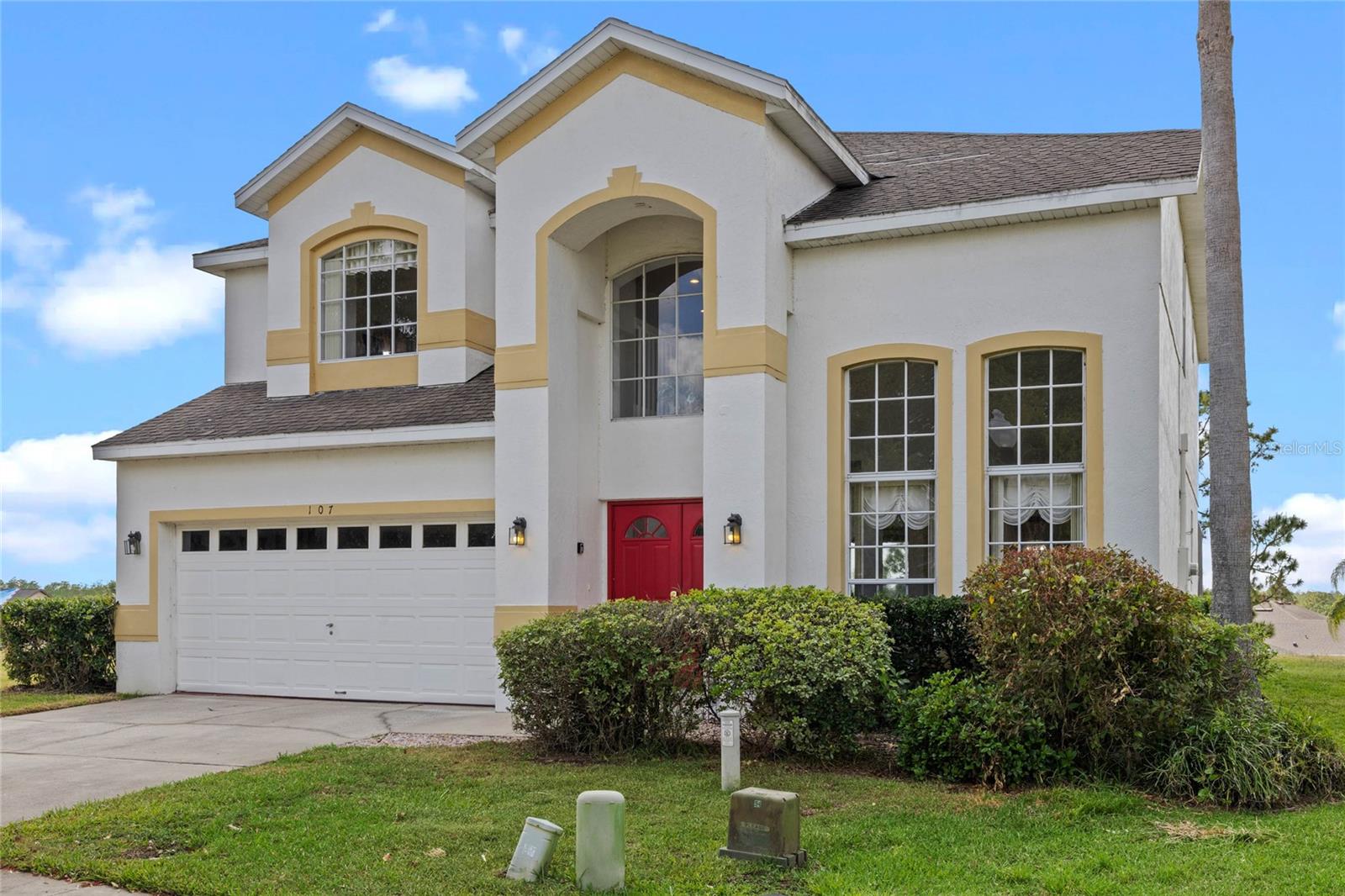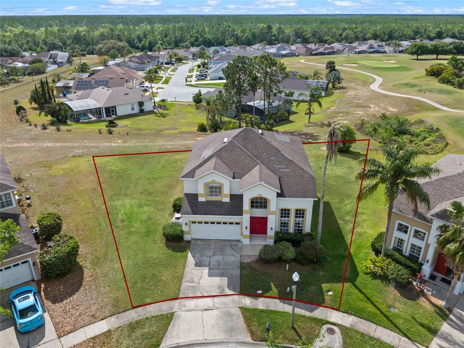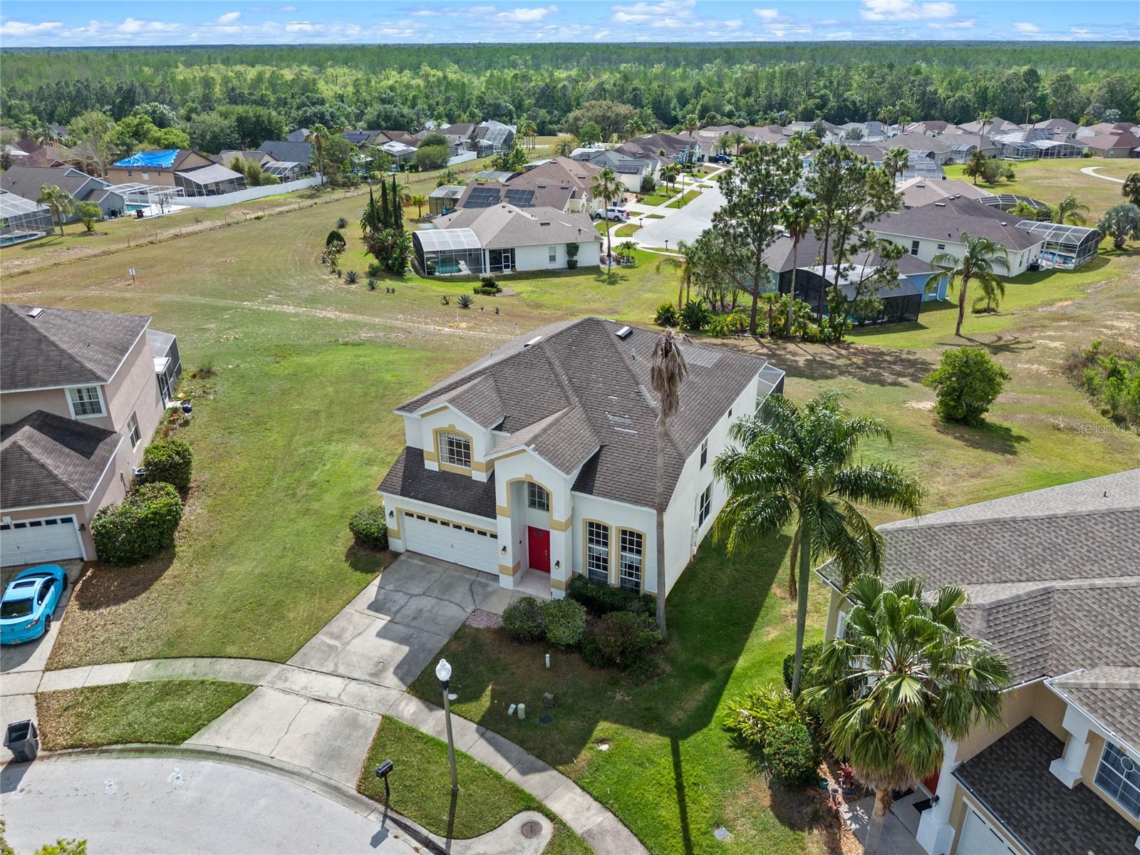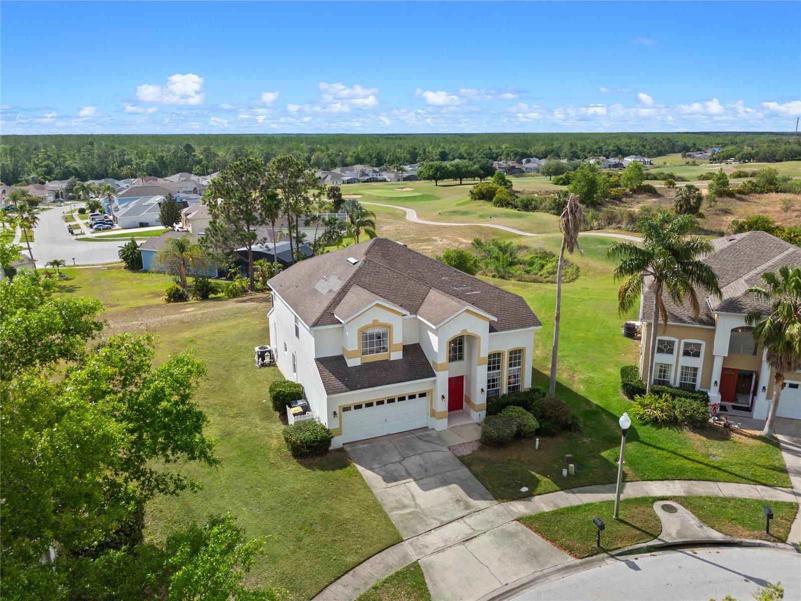 Welcome to 107 Troon Circle.. this is an imposing 5 bedroom 3 bath home situated on a elevated oversized lot in the exclusive golf community of Highlands Reserve.... this beautiful home has garden views and golf course views... best of both worlds. As you enter through the double doors, the formal living and dining room are on your right. With soaring ceilings and large windows, this area is elegantly furnished and flooded with light. Onto the spacious family room & very well equipped kitchen... with a breakfast bar/ island, lots of counter space and a lovely dining nook in the kitchen that overlooks the sunny pool deck. The family room has patio doors out onto the pool deck. There is a bedroom and bathroom on this floor also. Upstairs, the very large primary bedroom has dual closets and a spa like bathroom... the remaining 3 bedrooms on this floor are also spacious and bright. There is also a wonderful loft area, it is currently used as a kiddies play area, it would also make a quiet reading nook or office space. Back downstairs, we go out onto the fabulous elevated pool deck.... the resurfaced pool sparkles in the sunshine.... there is plenty of space for loungers and also al fresco dining. The 2 car garage has been converted into a great games room area.... it can be reconverted easily if required. This is one of the largest lots in Highlands Reserve, on one of the highest points. Zoned for short term rental, this home is being sold fully furnished and will make a wonderful vacation/ investment home or would also make a fabulous family home. Highlands Reserve is an exclusive golf community, situated on HWY 27, close to shops , restaurants and the amazing Florida Theme parks.