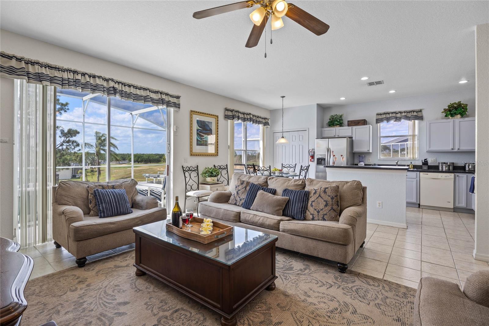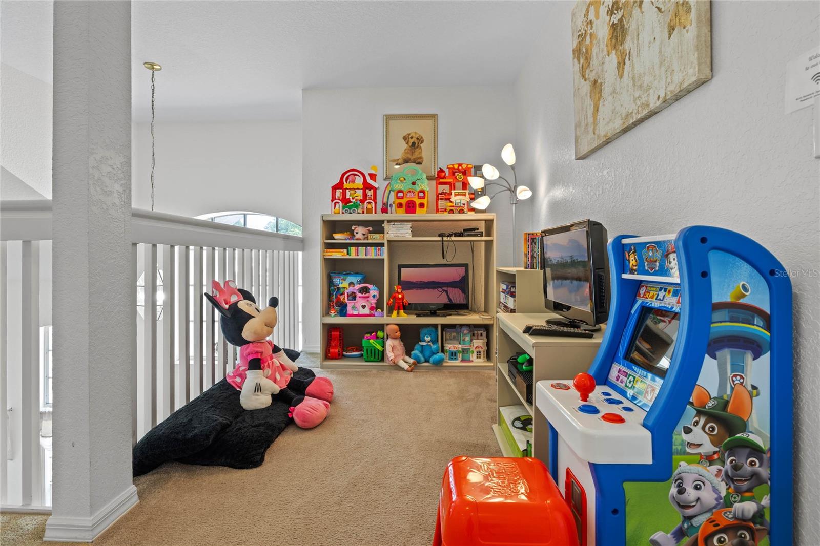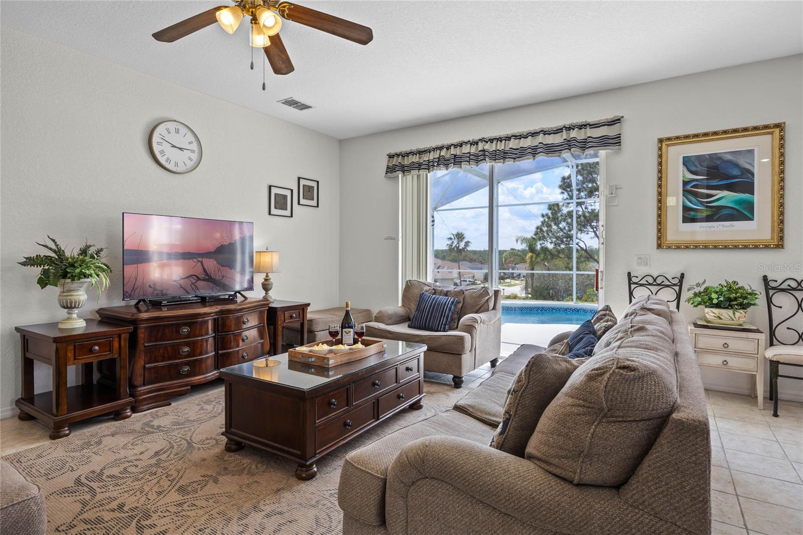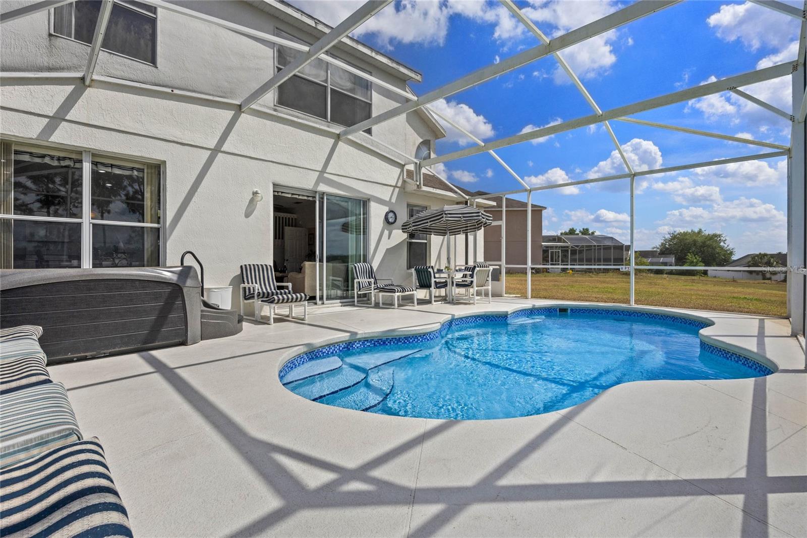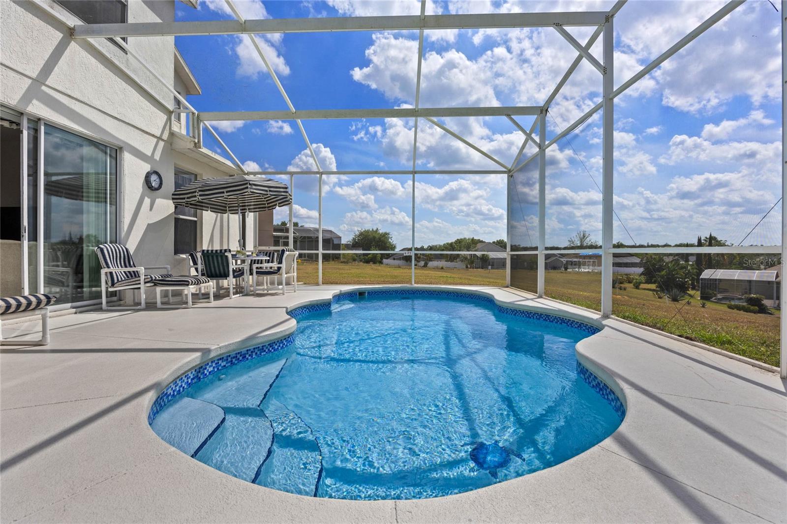 Welcome to 107 Troon Circle.. this is an imposing 5 bedroom 3 bath home situated on a elevated oversized lot in the exclusive golf community of Highlands Reserve.... this beautiful home has garden views and golf course views... best of both worlds. As you enter through the double doors, the formal living and dining room are on your right. With soaring ceilings and large windows, this area is elegantly furnished and flooded with light. Onto the spacious family room & very well equipped kitchen... with a breakfast bar/ island, lots of counter space and a lovely dining nook in the kitchen that overlooks the sunny pool deck. The family room has patio doors out onto the pool deck. There is a bedroom and bathroom on this floor also. Upstairs, the very large primary bedroom has dual closets and a spa like bathroom... the remaining 3 bedrooms on this floor are also spacious and bright. There is also a wonderful loft area, it is currently used as a kiddies play area, it would also make a quiet reading nook or office space. Back downstairs, we go out onto the fabulous elevated pool deck.... the resurfaced pool sparkles in the sunshine.... there is plenty of space for loungers and also al fresco dining. The 2 car garage has been converted into a great games room area.... it can be reconverted easily if required. This is one of the largest lots in Highlands Reserve, on one of the highest points. Zoned for short term rental, this home is being sold fully furnished and will make a wonderful vacation/ investment home or would also make a fabulous family home. Highlands Reserve is an exclusive golf community, situated on HWY 27, close to shops , restaurants and the amazing Florida Theme parks.