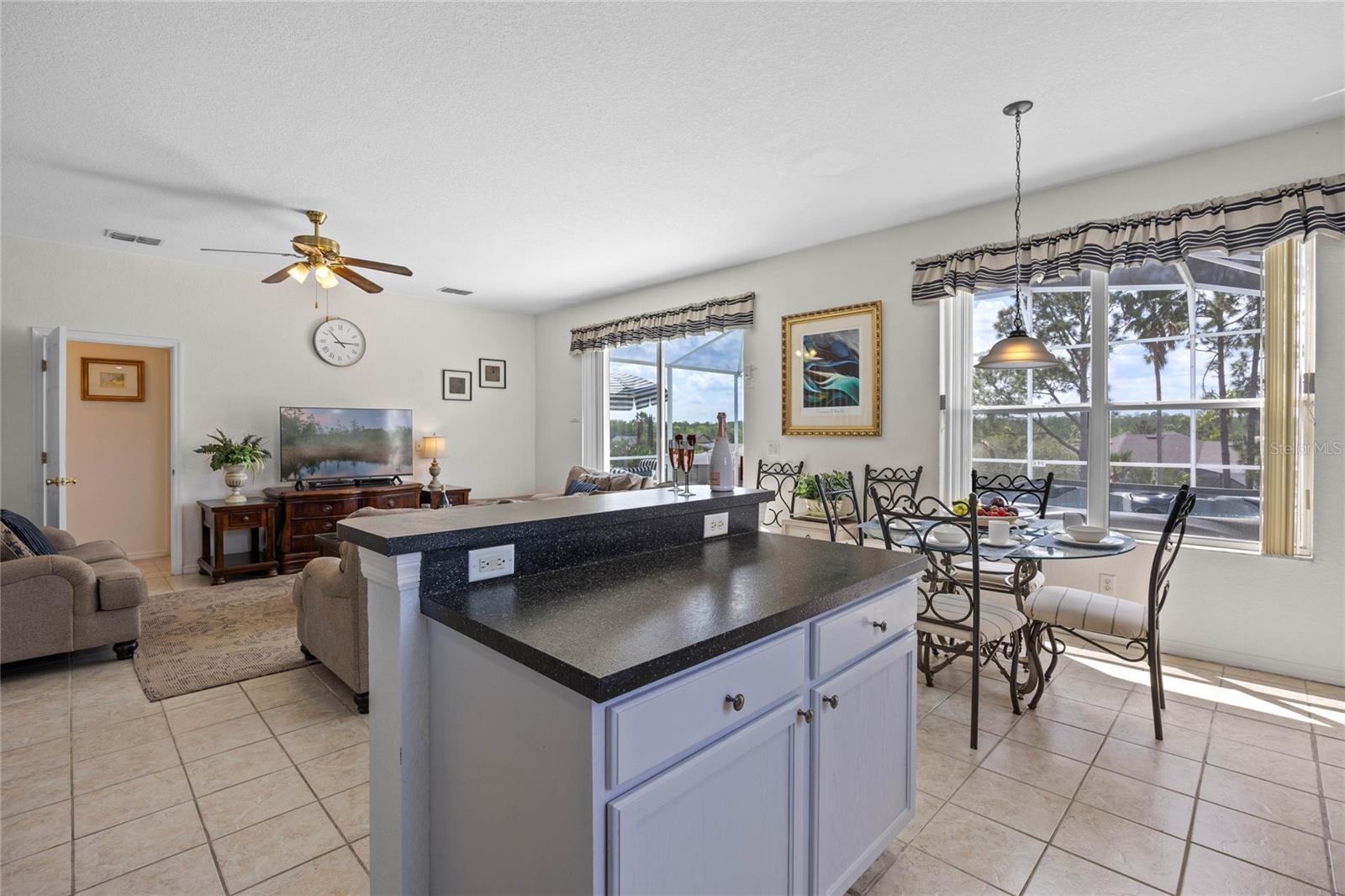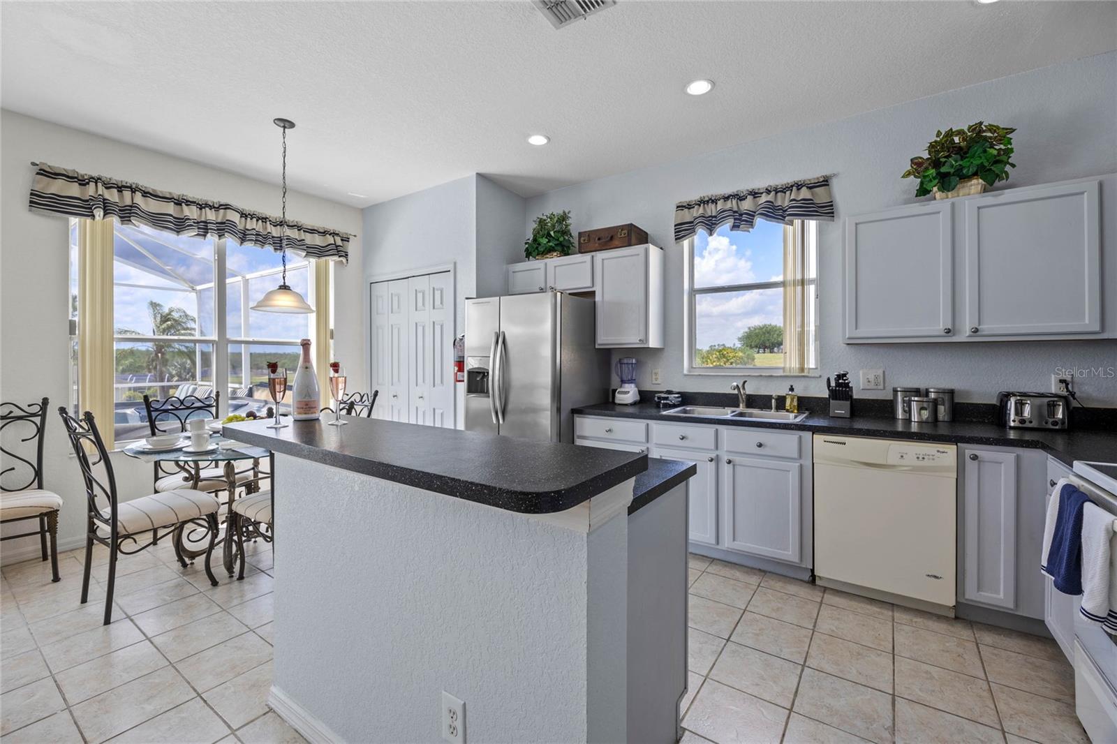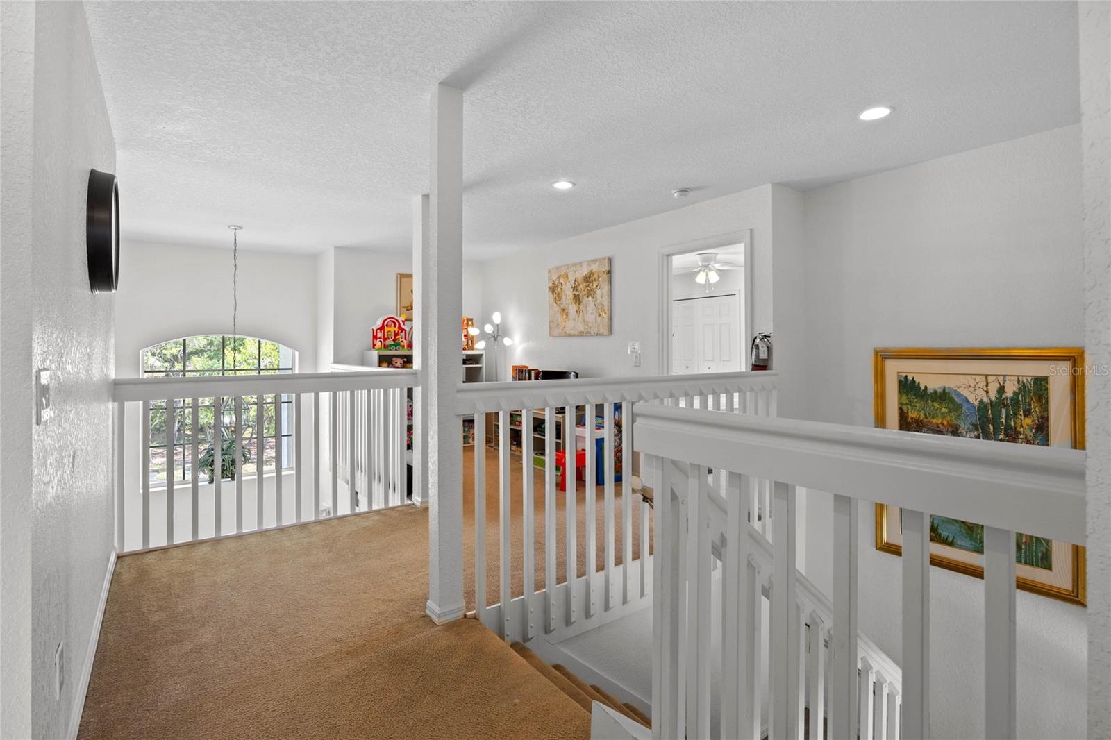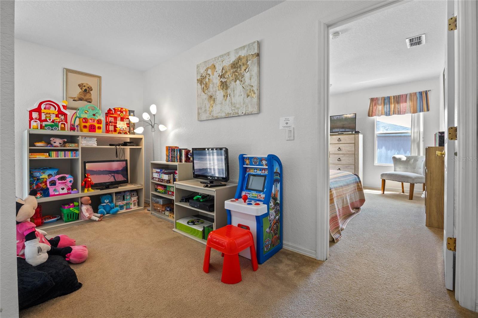 Welcome to 107 Troon Circle.. this is an imposing 5 bedroom 3 bath home situated on a elevated oversized lot in the exclusive golf community of Highlands Reserve.... this beautiful home has garden views and golf course views... best of both worlds. As you enter through the double doors, the formal living and dining room are on your right. With soaring ceilings and large windows, this area is elegantly furnished and flooded with light. Onto the spacious family room & very well equipped kitchen... with a breakfast bar/ island, lots of counter space and a lovely dining nook in the kitchen that overlooks the sunny pool deck. The family room has patio doors out onto the pool deck. There is a bedroom and bathroom on this floor also. Upstairs, the very large primary bedroom has dual closets and a spa like bathroom... the remaining 3 bedrooms on this floor are also spacious and bright. There is also a wonderful loft area, it is currently used as a kiddies play area, it would also make a quiet reading nook or office space. Back downstairs, we go out onto the fabulous elevated pool deck.... the resurfaced pool sparkles in the sunshine.... there is plenty of space for loungers and also al fresco dining. The 2 car garage has been converted into a great games room area.... it can be reconverted easily if required. This is one of the largest lots in Highlands Reserve, on one of the highest points. Zoned for short term rental, this home is being sold fully furnished and will make a wonderful vacation/ investment home or would also make a fabulous family home. Highlands Reserve is an exclusive golf community, situated on HWY 27, close to shops , restaurants and the amazing Florida Theme parks.