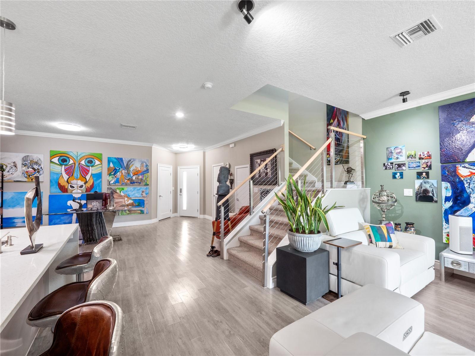 Welcome to your dream townhome in the highly sought-after gated community of Providence, featuring low HOA fees and no CDD! This stunning 3-bedroom, 2.5-bathroom home offers modern finishes, thoughtful design, and an unbeatable location just steps from the community clubhouse and resort-style amenities. As you arrive, you're greeted by a concrete and travertine driveway leading to a 2-car garage with frosted glass doors and an automatic opener. Inside, enjoy 9.5-foot ceilings, 6-inch baseboards, and LVP flooring throughout the spacious, open-concept main level. The living room is bright and airy, with sliding glass doors that open to your private patio overlooking serene golf course and pond views. The modern kitchen is a showstopper, featuring white quartz countertops, European-style cabinetry, a large center island with a wine fridge, and ample seating for entertaining. A formal dining area provides space for gatherings or can be used as a flex room to fit your lifestyle. Upstairs, all bedrooms are carpeted with plush Berber carpet. The primary suite is a relaxing retreat with tray ceilings, private balcony access, and breathtaking sunrise views over the golf course. The ensuite bathroom boasts floating cabinetry, a soaking tub, separate marble-tiled shower, and modern hardware, along with a custom walk-in closet. Two additional bedrooms overlook the front of the home and offer plenty of space. Providence is an amenity-rich community featuring a lap pool, resort-style pool with slide, tennis courts, fitness center, playground, dog park, and a championship 18-hole golf course designed by Michael Dasher. The clubhouse includes a full-service bar and restaurant, perfect for socializing or unwinding after a round of golf. Don't miss your opportunity to live in this beautiful, move-in ready townhome with all the benefits of modern living in a vibrant, resort-style community!
