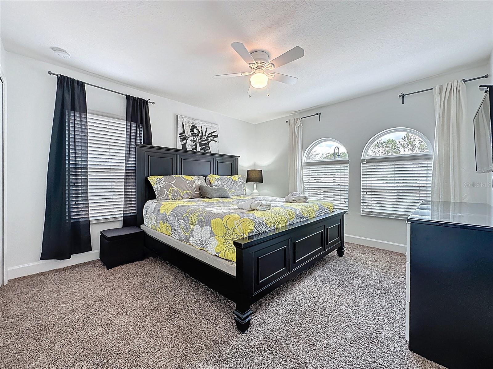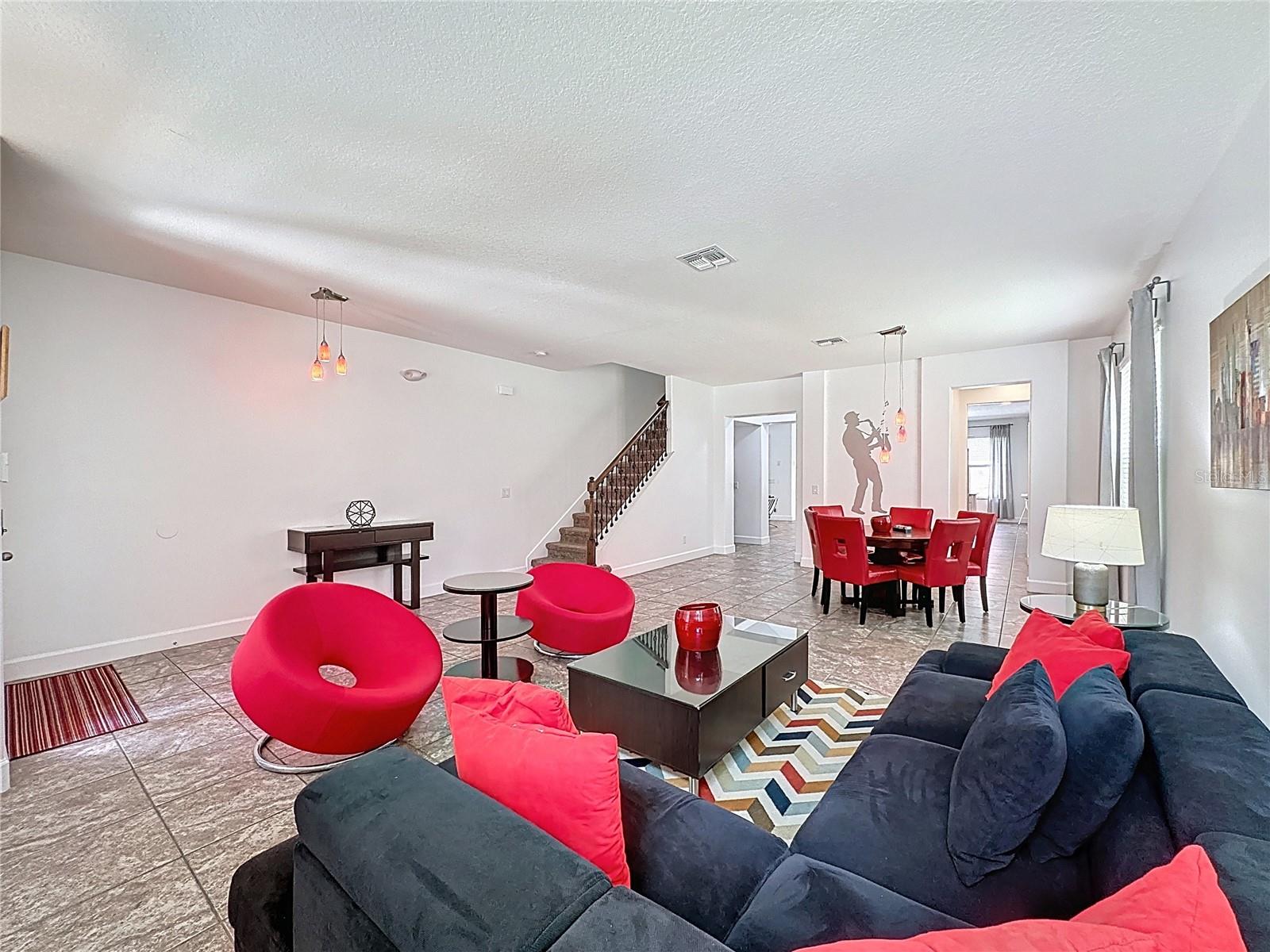 AFFORDABLE LUXURY! ** SELLER TO PAY ONE YEAR HOA FEES AND CAPITAL CONTRIBUTION AT CLOSING, almost $8000 value** Simply stunning and turnkey ready, this 6-bedroom, 5.5-bathroom pool home sits on a premium lot with NO REAR NEIGHBORS, offering incredible privacy and serene views of lush green space. Whether you're looking for a full-time residence, vacation retreat, or income-generating short-term rental, this spacious, well-appointed home delivers it all. Step inside to find a bright and welcoming layout featuring a formal sitting and dining area which is also perfect for card games and quiet time. Beyond this, the open-concept main living space boasts an expansive family room, contemporary furnishings, and a large kitchen with dining table, stone countertops, and a convenient butler’s pantry. There’s plenty of seating at the breakfast bar and dining table, making entertaining large groups effortless. Natural light floods the home through large windows and two direct exits to the screened-in pool and lanai. With four ensuite bedrooms upstairs and two additional bedrooms joined by a Jack & Jill bathroom, this home is perfect for accommodating larger groups—boosting its RENTAL POTENTIAL. Each bedroom is stylishly furnished, offering guests comfort and space. A second-floor bonus landing includes a laundry closet and a built-in study nook. One of the standout features is the thoughtfully designed Star Wars-themed games room, complete with a custom gaming alcove—a hit with guests of all ages. Outside, enjoy peaceful afternoons in the heated pool and spa, and relaxing evenings under the stars with uninterrupted tree-lined views. There is a covered lanai making this an outdoor space for all seasons. Located in the gated resort-style community of Watersong, residents and guests enjoy access to a 6,700 sq ft clubhouse, resort-style pool and spa, fitness center, volleyball and basketball courts, playground, picnic area, walking trails, and more. Lawn care, fertilization, and tree trimming are all included, along with 24-hour CCTV security for peace of mind. Close to Disney, Universal, SeaWorld, Margaritaville, top golf courses, and shopping at Posner Park and ChampionsGate—this home is not just a getaway, it's a lifestyle. Fully furnished and well-managed, this is the opportunity you’ve been waiting for!