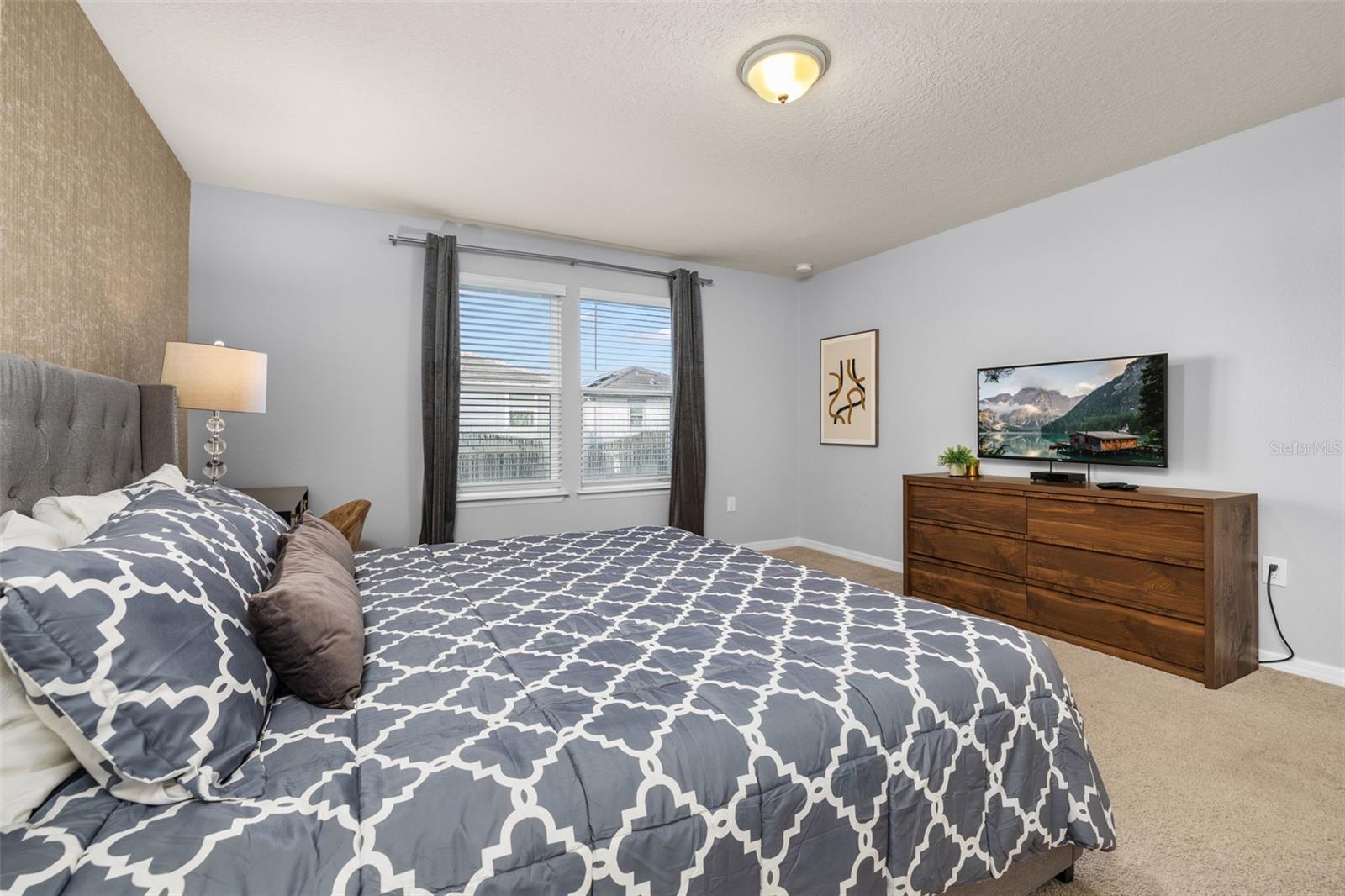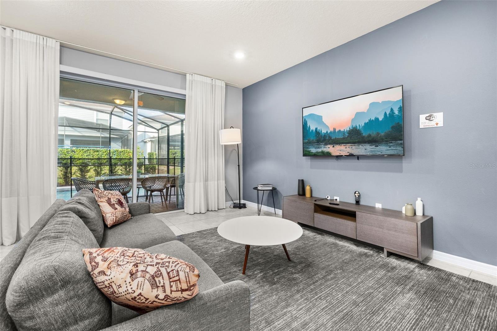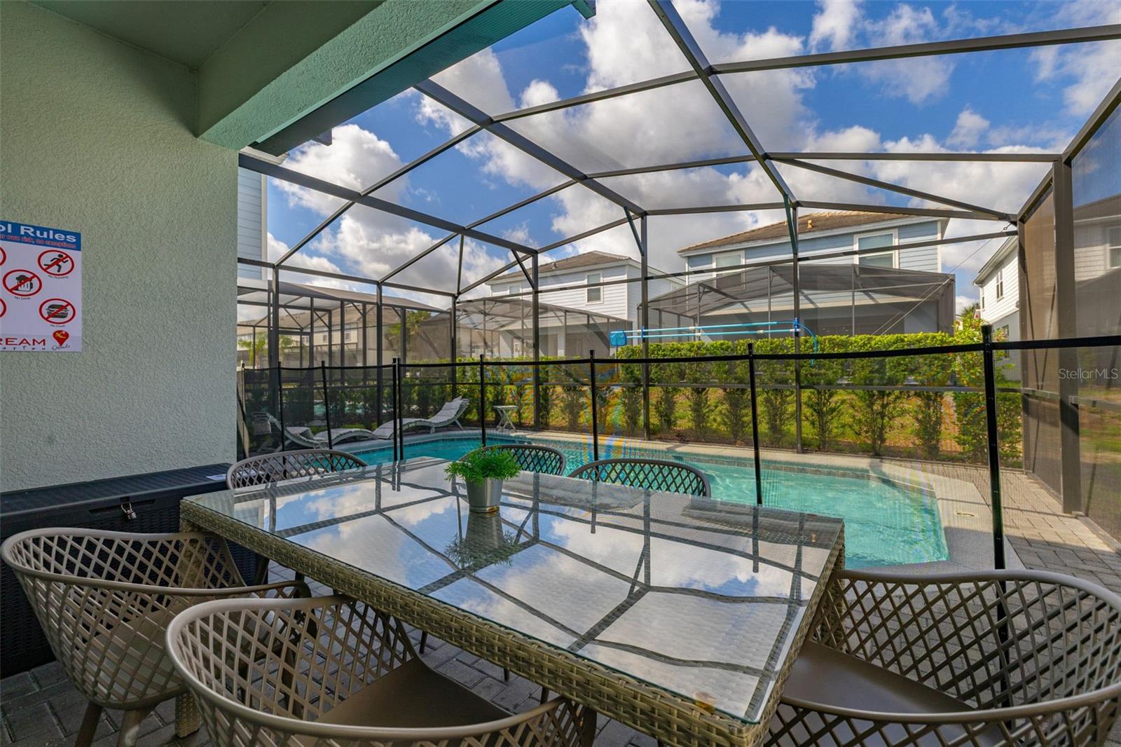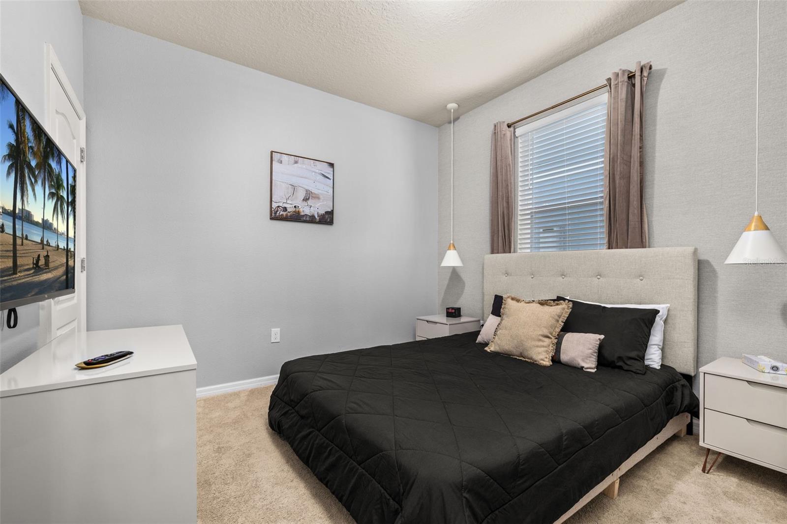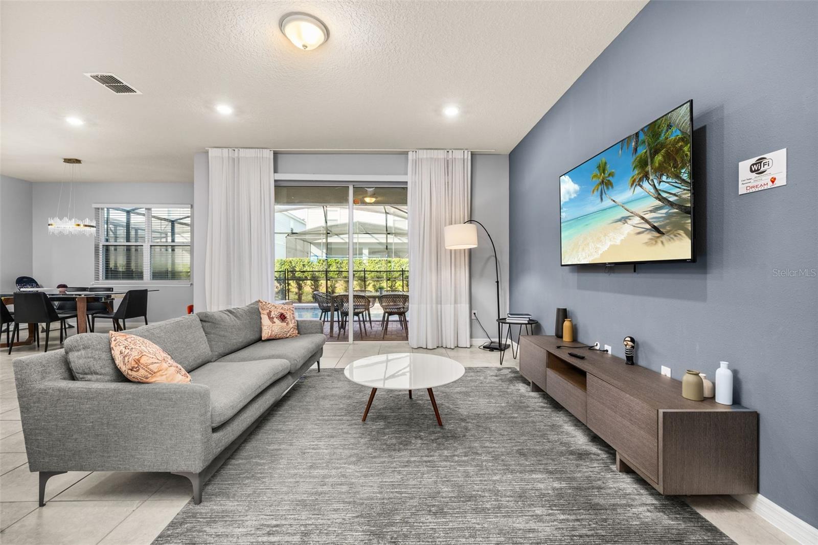 Discover incredible value in this stunning 5-bedroom, 4-bath pool home located in the desirable Solterra Resort, one of Central Florida’s top vacation communities near Orlando’s world-famous theme parks. Built in 2022, this like-new property is offered fully furnished and tastefully decorated, making it rental ready. The home features a thoughtful layout with three ensuite bedrooms — one on the main floor and two upstairs — providing comfort and privacy for guests. Upstairs, you’ll also find two themed kids’ bedrooms, including a Harry Potter-inspired twin room and an Avengers-themed bunk room, both fun and creatively decorated. All bedrooms are carpeted, adding extra comfort. The open-concept main living area boasts a stylish kitchen with granite countertops, stainless steel appliances, 42" white cabinetry with plenty of storage space, and a large island with additional seating. The kitchen flows into a spacious dining area and a vibrant leisure room that opens to a screened-in private pool — perfect for enjoying Florida’s sunshine. Beyond the home itself, Solterra Resort offers top-tier amenities including a resort-style pool, lazy river, water slide, fitness center, tennis and volleyball courts, walking trails, clubhouse, and the Café Sol Bar & Grill. Located just minutes from Disney, Universal, and other major attractions, this home is ideal as a primary residence, vacation getaway, or short-term rental investment. Don’t miss the chance to own in one of the most popular resort communities in the area!