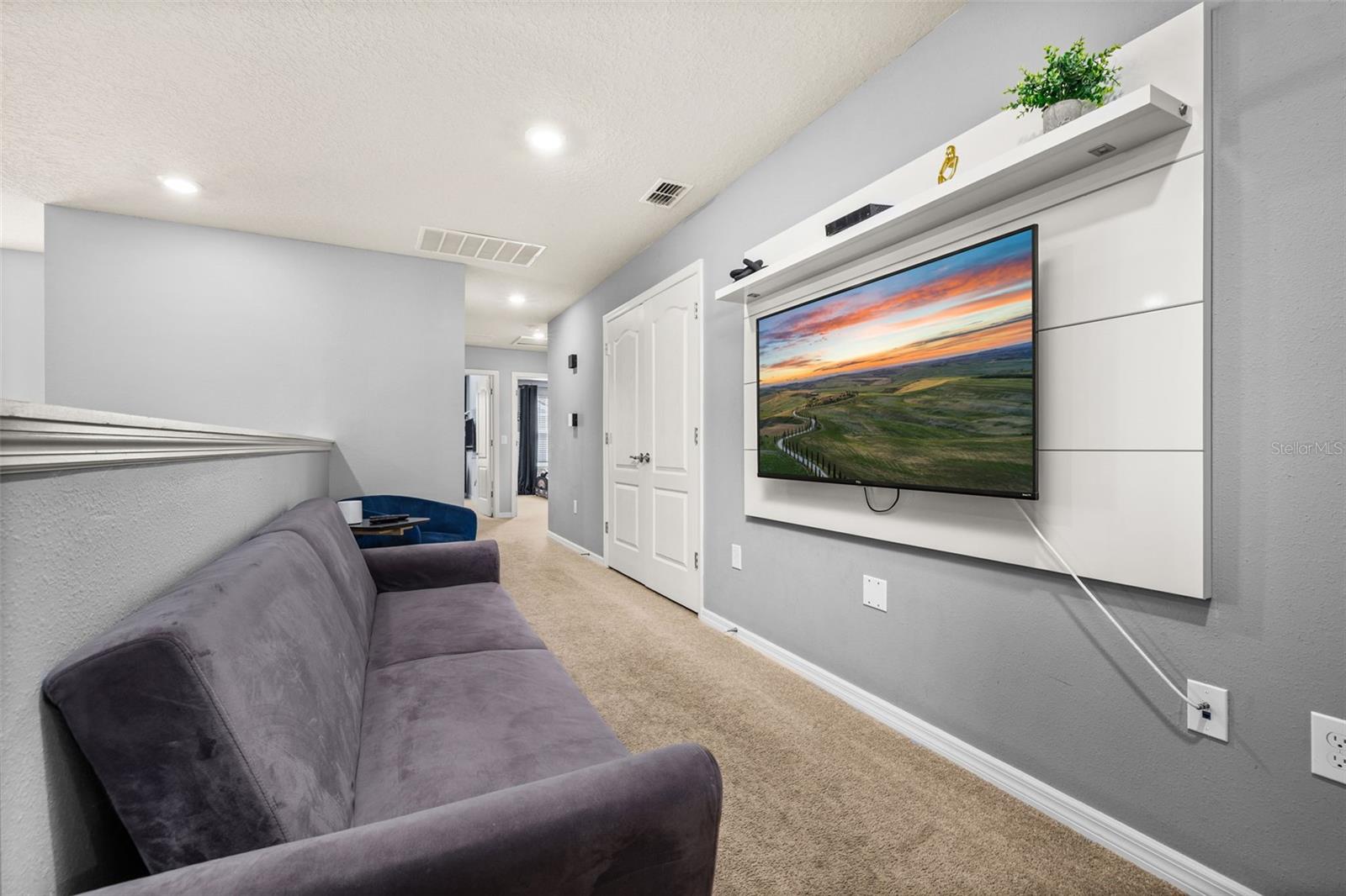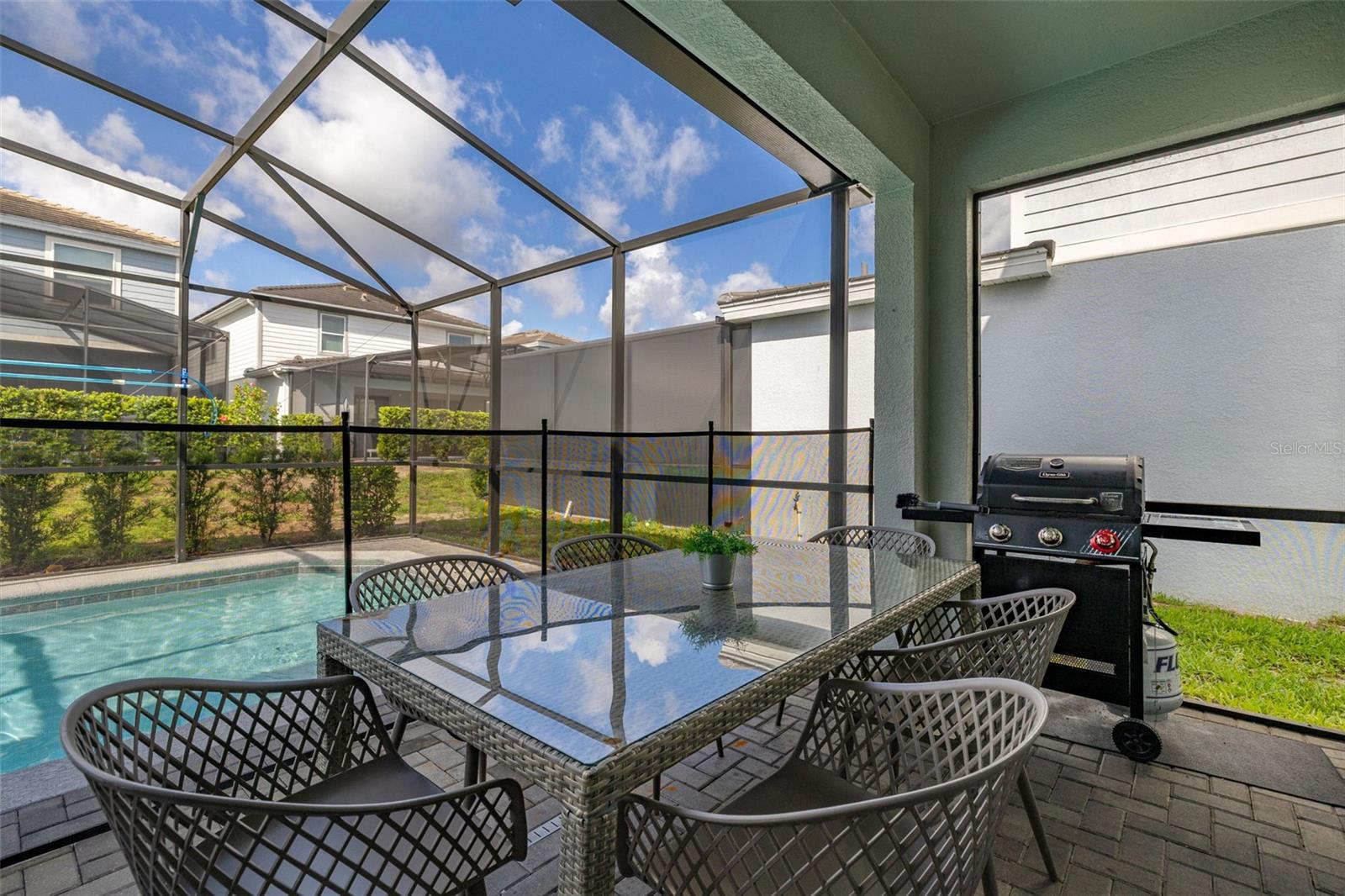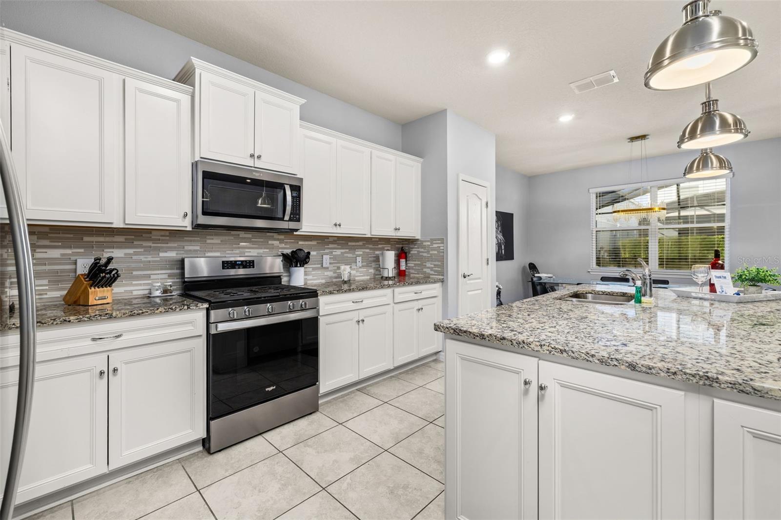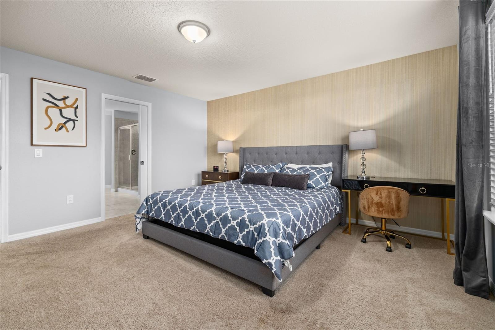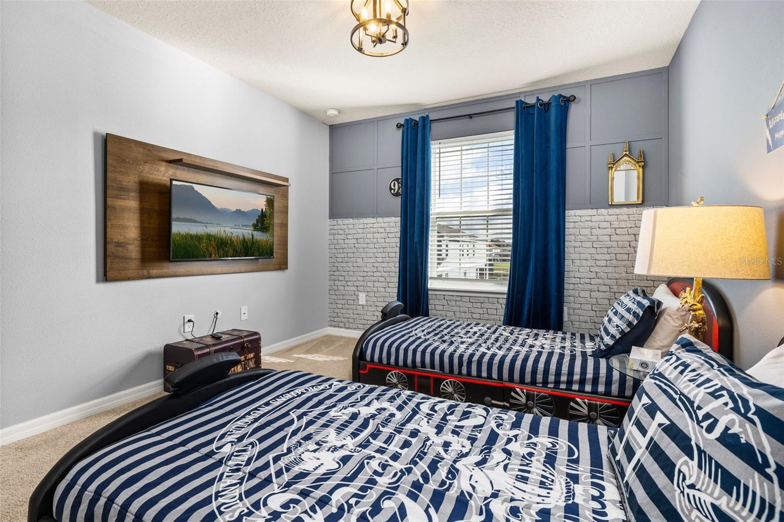 Discover incredible value in this stunning 5-bedroom, 4-bath pool home located in the desirable Solterra Resort, one of Central Florida’s top vacation communities near Orlando’s world-famous theme parks. Built in 2022, this like-new property is offered fully furnished and tastefully decorated, making it rental ready. The home features a thoughtful layout with three ensuite bedrooms — one on the main floor and two upstairs — providing comfort and privacy for guests. Upstairs, you’ll also find two themed kids’ bedrooms, including a Harry Potter-inspired twin room and an Avengers-themed bunk room, both fun and creatively decorated. All bedrooms are carpeted, adding extra comfort. The open-concept main living area boasts a stylish kitchen with granite countertops, stainless steel appliances, 42" white cabinetry with plenty of storage space, and a large island with additional seating. The kitchen flows into a spacious dining area and a vibrant leisure room that opens to a screened-in private pool — perfect for enjoying Florida’s sunshine. Beyond the home itself, Solterra Resort offers top-tier amenities including a resort-style pool, lazy river, water slide, fitness center, tennis and volleyball courts, walking trails, clubhouse, and the Café Sol Bar & Grill. Located just minutes from Disney, Universal, and other major attractions, this home is ideal as a primary residence, vacation getaway, or short-term rental investment. Don’t miss the chance to own in one of the most popular resort communities in the area!