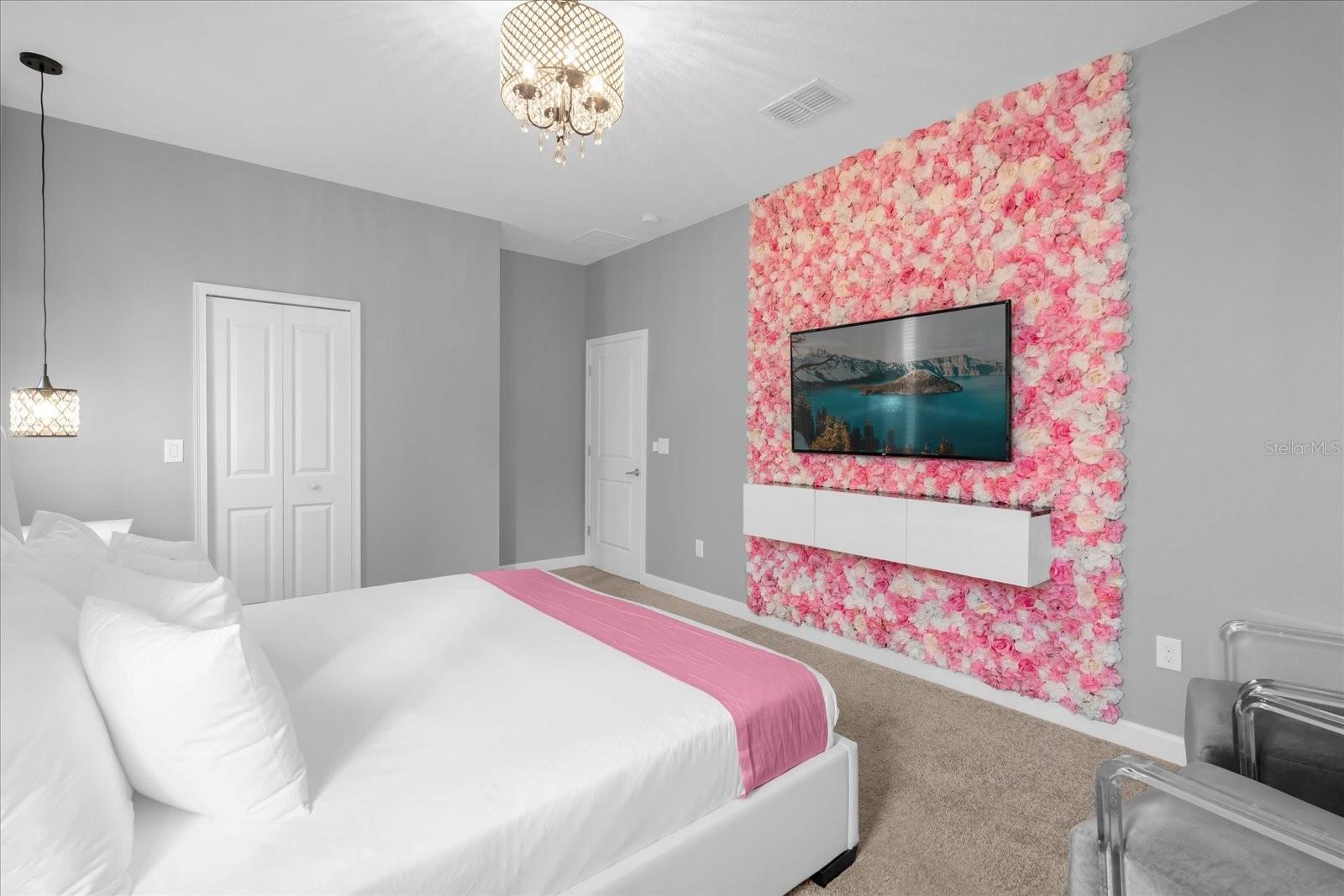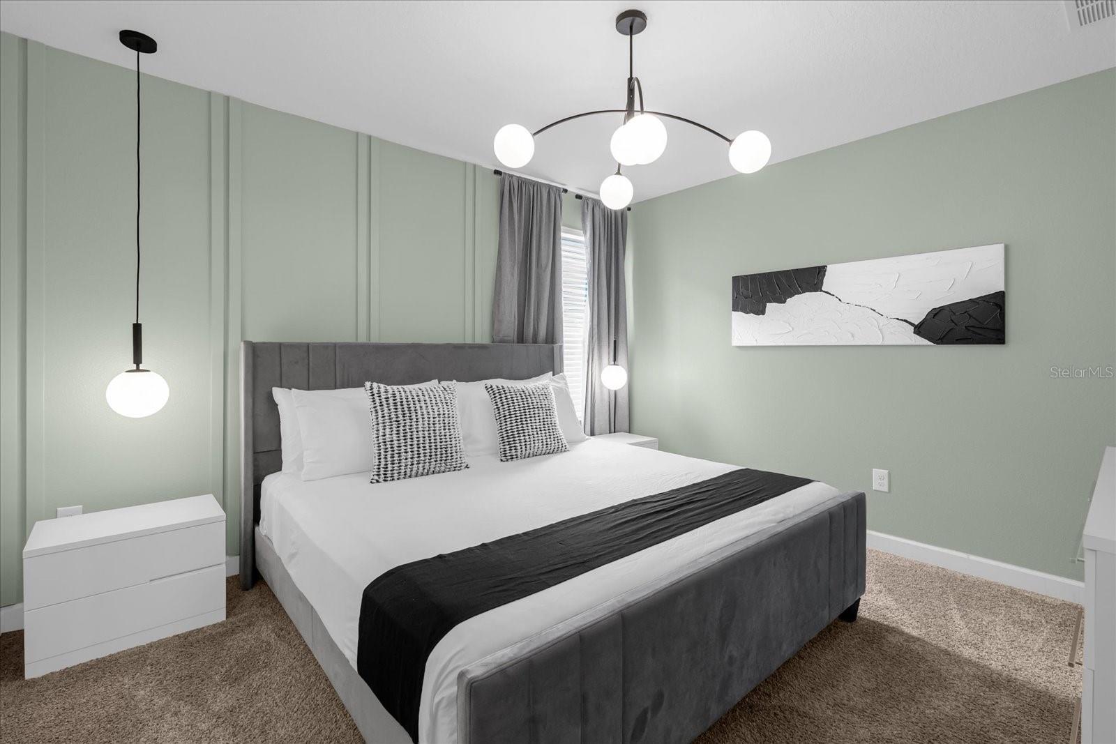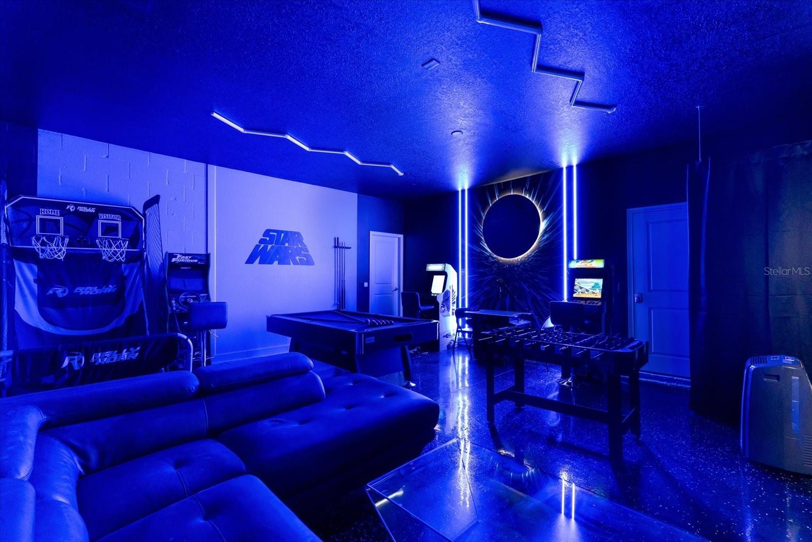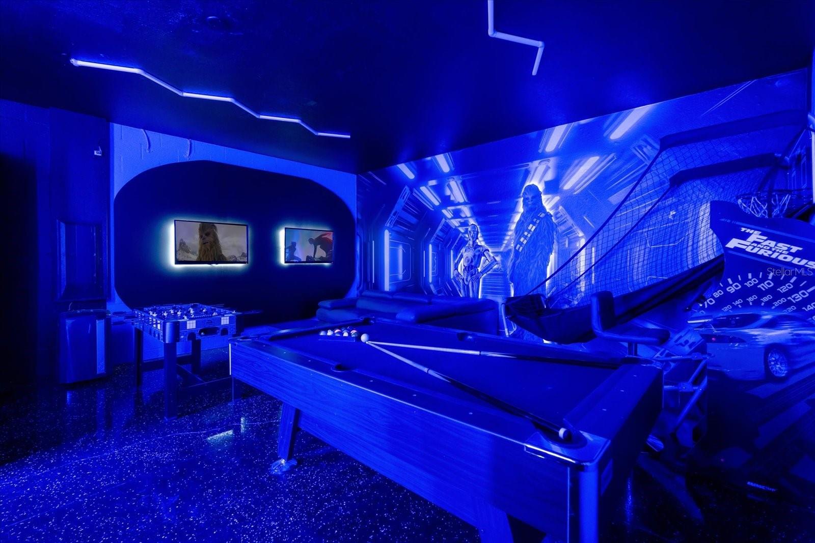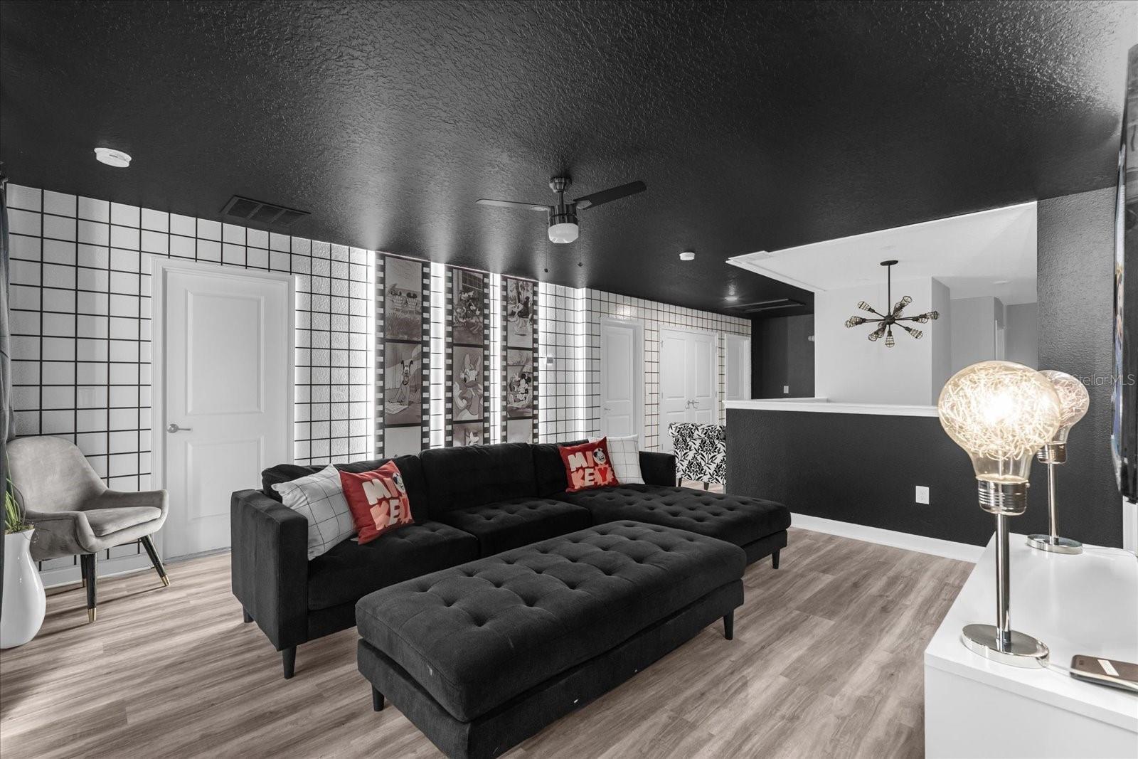 Welcome to this spectacular 8-bedroom, 5-bathroom fully furnished home located in the highly sought-after Retreat at Champions Gate, one of Orlando's premier gated resort communities. Whether you're seeking a high-performing short-term rental or a luxurious second home, this property delivers both style and income—with over $120K in gross rental income in 2023! Professionally designed and filled with natural light, this home features themed bedrooms, a converted game room, and spacious living areas perfect for entertaining. The main level offers two bedrooms, including a primary suite with direct access to the pool deck and an en suite bath with a dual vanity, soaking tub, and glass-enclosed shower. The open-concept kitchen boasts 42" shaker style cabinets, granite countertops, stainless steel appliances, and a bar seating area—flowing seamlessly into the dining and family room. Step outside to enjoy the screen-enclosed pool and lanai, perfect for relaxing or hosting guests. Upstairs, a cozy loft TV room is surrounded by six additional bedrooms and a bonus room that can be converted into a 9th bedroom. The garage-turned-game-room is air-conditioned with epoxy flooring and features a pool table—ensuring endless fun for guests. Just a short walk to the Oasis Clubhouse, where world-class amenities include a lazy river, water slides, splash pad, resort-style pool, fitness center, movie theater, arcade, restaurant, Tiki Bar, and more. A free community shuttle provides easy access to all amenities and nearby golf courses. Located just minutes from Disney, major highways, shopping, and dining, this home is in a zoning phase that allows both short- and long-term rentals—with no restrictions on owner stays. Don’t miss your chance to own one of the most desirable and versatile properties in Central Florida!