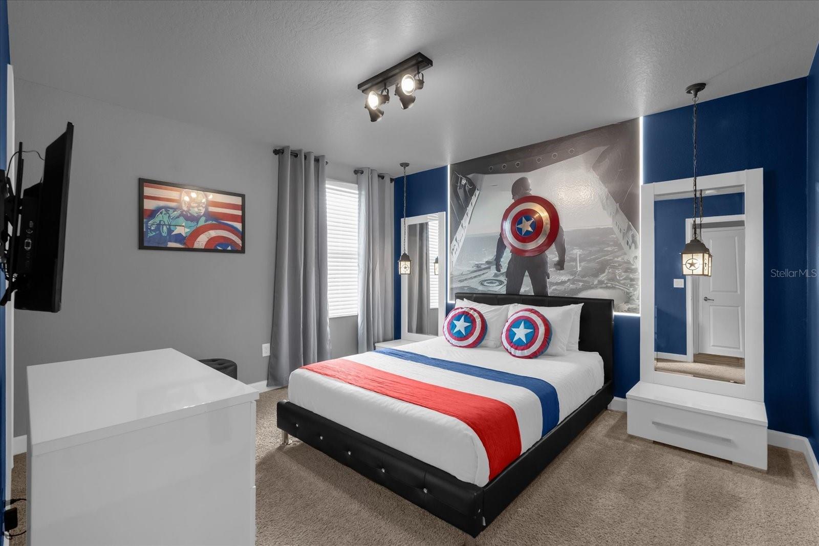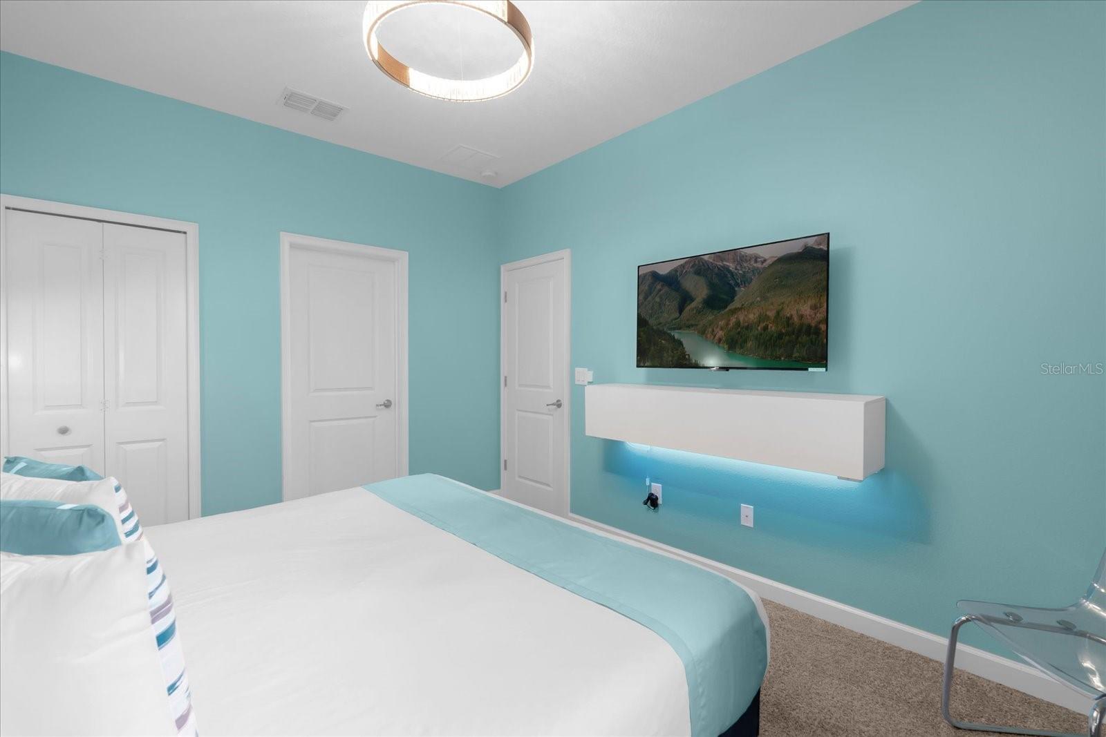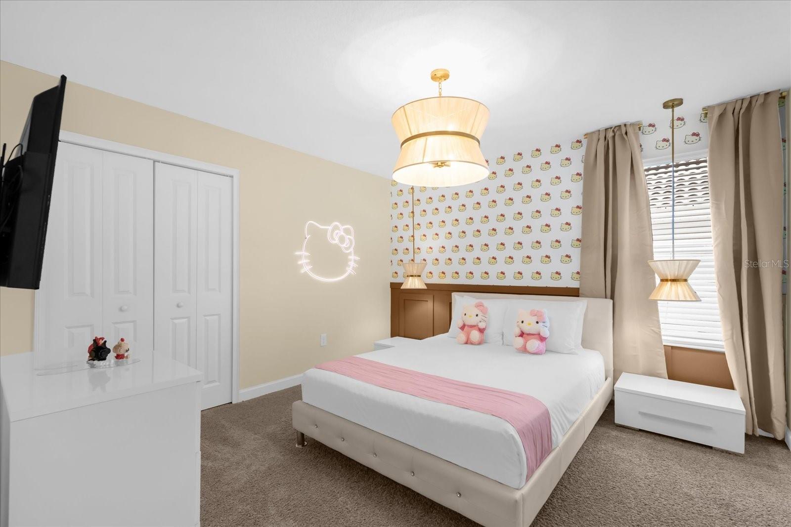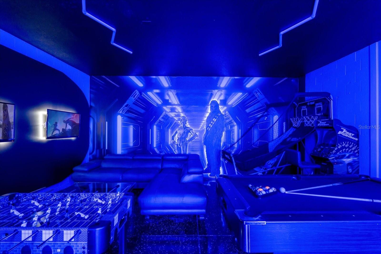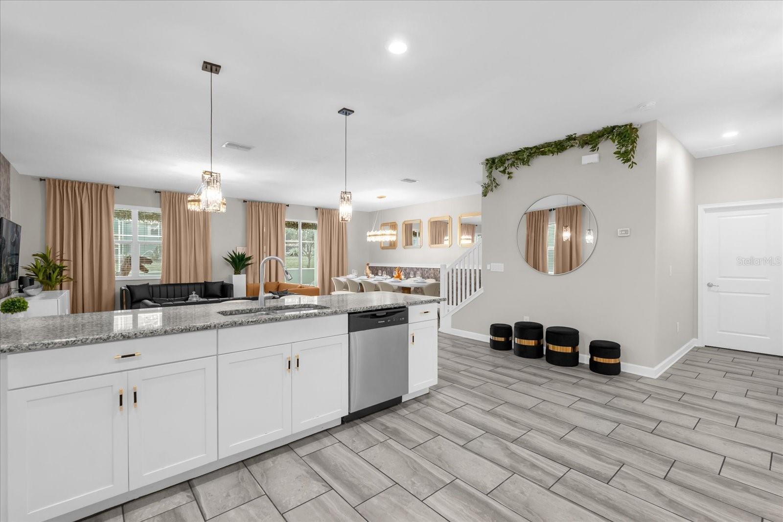 Welcome to this spectacular 8-bedroom, 5-bathroom fully furnished home located in the highly sought-after Retreat at Champions Gate, one of Orlando's premier gated resort communities. Whether you're seeking a high-performing short-term rental or a luxurious second home, this property delivers both style and income—with over $120K in gross rental income in 2023! Professionally designed and filled with natural light, this home features themed bedrooms, a converted game room, and spacious living areas perfect for entertaining. The main level offers two bedrooms, including a primary suite with direct access to the pool deck and an en suite bath with a dual vanity, soaking tub, and glass-enclosed shower. The open-concept kitchen boasts 42" shaker style cabinets, granite countertops, stainless steel appliances, and a bar seating area—flowing seamlessly into the dining and family room. Step outside to enjoy the screen-enclosed pool and lanai, perfect for relaxing or hosting guests. Upstairs, a cozy loft TV room is surrounded by six additional bedrooms and a bonus room that can be converted into a 9th bedroom. The garage-turned-game-room is air-conditioned with epoxy flooring and features a pool table—ensuring endless fun for guests. Just a short walk to the Oasis Clubhouse, where world-class amenities include a lazy river, water slides, splash pad, resort-style pool, fitness center, movie theater, arcade, restaurant, Tiki Bar, and more. A free community shuttle provides easy access to all amenities and nearby golf courses. Located just minutes from Disney, major highways, shopping, and dining, this home is in a zoning phase that allows both short- and long-term rentals—with no restrictions on owner stays. Don’t miss your chance to own one of the most desirable and versatile properties in Central Florida!
