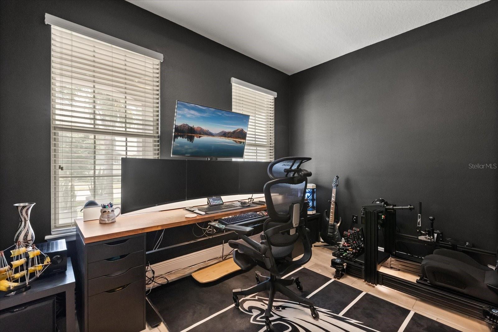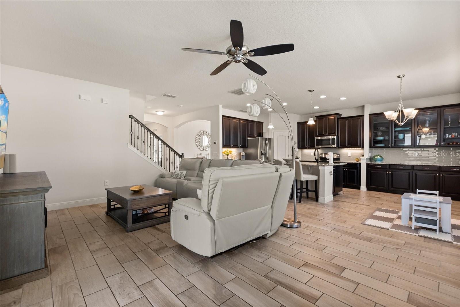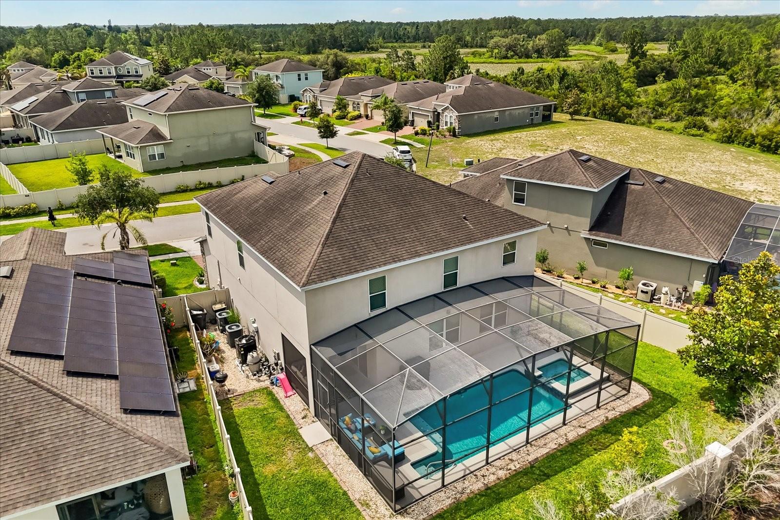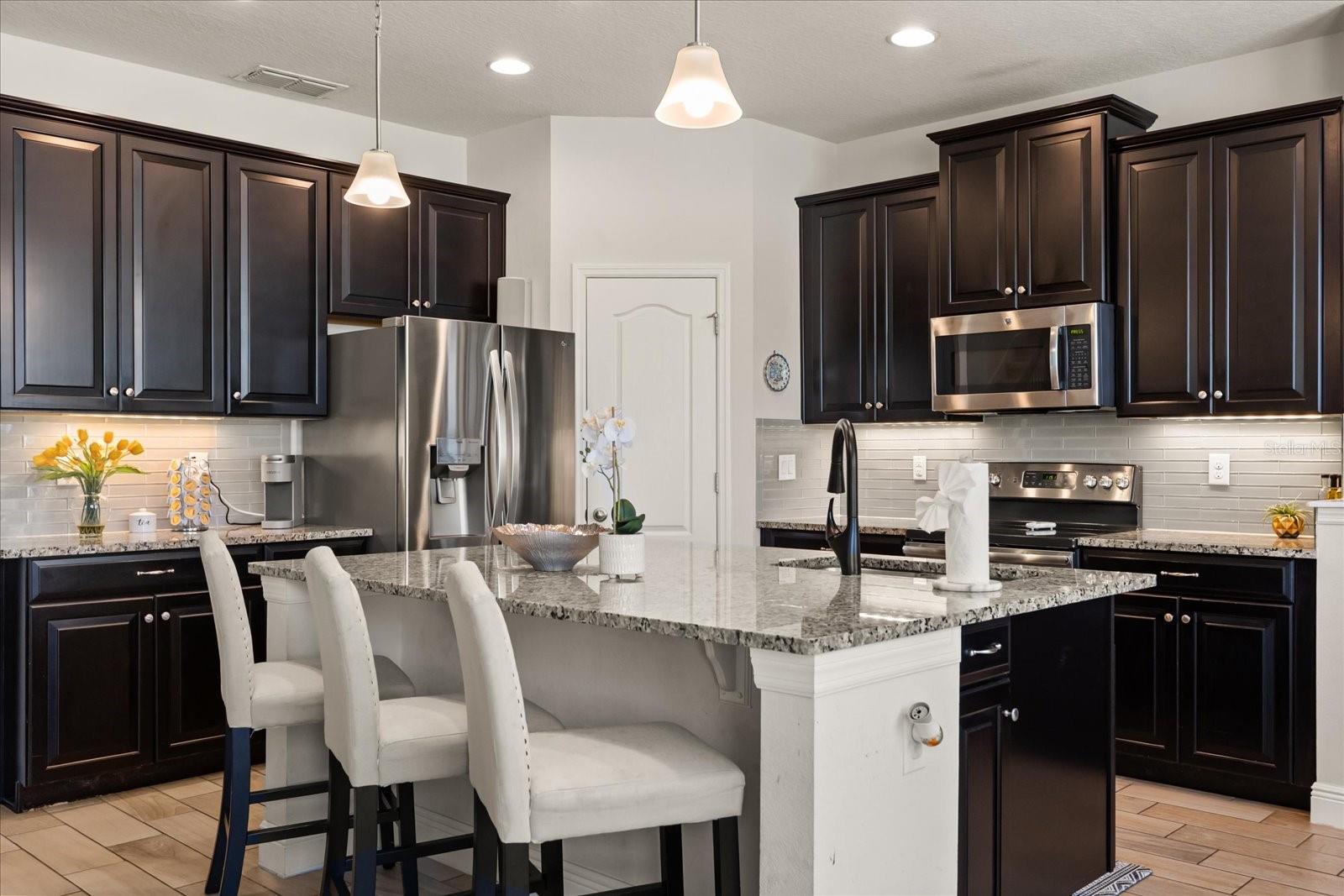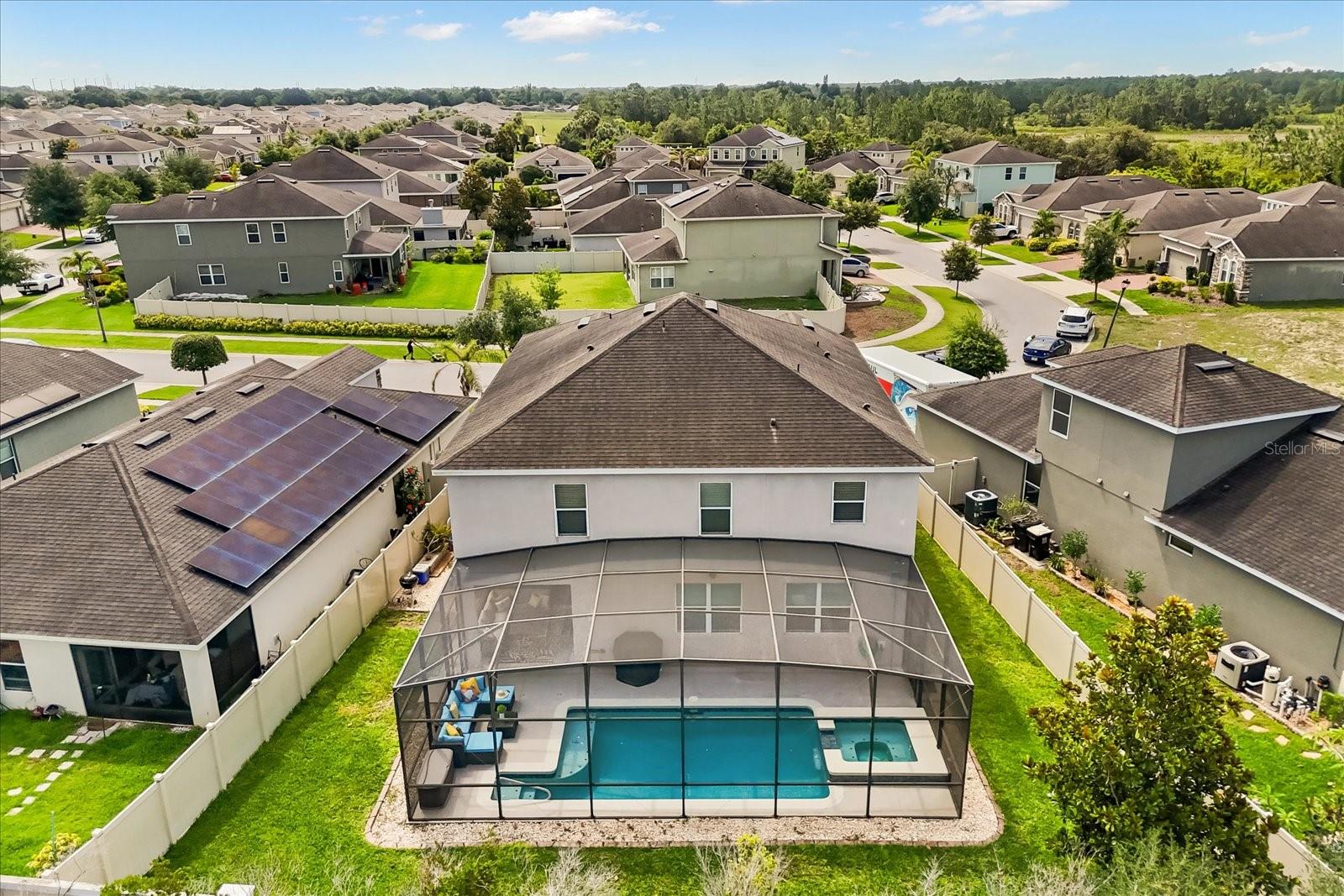 NEW PRICE! Motavited sellers...offering $10K toward buyers closing costs and by downs. Welcome to your dream home in the highly sought-after Champions Reserve community, where resort-style living meets everyday comfort. This beautifully upgraded 5- bedroom, 3-bathroom home features a private pool and spa. stunning curb appeal and luxury finishes throughout. From the moment you arrive, you'll be impressed by the professionally designed landscaping, full irrigation system, and elegant stone facade. Inside, the open and flexible floor plan offers endless possibilities. A dedicated office sits near the entryway perfect for remote work while the adjacent flex space can serve as a formal dining area, sitting room, or even a playroom. On the main level, you'll find a guest bedroom, walk in closet and full bath, ideal for visitors or multigenerational living. The gourmet kitchen is a showstopper with a massive center island, walk-in pantry, 42-inch cabinetry, built-in hutch with glass doors, upgraded glass tile backsplash with accent lighting, and newer stainless-steel appliances (2024). Upstairs, enjoy 4 spacious bedrooms including a luxurious primary suite with dual walk-in closets and a spa like bath featuring a garden tub, double vanity, and separate walk-in shower. You'll also love the oversized bonus room. Perfect as a home theater, game room, or second living area. A centrally located laundry room for added convenience. Two bedrooms feature designer accent walls for added charm and style. Step outside to your private screen-enclosed pool and spa, complete with a covered lanai and extended seating area. Perfect for morning coffee, weekend BBQs, or entertaining guest. Fully fenced backyard offers both privacy and space to relax. Located just minutes from Disney theme parks, world-class golf courses, top-rated restaurants, and the Orlando Airport, this home truly has it all. Move in ready and packed with upgrades- don't miss the chance to live in luxury! NO SHORT-TERM RENTAL.