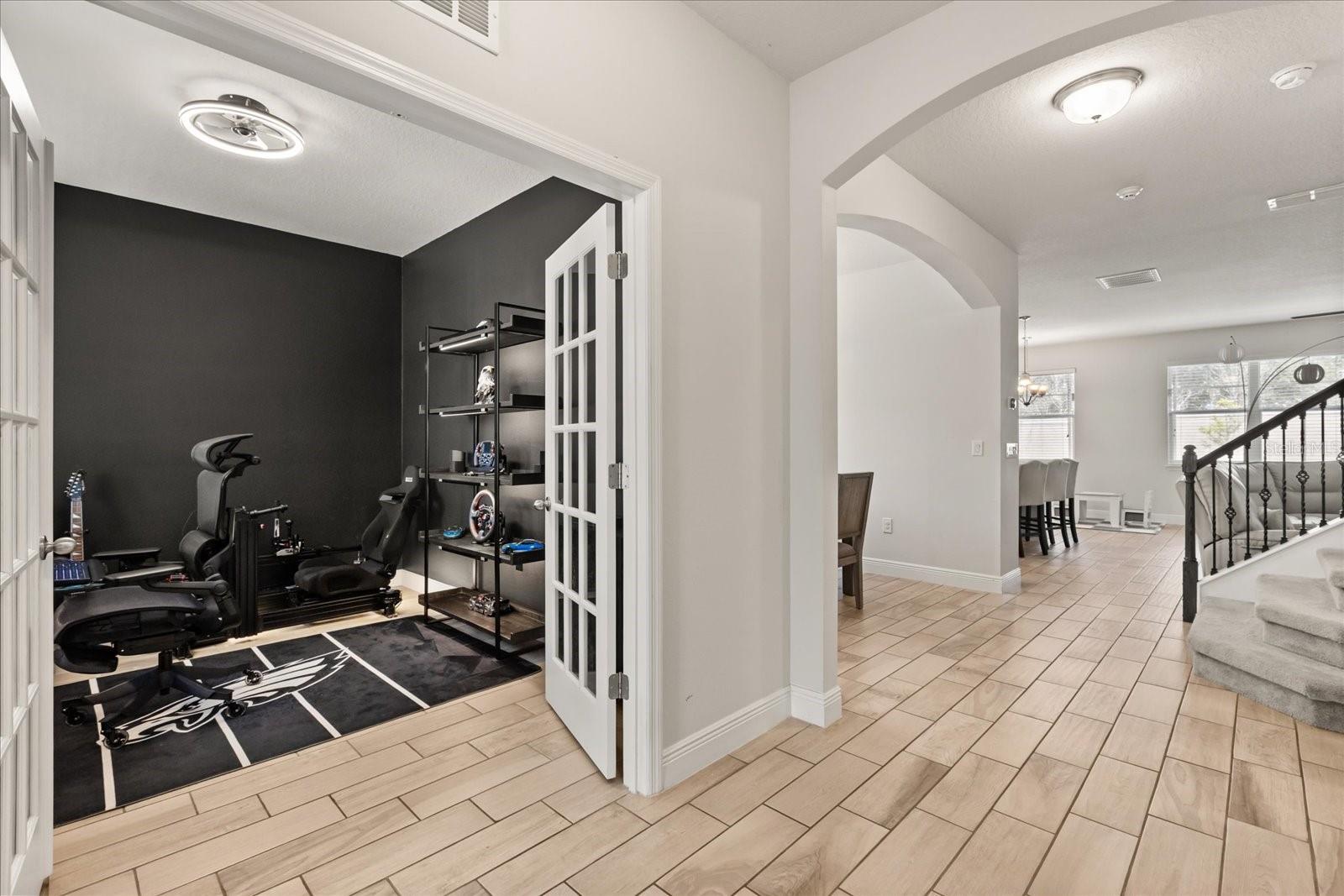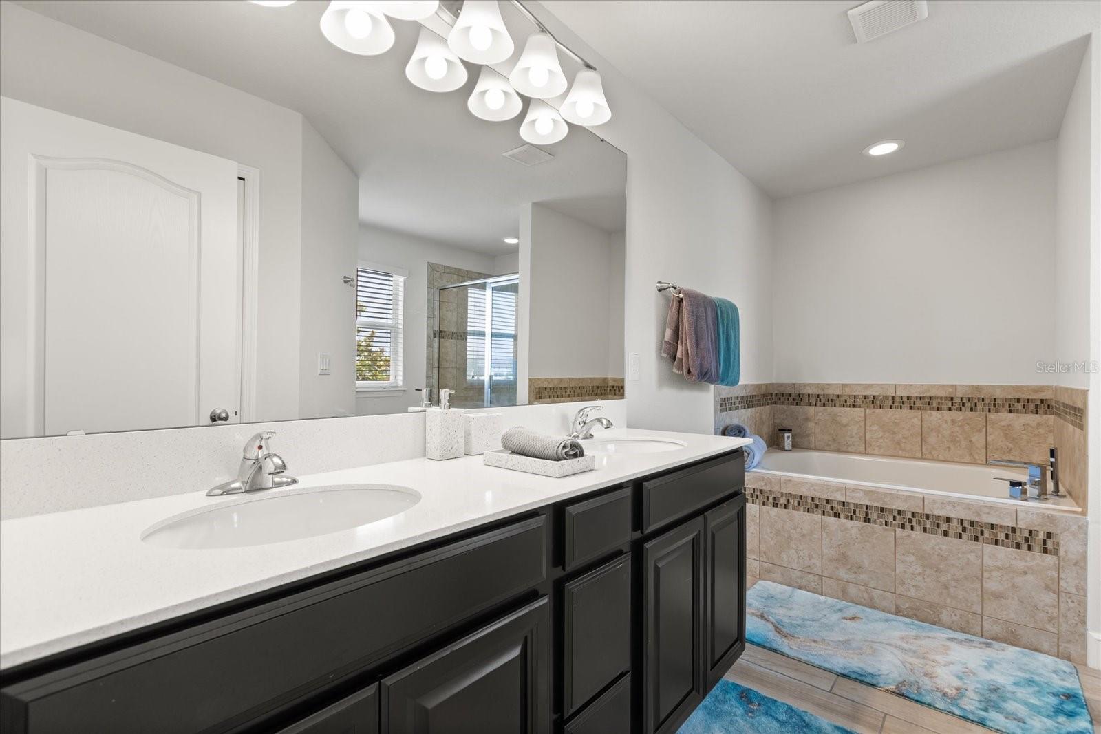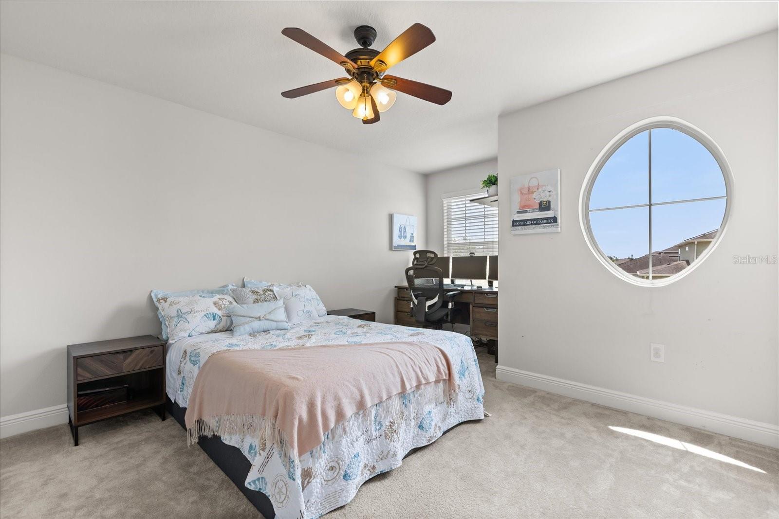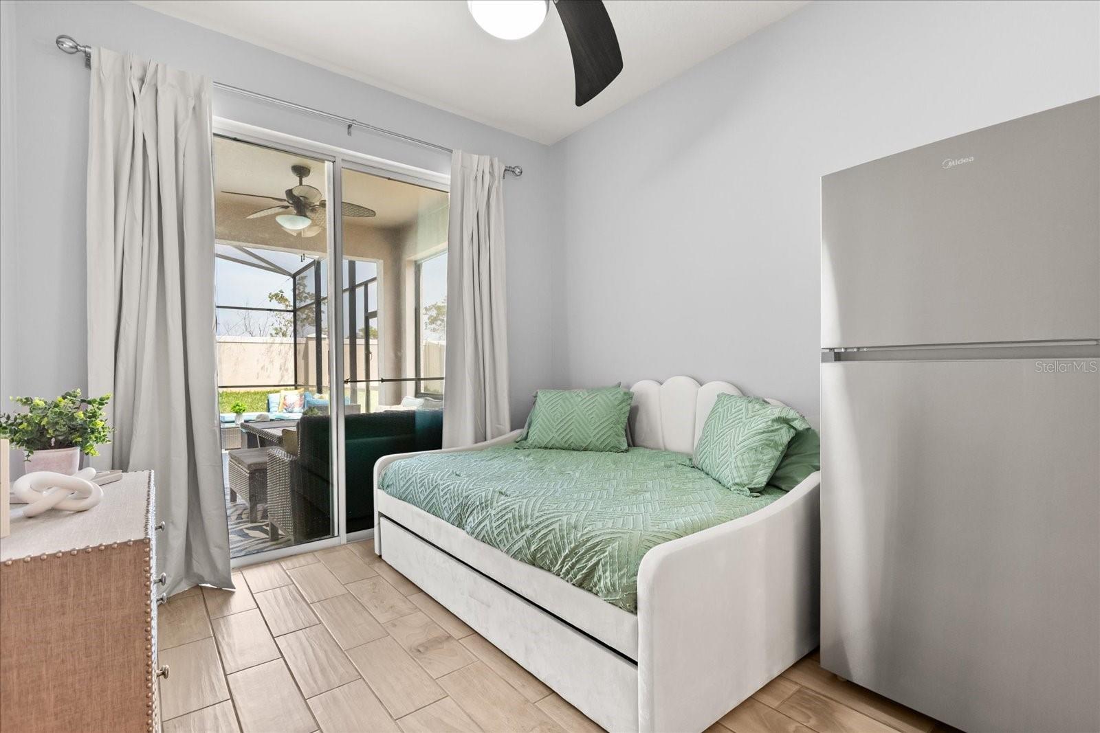 NEW PRICE! Motavited sellers...offering $10K toward buyers closing costs and by downs. Welcome to your dream home in the highly sought-after Champions Reserve community, where resort-style living meets everyday comfort. This beautifully upgraded 5- bedroom, 3-bathroom home features a private pool and spa. stunning curb appeal and luxury finishes throughout. From the moment you arrive, you'll be impressed by the professionally designed landscaping, full irrigation system, and elegant stone facade. Inside, the open and flexible floor plan offers endless possibilities. A dedicated office sits near the entryway perfect for remote work while the adjacent flex space can serve as a formal dining area, sitting room, or even a playroom. On the main level, you'll find a guest bedroom, walk in closet and full bath, ideal for visitors or multigenerational living. The gourmet kitchen is a showstopper with a massive center island, walk-in pantry, 42-inch cabinetry, built-in hutch with glass doors, upgraded glass tile backsplash with accent lighting, and newer stainless-steel appliances (2024). Upstairs, enjoy 4 spacious bedrooms including a luxurious primary suite with dual walk-in closets and a spa like bath featuring a garden tub, double vanity, and separate walk-in shower. You'll also love the oversized bonus room. Perfect as a home theater, game room, or second living area. A centrally located laundry room for added convenience. Two bedrooms feature designer accent walls for added charm and style. Step outside to your private screen-enclosed pool and spa, complete with a covered lanai and extended seating area. Perfect for morning coffee, weekend BBQs, or entertaining guest. Fully fenced backyard offers both privacy and space to relax. Located just minutes from Disney theme parks, world-class golf courses, top-rated restaurants, and the Orlando Airport, this home truly has it all. Move in ready and packed with upgrades- don't miss the chance to live in luxury! NO SHORT-TERM RENTAL.