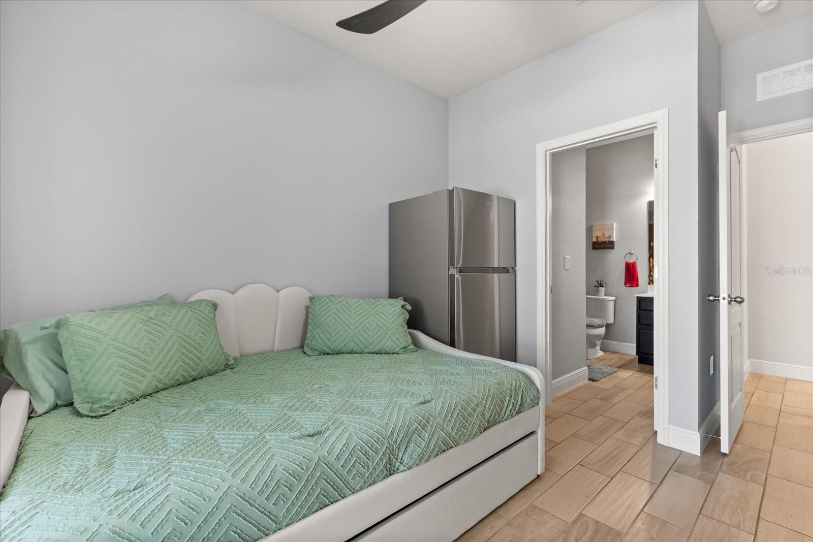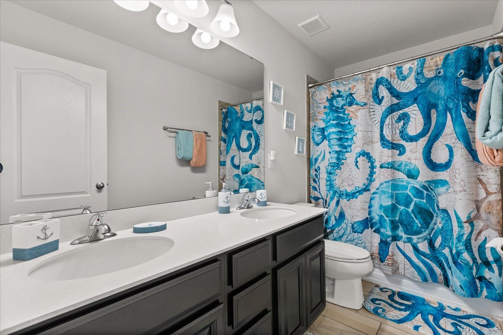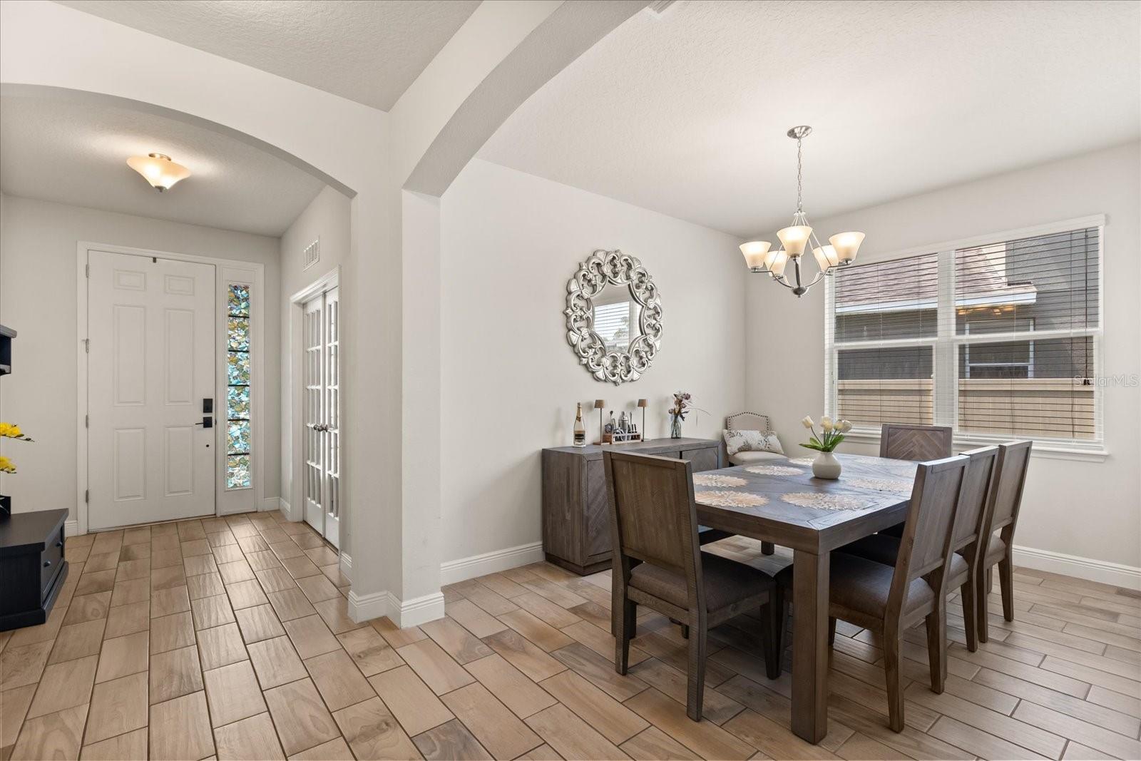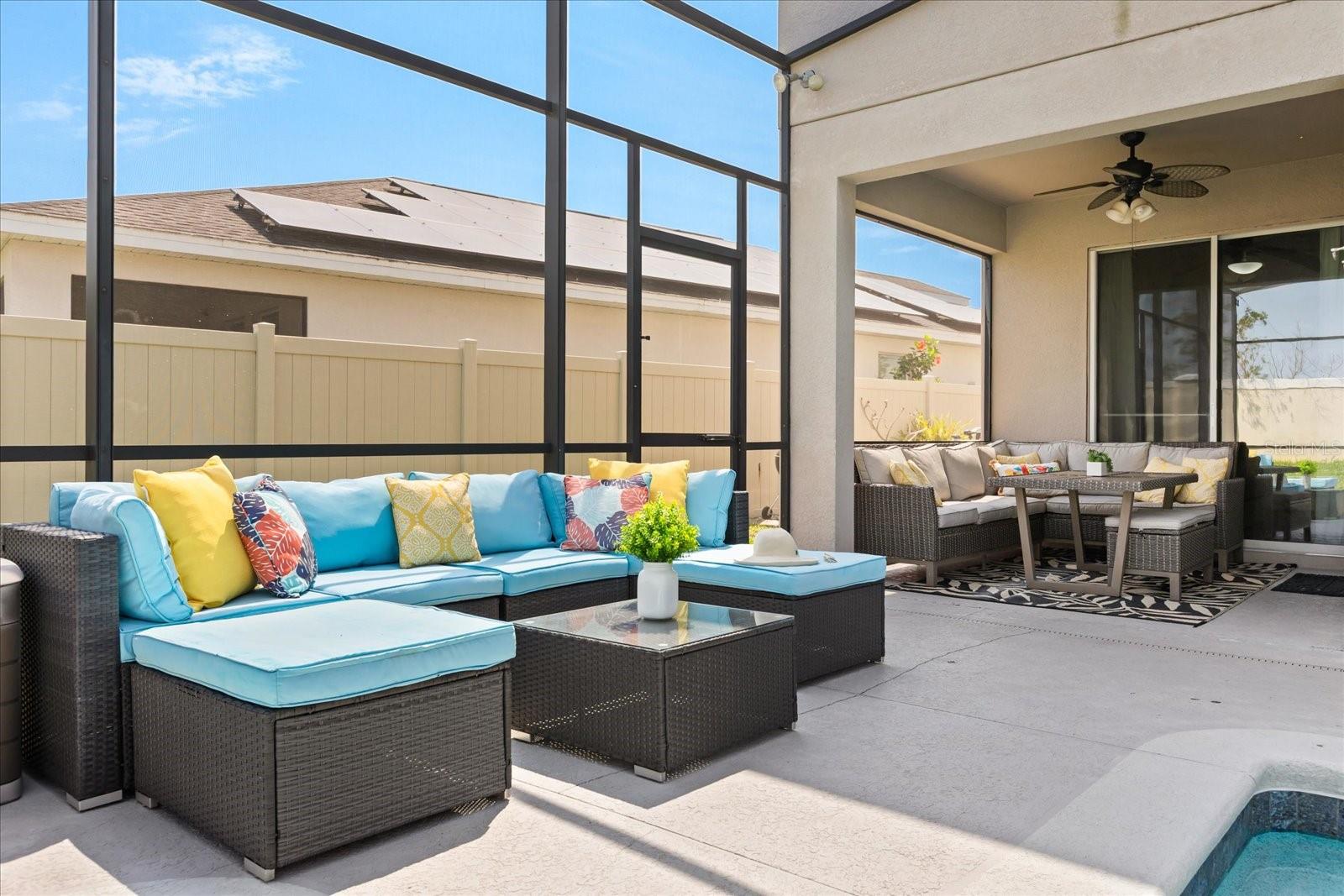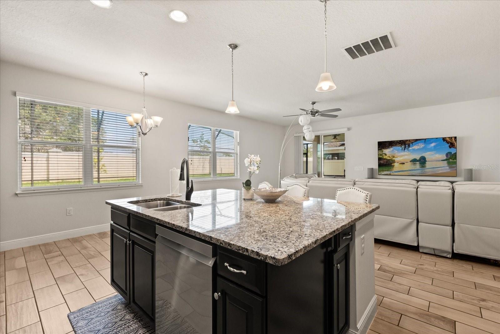 NEW PRICE! Motavited sellers...offering $10K toward buyers closing costs and by downs. Welcome to your dream home in the highly sought-after Champions Reserve community, where resort-style living meets everyday comfort. This beautifully upgraded 5- bedroom, 3-bathroom home features a private pool and spa. stunning curb appeal and luxury finishes throughout. From the moment you arrive, you'll be impressed by the professionally designed landscaping, full irrigation system, and elegant stone facade. Inside, the open and flexible floor plan offers endless possibilities. A dedicated office sits near the entryway perfect for remote work while the adjacent flex space can serve as a formal dining area, sitting room, or even a playroom. On the main level, you'll find a guest bedroom, walk in closet and full bath, ideal for visitors or multigenerational living. The gourmet kitchen is a showstopper with a massive center island, walk-in pantry, 42-inch cabinetry, built-in hutch with glass doors, upgraded glass tile backsplash with accent lighting, and newer stainless-steel appliances (2024). Upstairs, enjoy 4 spacious bedrooms including a luxurious primary suite with dual walk-in closets and a spa like bath featuring a garden tub, double vanity, and separate walk-in shower. You'll also love the oversized bonus room. Perfect as a home theater, game room, or second living area. A centrally located laundry room for added convenience. Two bedrooms feature designer accent walls for added charm and style. Step outside to your private screen-enclosed pool and spa, complete with a covered lanai and extended seating area. Perfect for morning coffee, weekend BBQs, or entertaining guest. Fully fenced backyard offers both privacy and space to relax. Located just minutes from Disney theme parks, world-class golf courses, top-rated restaurants, and the Orlando Airport, this home truly has it all. Move in ready and packed with upgrades- don't miss the chance to live in luxury! NO SHORT-TERM RENTAL.