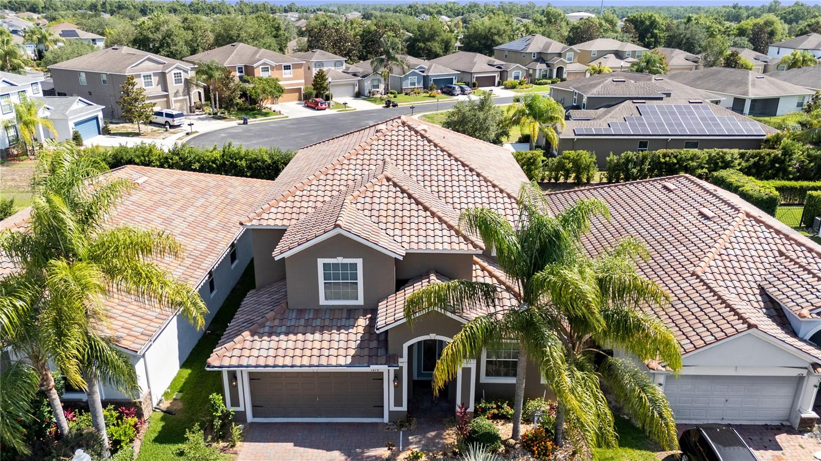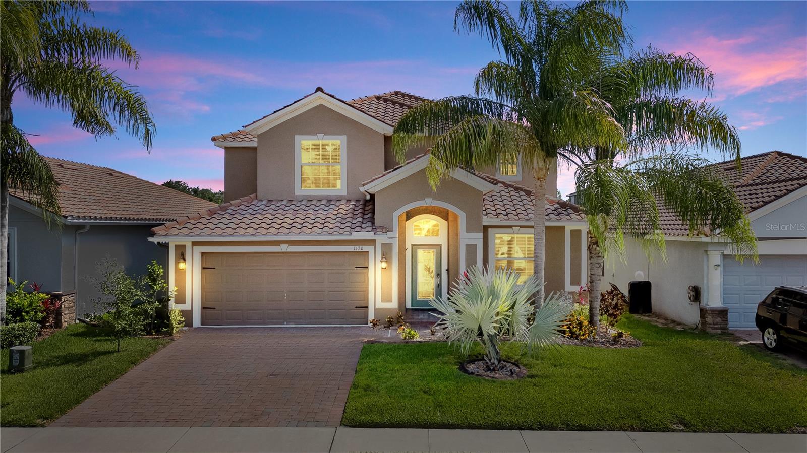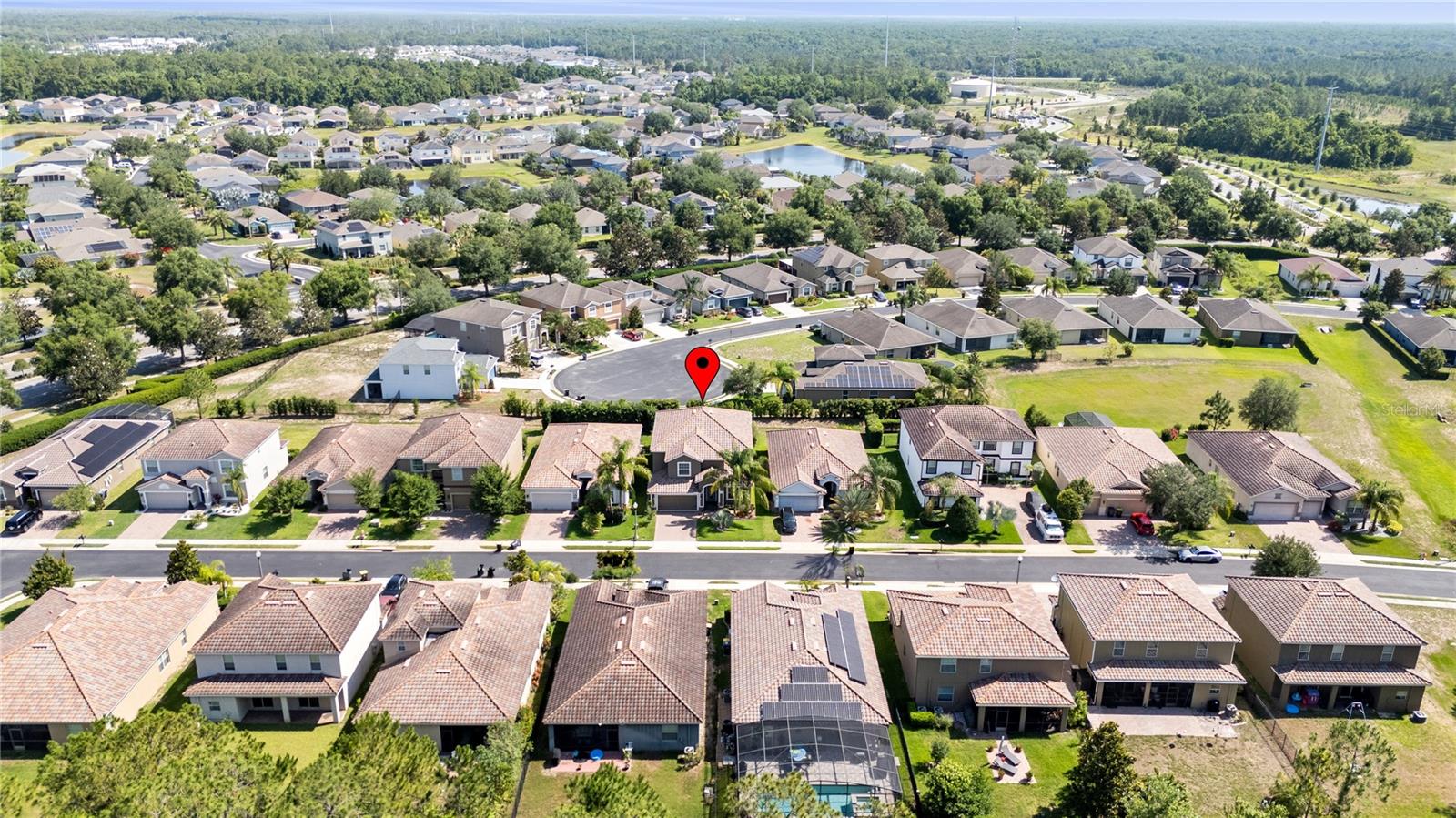 Welcome to this beautifully maintained 5-bedroom, 3-bathroom pool home, located in the highly desirable gated community of Providence. Designed for both comfort and style, this spacious home features a tile roof, brick-paver driveway, and a full-size 3-car garage with automatic opener. Meticulous upgraded curbing and mature landscaping provide instant curb appeal, while the upgraded front door with decorative glass insert offers a warm and elegant welcome. Step inside to a carpet-free interior with durable flooring throughout. The open-concept floor plan flows seamlessly from the formal living and dining rooms to the bright and airy family room, complete with arched entryways and an abundance of natural light. At the heart of the home is the chef’s kitchen, offering granite countertops, stainless steel appliances, ample cabinet space, and a built-in desk ideal for homework, crafts, or a home office setup. Sliding glass doors lead to the home’s showpiece: an enormous 34x34 covered and screened lanai, surrounded by lush landscaping and featuring a hot tub—perfect for unwinding or entertaining outdoors year-round. The main level includes a spacious guest bedroom located next to a full bath with single vanity and tub/shower combination—ideal for multigenerational living or visitors. Upstairs, you’ll find a large loft area, perfect for a playroom or secondary living space, and a bonus room that can easily serve as a 6th bedroom, home theater, or media room, thanks to the addition of a built-in closet. The primary suite offers a peaceful retreat with generous closet space and a luxurious en-suite bath complete with dual vanities, a makeup station, a soaking tub, and a glass-enclosed walk-in shower with upgraded mosaic tile accents. Three additional upstairs bedrooms are all generously sized and feature luxury vinyl flooring, providing easy maintenance and a cohesive look throughout the second floor. Residents enjoy access to a Michael Dasher-designed 18-hole golf course, resort-style and lap pools, a playground, dog park, and a fully equipped fitness center. The clubhouse is home to an on-site restaurant and bar, perfect for casual dining or social gatherings. With 24/7 gated security and walking trails, Providence offers peace of mind and an exceptional quality of life. Don’t miss the chance to own this spacious, move-in-ready home in one of Central Florida’s most desirable communities. Schedule your private showing today!