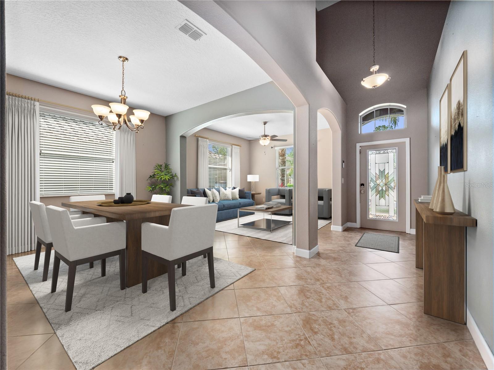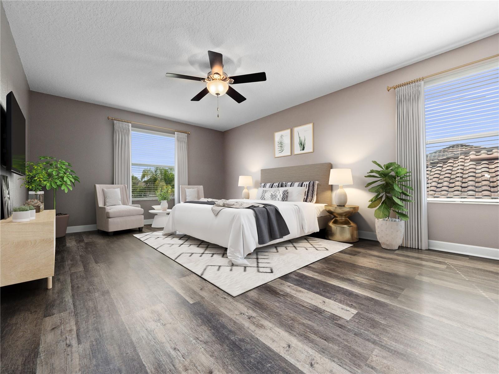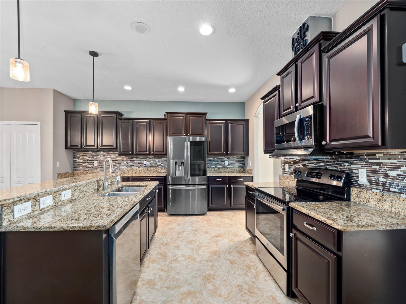 Welcome to this beautifully maintained 5-bedroom, 3-bathroom pool home, located in the highly desirable gated community of Providence. Designed for both comfort and style, this spacious home features a tile roof, brick-paver driveway, and a full-size 3-car garage with automatic opener. Meticulous upgraded curbing and mature landscaping provide instant curb appeal, while the upgraded front door with decorative glass insert offers a warm and elegant welcome. Step inside to a carpet-free interior with durable flooring throughout. The open-concept floor plan flows seamlessly from the formal living and dining rooms to the bright and airy family room, complete with arched entryways and an abundance of natural light. At the heart of the home is the chef’s kitchen, offering granite countertops, stainless steel appliances, ample cabinet space, and a built-in desk ideal for homework, crafts, or a home office setup. Sliding glass doors lead to the home’s showpiece: an enormous 34x34 covered and screened lanai, surrounded by lush landscaping and featuring a hot tub—perfect for unwinding or entertaining outdoors year-round. The main level includes a spacious guest bedroom located next to a full bath with single vanity and tub/shower combination—ideal for multigenerational living or visitors. Upstairs, you’ll find a large loft area, perfect for a playroom or secondary living space, and a bonus room that can easily serve as a 6th bedroom, home theater, or media room, thanks to the addition of a built-in closet. The primary suite offers a peaceful retreat with generous closet space and a luxurious en-suite bath complete with dual vanities, a makeup station, a soaking tub, and a glass-enclosed walk-in shower with upgraded mosaic tile accents. Three additional upstairs bedrooms are all generously sized and feature luxury vinyl flooring, providing easy maintenance and a cohesive look throughout the second floor. Residents enjoy access to a Michael Dasher-designed 18-hole golf course, resort-style and lap pools, a playground, dog park, and a fully equipped fitness center. The clubhouse is home to an on-site restaurant and bar, perfect for casual dining or social gatherings. With 24/7 gated security and walking trails, Providence offers peace of mind and an exceptional quality of life. Don’t miss the chance to own this spacious, move-in-ready home in one of Central Florida’s most desirable communities. Schedule your private showing today!