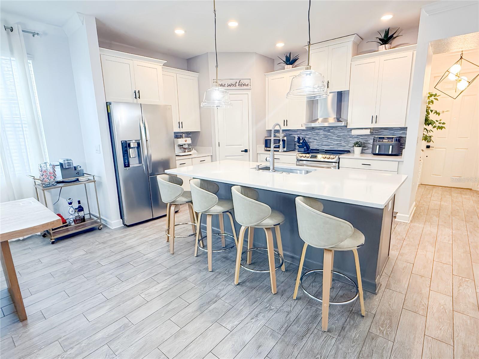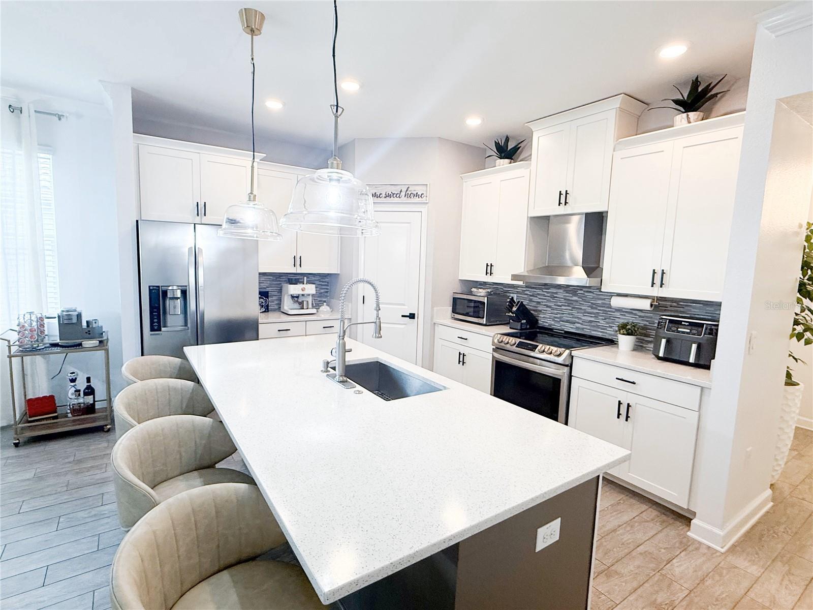 MANY UPGRADES!! Welcome to this exclusive gated community of Champions Gate within minutes of Disney World. This stunning 3 bedrooms, 2 baths, split bedrooms floorplan, den/office room, spacious home with tile roof and screened/covered lanai. The open floor plan with a combination Kitchen, Dining area and Family Room make for entertaining at it's finest. Any Chef will fall in love with the Large Kitchen with quartz Counters, 42 inch wood cabinets, Stainless Appliances and accompanying Island. To enhance Florida Living a Large Screened Covered Lanai with pavers accessed by a double sliding door is the perfect place to relax after a long day of shopping or work. A Large Master Bedroom Suite has a Walk In Shower, Garden Tub and Dual Sink Vanity with access to the Lanai area. Two other nice size bedrooms with a bath in between help to compliment this spacious floor plan. As you enter this well appointed home you will enjoy the natural light that radiant through this home with it's great open space. Just minutes away from all the attractions, restaurants and major highways. This community is within striking distance of restaurants, schools, golf courses, all the amenities of a big City including the new Champions Gate Down Town! Everything is included... HOA includes cable, phone, home security system, Oasis Club House, 24 hour security guard gated, Internet, all exterior Landscape, volleyball, Tennis courts, $75 food voucher every month and unlimited access to Golf! At the Oasis clubhouse, you will enjoy all the amenities you can imagine! Kid's pool, splash area, family pool, lazy river, A/C private cabanas, restaurants, bar, gym, theater, business center, pool area service and much more! Live like your on Vacation everyday of the year in this Beautiful Golf Course Resort Community! Close proximity to all the Theme Parks! This also makes for a great INVESTMENT Property for long term rentals. Make this your Home.