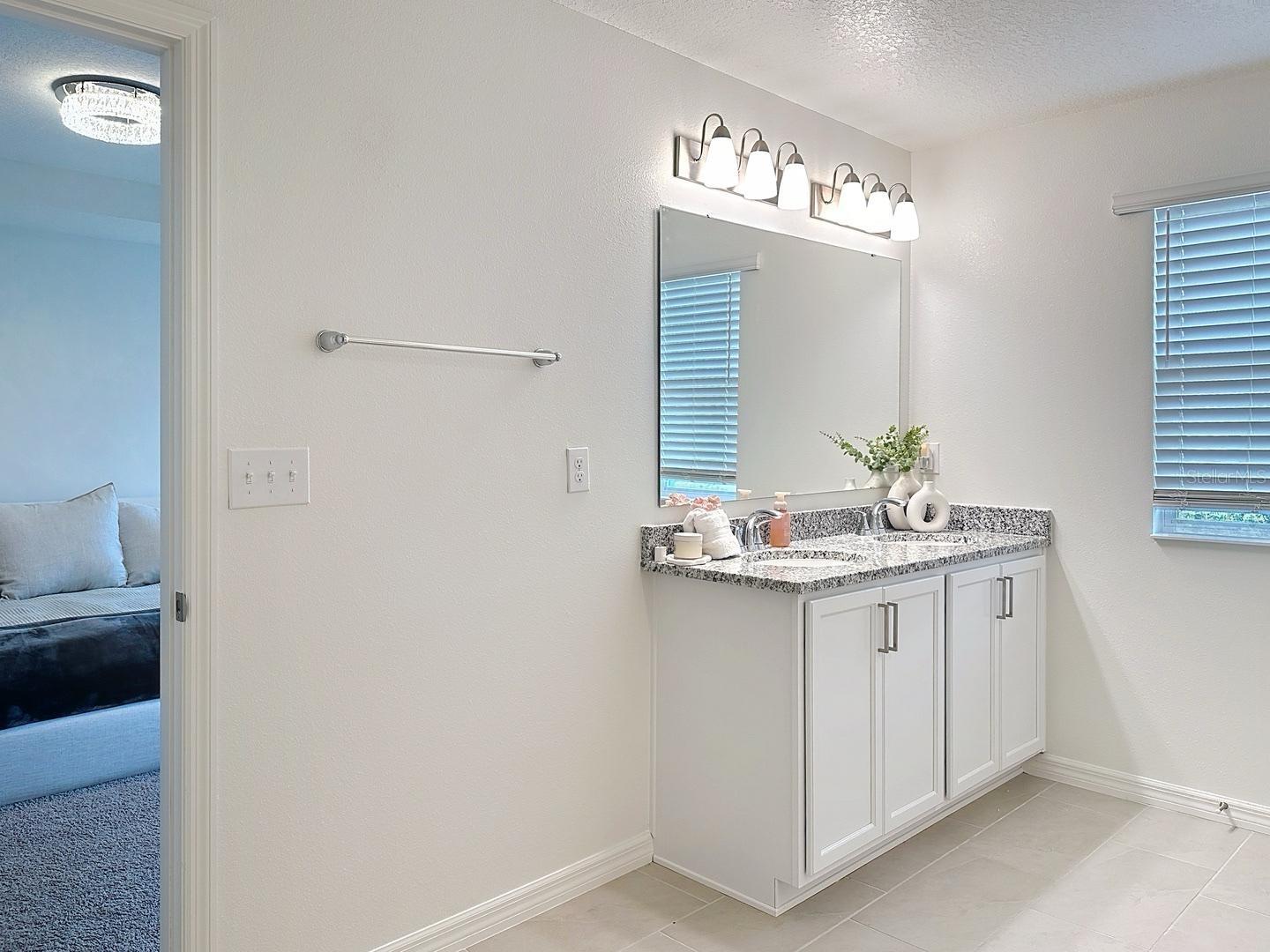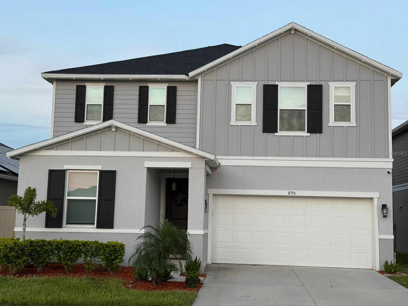 Welcome to 985 Overpool Ave, Davenport, FL, where comfort meets functionality in this beautifully designed two-story home. From the moment you arrive, the inviting covered front porch sets the tone for the charm and warmth found throughout the property. Step inside to discover 9-ft. ceilings and tile flooring flowing through the main living areas, creating an open and airy atmosphere perfect for entertaining or everyday living. The spacious great room seamlessly connects to the modern kitchen, which boasts 36-inch upper cabinets, granite countertops, and Whirlpool® stainless steel appliances, offering both style and practicality. This home also features a versatile den and a bright breakfast nook, ideal for working from home, casual dining, or simply relaxing. Upstairs, a generous loft provides additional flexible living space, while the conveniently located laundry room enhances day-to-day convenience. The primary suite is a true retreat, complete with a large walk-in closet and a private bathroom featuring a spacious walk-in shower.