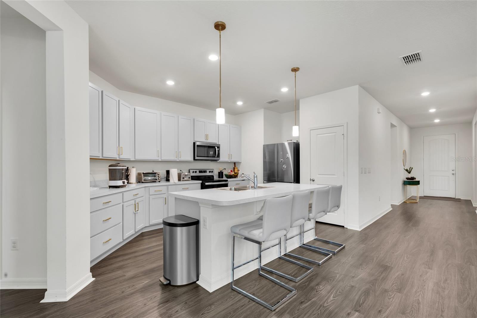 Welcome to your dream home in the vibrant ChampionsGate community of Davenport, Florida! This stunning four-bedroom, two-bathroom residence offers a lifestyle where every day feels like a vacation. With resort-style amenities right at your doorstep, you can enjoy access to a premier golf course, waterpark, lush green spaces, scenic walking and jogging trails, and a refreshing community pool. As you step inside, you're greeted by high ceilings and sleek vinyl plank flooring throughout, eliminating the hassle of carpet maintenance. The home features two spacious bathrooms and a modern kitchen equipped with elegant 42-inch cabinets complete with stylish hardware fixtures. For your convenience, the property comes with a washer and dryer. Living in ChampionsGate means enjoying a wealth of nearby amenities. You'll find Posner Park, an outdoor mall filled with shopping, dining, and entertainment options, only moments away. Plus, you’re just 15 minutes from Disney Springs, 20 minutes from the gates of Walt Disney World, and 35 minutes from Legoland. The exciting new Epic Universe theme park is also a short drive away! With popular spots like Chick-fil-A, Starbucks, and Publix just minutes from your door, this home truly offers the best of both convenience and lifestyle. Don't miss your chance to claim this perfect place as your own! Schedule a showing today!