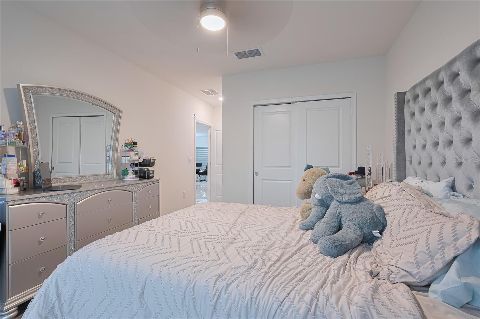 Welcome to this stunning two-story home featuring five spacious bedrooms and three and a half bathrooms, thoughtfully designed for modern, comfortable living. This beautiful property offers two master suites, one on the first floor and another on the second floor, ideal for multigenerational families or hosting guests in privacy. Step inside and experience the charm of an open concept layout enhanced by abundant natural light. The elegant kitchen is equipped with quartz countertops, a big refrigerator, and premium finishes, while all bathrooms boast floor-to-ceiling ceramic tile walls for a luxurious touch. The home is outfitted with a smart home system for effortless living, along with a whole house water filtration system. Outside, enjoy a beautiful backyard complete with a gazebo and wooden balcony deck a fantastic space for family gatherings, outdoor dining, or weekend relaxation. Ideally located directly in front of the community pool and mailbox area, this property offers both convenience and lifestyle perks. Additionally, it’s strategically positioned near parks, shopping centers, and entertainment options. Don’t miss your chance to own this exquisite property, schedule your private showing today!