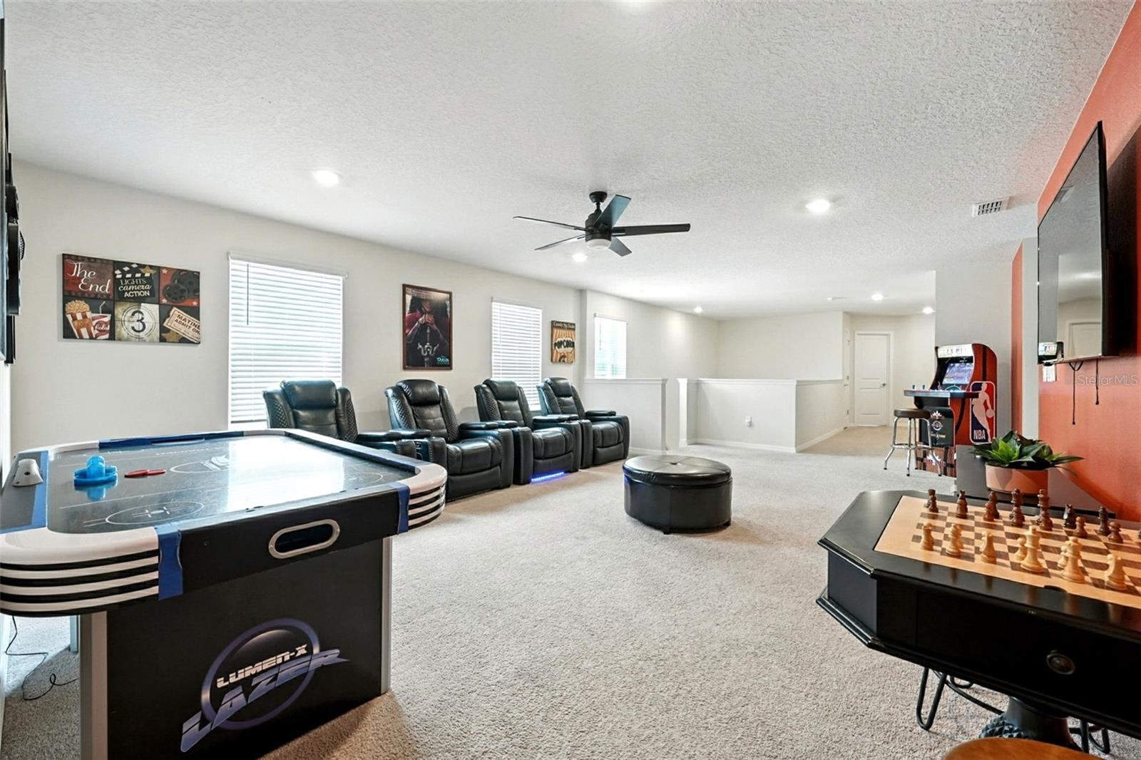 UNMISSABLE INVESTMENT OPPORTUNITY AT WINDSOR ISLAND RESORT!! Discover a remarkable chance to own a property in the highly sought-after Windsor Island Resort, renowned for its lucrative short-term rental potential. This stunning home boasts an unbeatable location—just a stone's throw from the clubhouse and a wealth of fantastic amenities! Step inside and be captivated by the home's charm: soaring ceilings, a welcoming open floor plan, and tasteful decor create an inviting atmosphere that’s hard to resist. The sociable living area has a spacious kitchen overlooking the living room and the formal dining. The expansive first-floor master suite is a true retreat, featuring a generous bedroom, ample closet space, and a luxurious bathroom complete with a shower, tub, dual sinks, and direct access to the sparkling pool deck. Also conveniently located on the main level are the laundry room and a stylish half bath for guests. Venture upstairs to discover a spacious second living area transformed into an extraordinary movie and games room, equipped with plush theater seating, air hockey, and classic arcade game—perfect for entertaining! You’ll also find six additional bedrooms, each thoughtfully designed to maximize guest appeal, including a whimsical princess room, an adventurous Avengers room, and two beautifully appointed suites. Outside, indulge in the refreshing pool and spa, complemented by a large, shaded lanai—ideal for relaxing during those warm Florida days. The pool deck is fenced to the rear ensuring privacy from the rear neighbors. Windsor Island is a prestigious, guard-gated resort that attracts visitors from around the globe. Enjoy proximity to an array of shopping and dining options, with easy access to Disney (just 20 minutes away), Universal Studios (30 minutes), and Orlando International Airport (30-40 minutes). Plus, the stunning Gulf and Atlantic beaches are just a short drive for delightful day trips. This exceptional property represents a fantastic investment opportunity at an unbeatable price. Don't let it slip away!