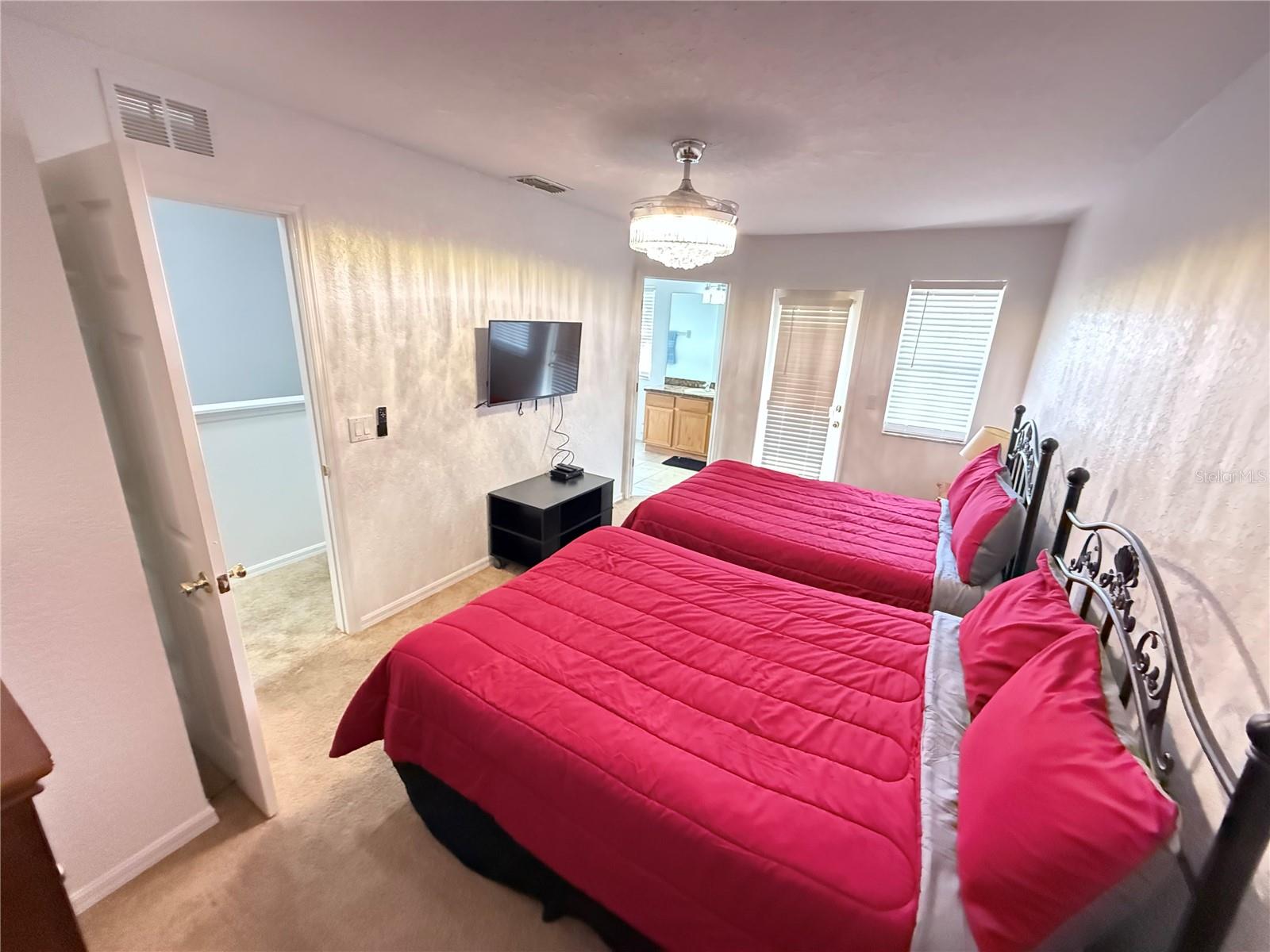 Have you been looking for a vacation retreat? Would you like to start a successful short-term rental business? Do you need a multigenerational home? This property is perfect for you, features 3 bedrooms and 2 ½ bathrooms, of which one ensuite bedroom with full bathroom is conveniently located downstairs and has its own private entrance, ideal for in laws or additional rental income. The home is being sale FULLY FURNISHED. Reasons to love this home are endless, starting with its prime location, just a short drive to Orlando famous theme parks, easy access to major highways and 0.2 miles from a shopping plaza that offers groceries stores, restaurants, and other shopping options. The community is guard gated and offers endless entertainment choices: Resort style swimming pool with a lazy river and waterfall, jacuzzi, sauna, etc. On site restaurants, tiki bars, ice cream parlor and a 2000 square feet arcade. Stay fit with a fully equipped gym, volleyball field, and playground. The HOA covers 24-Hour Guard, Cable TV, Community Pool maintenace, Internet, Maintenance Exterior, Maintenance Grounds, Pest Control, Security, Valet trash collection, to maximize a care free lifestyle.