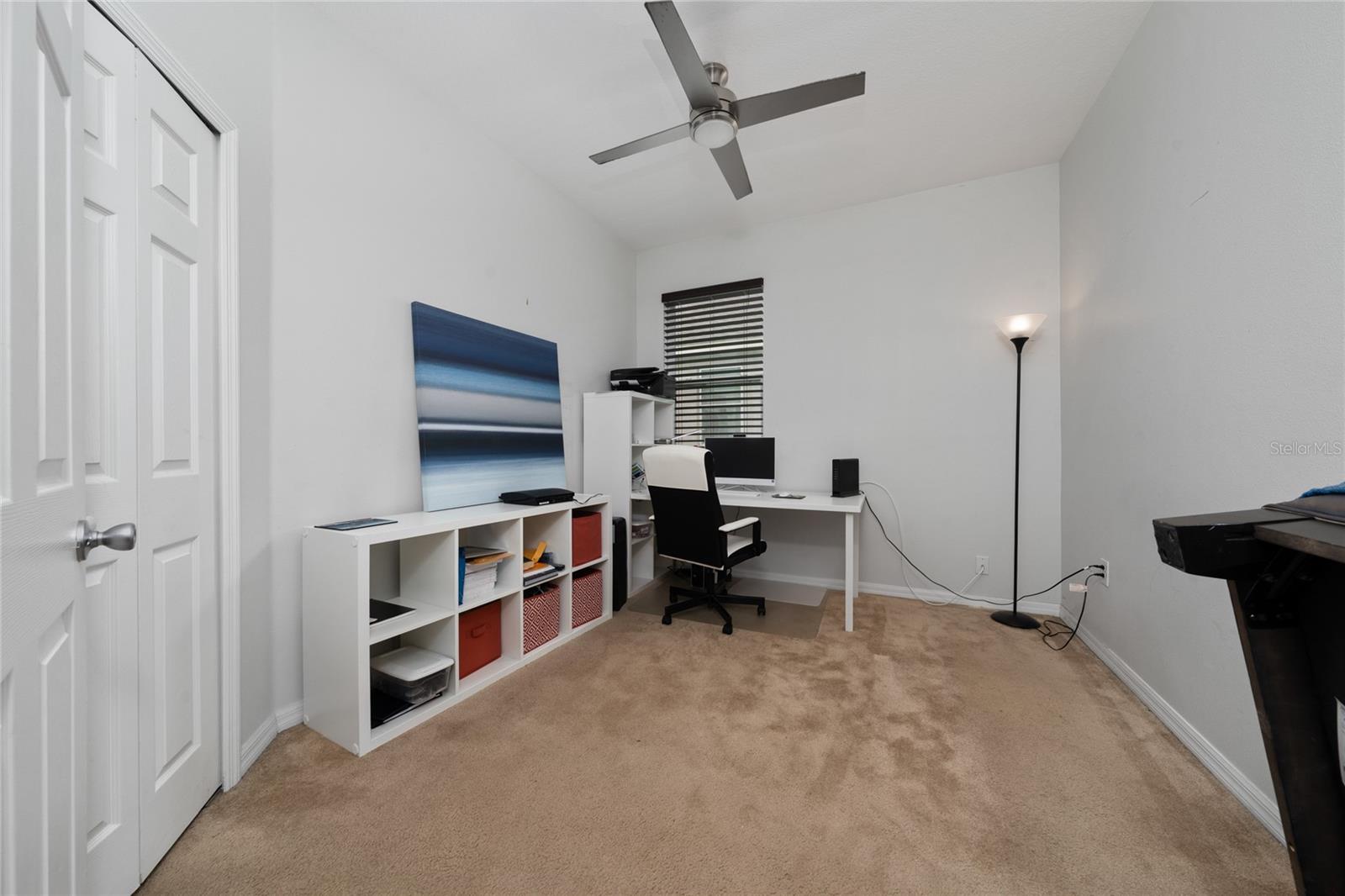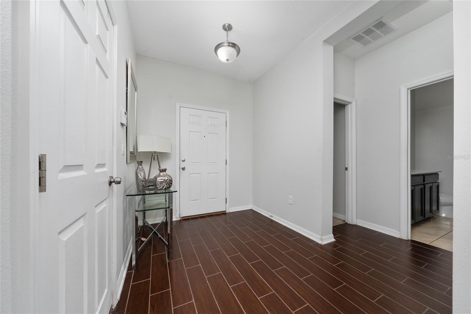 Welcome to this well-maintained 3-bedroom, 2-bathroom home located in the gated, resort-style community of Bridgeford Crossing! This move-in ready property offers **$10,000 CREDIT FOR CLOSING COST OR INT. RATE BUY-DOWN** and features a bright, open floor plan with tile and laminate flooring throughout. The spacious living and dining areas flow seamlessly into the kitchen, which offers plenty of cabinet space, solid surface counters, and a breakfast bar for casual meals. The primary suite includes a walk-in closet and a private en-suite bathroom with a step-in shower. Two additional bedrooms and a full guest bath provide flexible space for family, guests, or a home office. Step outside to the screened patio — perfect for enjoying Florida’s year-round sunshine — and a private backyard backing up to a conservation area. Bridgeford Crossing is a gated community with fantastic amenities: clubhouse, fitness center, pool, tennis courts, and more. Access to all community amenities. Conveniently located near shopping, restaurants, golf courses, and just minutes from Disney and major Central Florida attractions.