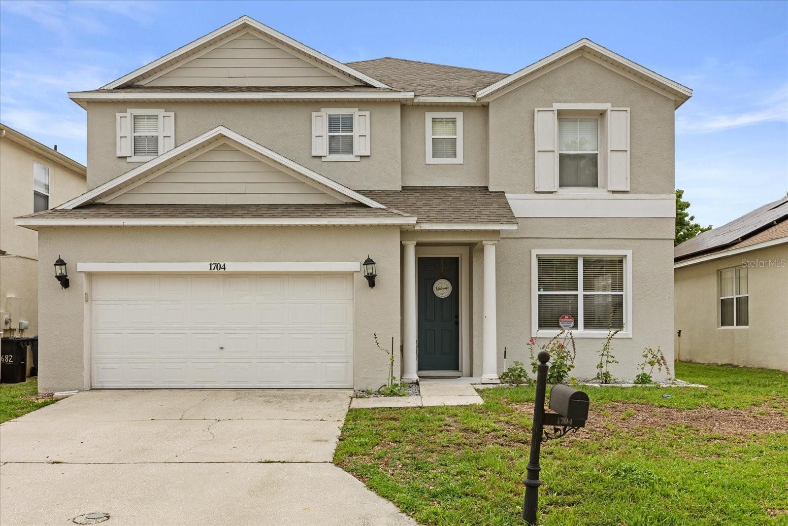 SUPER CLOSE to Disney, near Margaritaville and other Theme Parks. SO Beautiful, spacious 5-Bedroom, 4.5-Bath Home with Private Pool and Spa LOW HOA $680/year. The stunning 5-bedroom, 4.5-bathroom home features an expansive open floor plan that seamlessly connects all living areas. Ideal for both relaxation and entertaining, the first floor boasts a spacious master bedroom with beautiful walk-in full bathroom with natural river rock shower floor, seeking privacy and outside, a cute half bath. The heart of the home includes a huge, bright breakfast area with Huge Island kitchen that flows into the Great family room, with sliding glass doors leading to a huge pool and Spa and covered porch—ideal for outdoor gatherings and sun-soaked afternoons. Upstairs, you’ll find the inviting GIANT owner’s master suite alongside three additional bedrooms, plus a HUGE family room. The home is tastefully decorated throughout, creating a warm and welcoming atmosphere. This is perfect as a primary family home, a vacation retreat, or an income-generating short-term rental. Investors are also welcomed—this property would make a fantastic addition to any rental portfolio. Don’t miss the opportunity. New water heater, new water filter,new fridge,newish AC and Solar Panels. Luxury light fixtures/chandeliers don't convey.