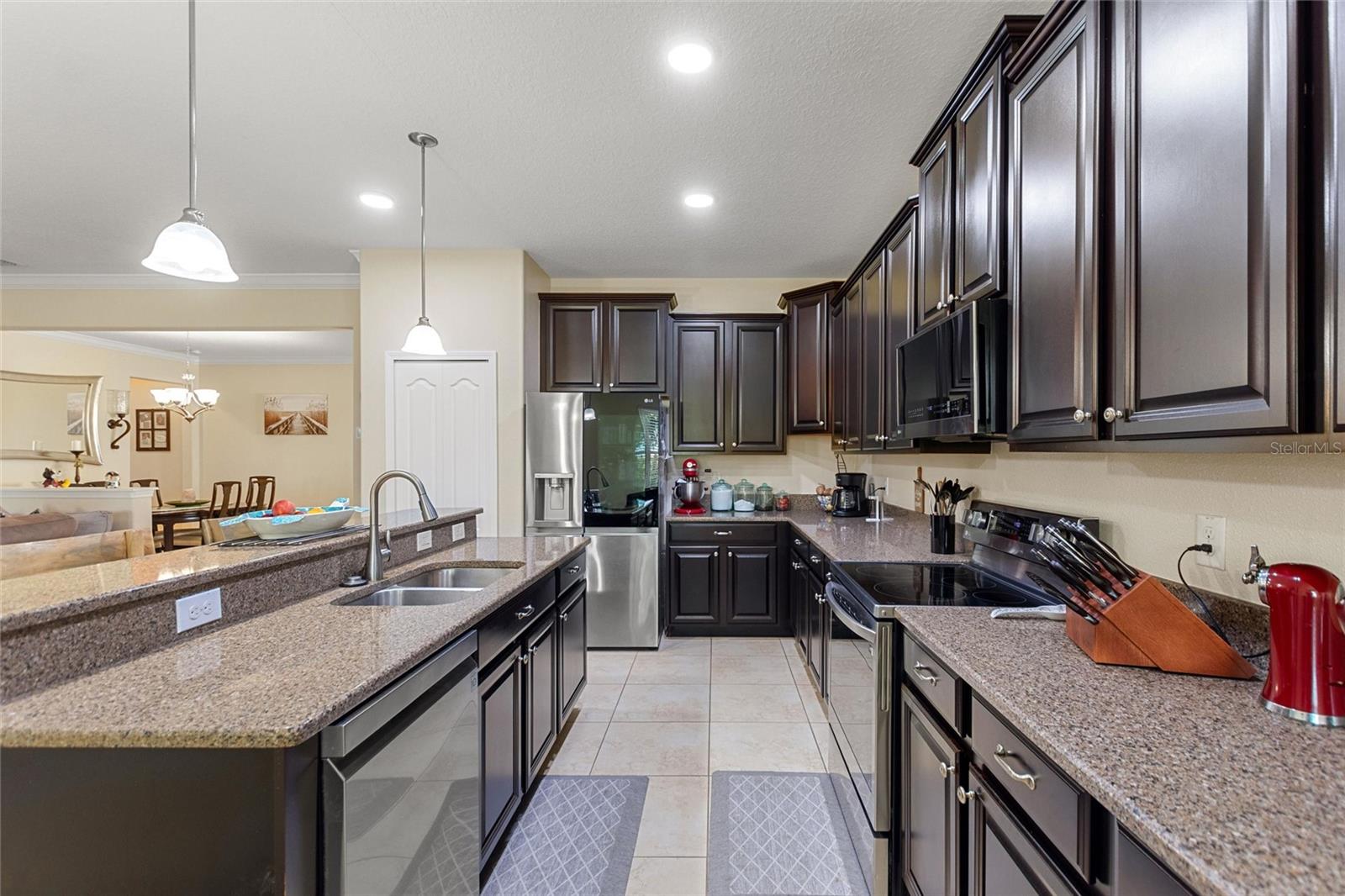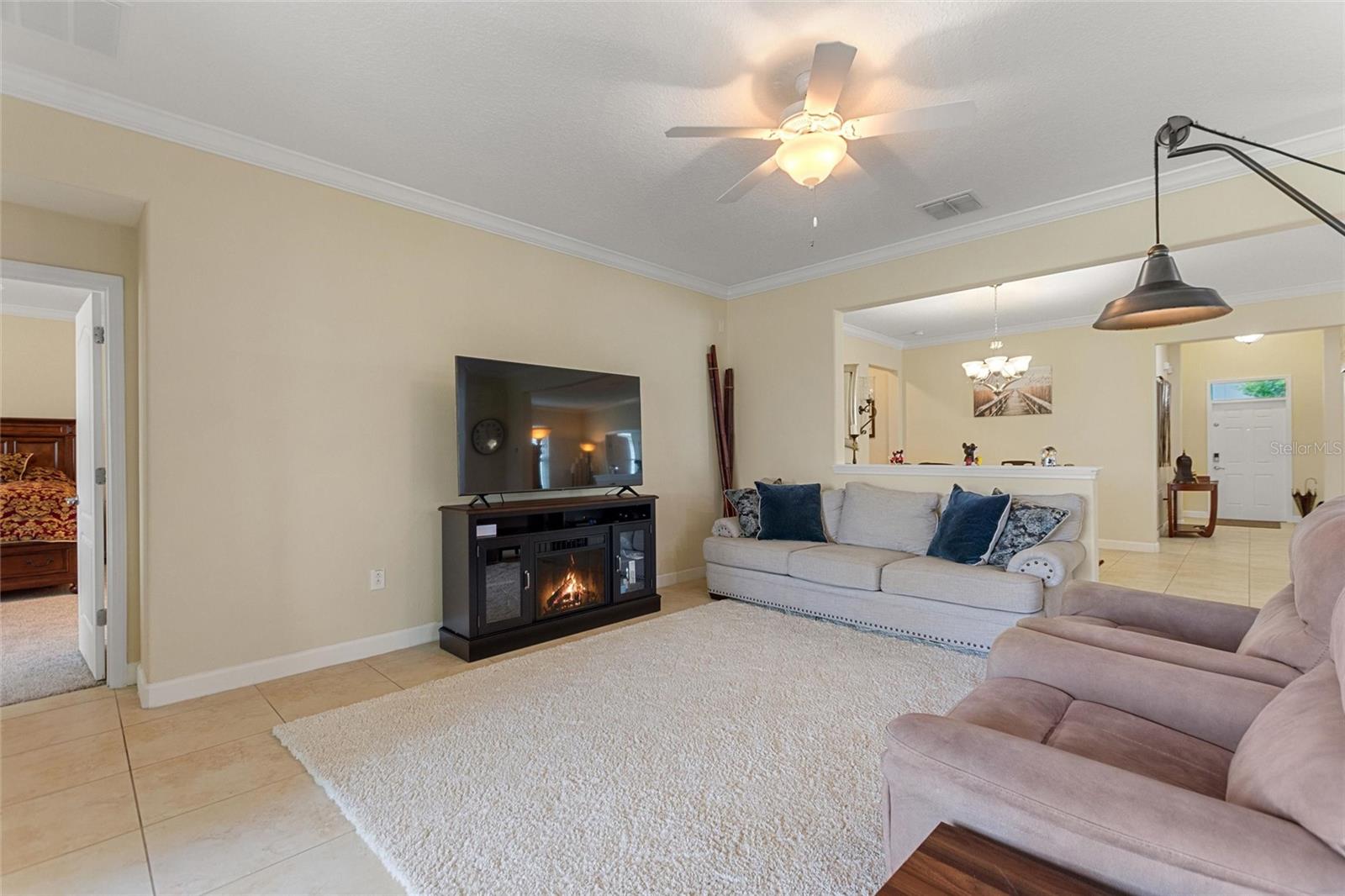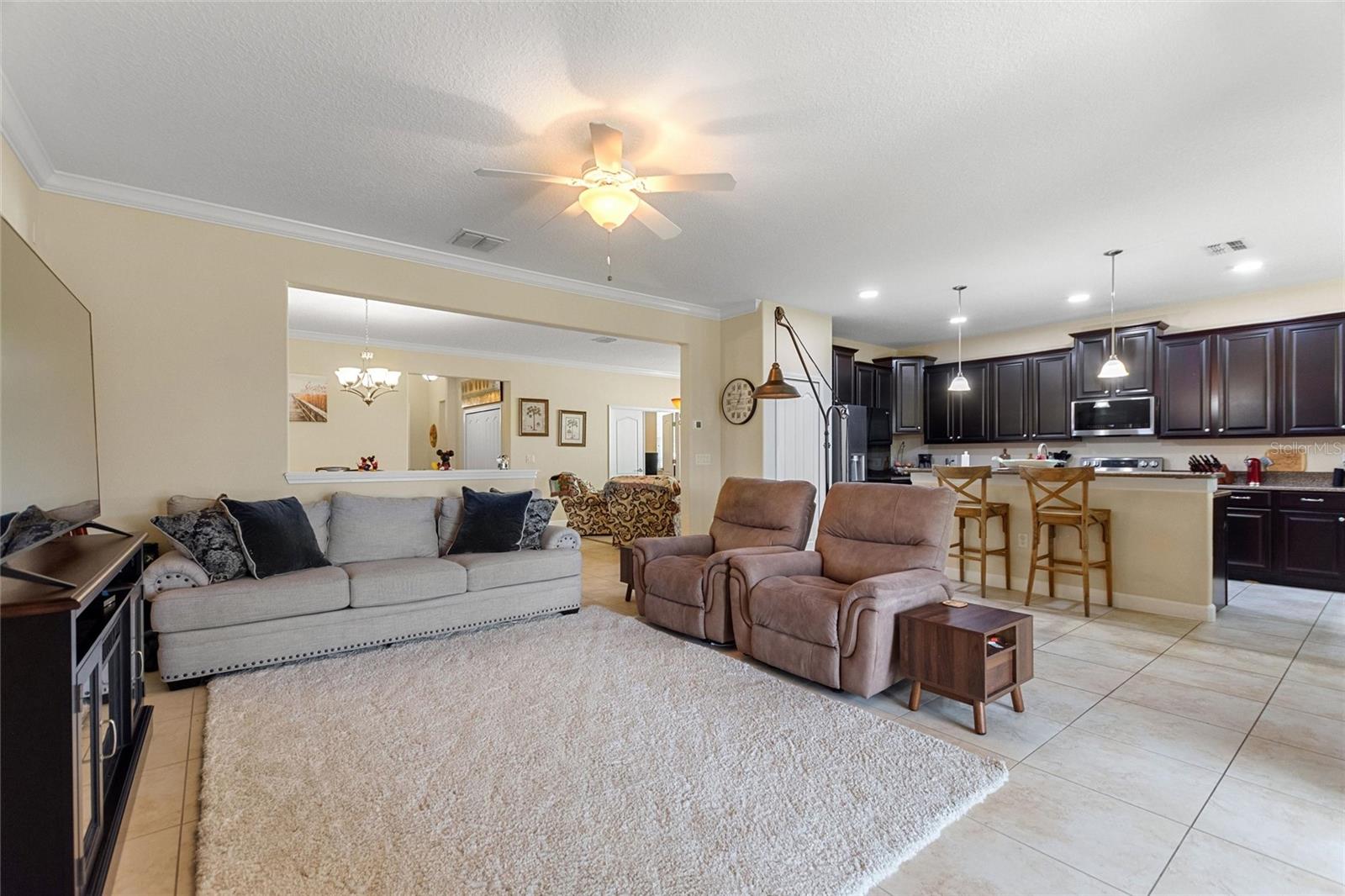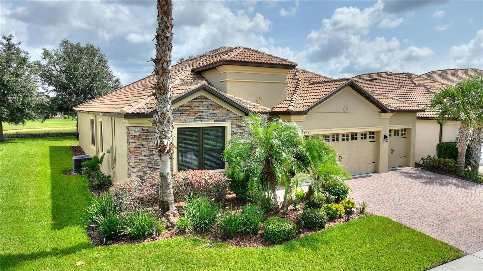LIVE LIKE A CHAMPION! GOLF COURSE FRONTAGE, FULL GOLF MEMBERSHIP INCLUDED IN THE HOA! Absolutely flawless 3 bedroom, 3 bathroom home with a versatile flex room and 3-car garage, ideally situated on the ChampionsGate Country Club golf course! Nestled on one of the most coveted lots in the community, this exceptional residence is just steps from the neighborhood restaurant and resort-style pools, offering luxury, convenience, and an unbeatable location. Recently freshly painted inside and out, this meticulously maintained home is loaded with upgrades and move-in ready. Step inside and you’ll be welcomed by a bright, open floor plan with 18” tile throughout the main living areas and new luxury Stainmaster carpet in all bedrooms and closets. The spacious flex room is perfect for a home office, guest suite, or hobby space, offering endless possibilities to suit your lifestyle. The chef-inspired kitchen features brand-new LG stainless steel appliances, granite countertops, and abundant cabinetry, creating a space that is both functional and stylish. A new LG stackable washer and dryer adds convenience in the laundry room, which also offers additional storage. Retreat to the luxurious primary suite, complete with dual vanities, a large walk-in shower, and new plush carpeting for added comfort. The home also includes new energy-efficient windows with a transferable warranty, new coach lights, and updated LED recessed lighting throughout, blending efficiency with modern elegance. Enjoy peaceful mornings and shaded afternoons from your north-facing rear lanai, where panoramic views of the golf course create the perfect setting to relax and unwind. ChampionsGate offers unmatched amenities, all easily accessible via golf cart-friendly roads. The Oasis Club, a 14,000 sq. ft. private clubhouse, features a restaurant, movie theater, state-of-the-art fitness center, game room, tiki bar, lazy river, private cabanas, and more. Residents also enjoy exclusive access to The Plaza, a private clubhouse with its own restaurant ($75 monthly food credit), bar, fitness center, game room, two sparkling pools, and pickleball courts. The newly opened Retreat Club further elevates your lifestyle with a full waterpark and additional recreational facilities. Your HOA membership includes access to all clubhouses, full golf and tennis privileges, pickleball, gated entries, lawn care, security monitoring, and even cable, internet, and phone services. CDD fees and trash collection are also included in the taxes. Located just minutes from world-class theme parks, premier golf, shopping, and dining, this home offers a truly turnkey opportunity in one of Central Florida’s most sought-after communities. Don’t miss your chance to own a beautifully upgraded home in the best location in ChampionsGate, schedule your private showing today!