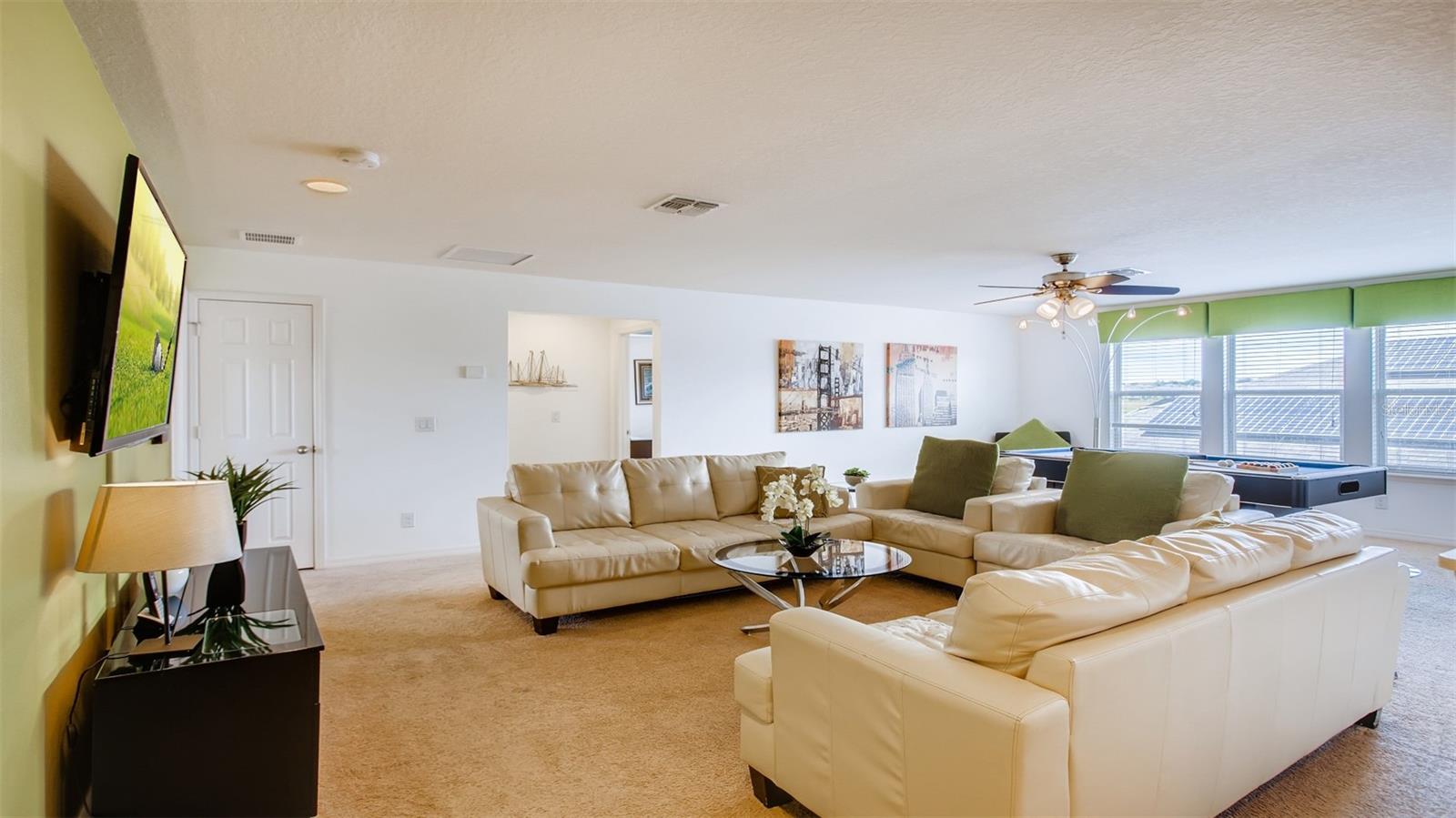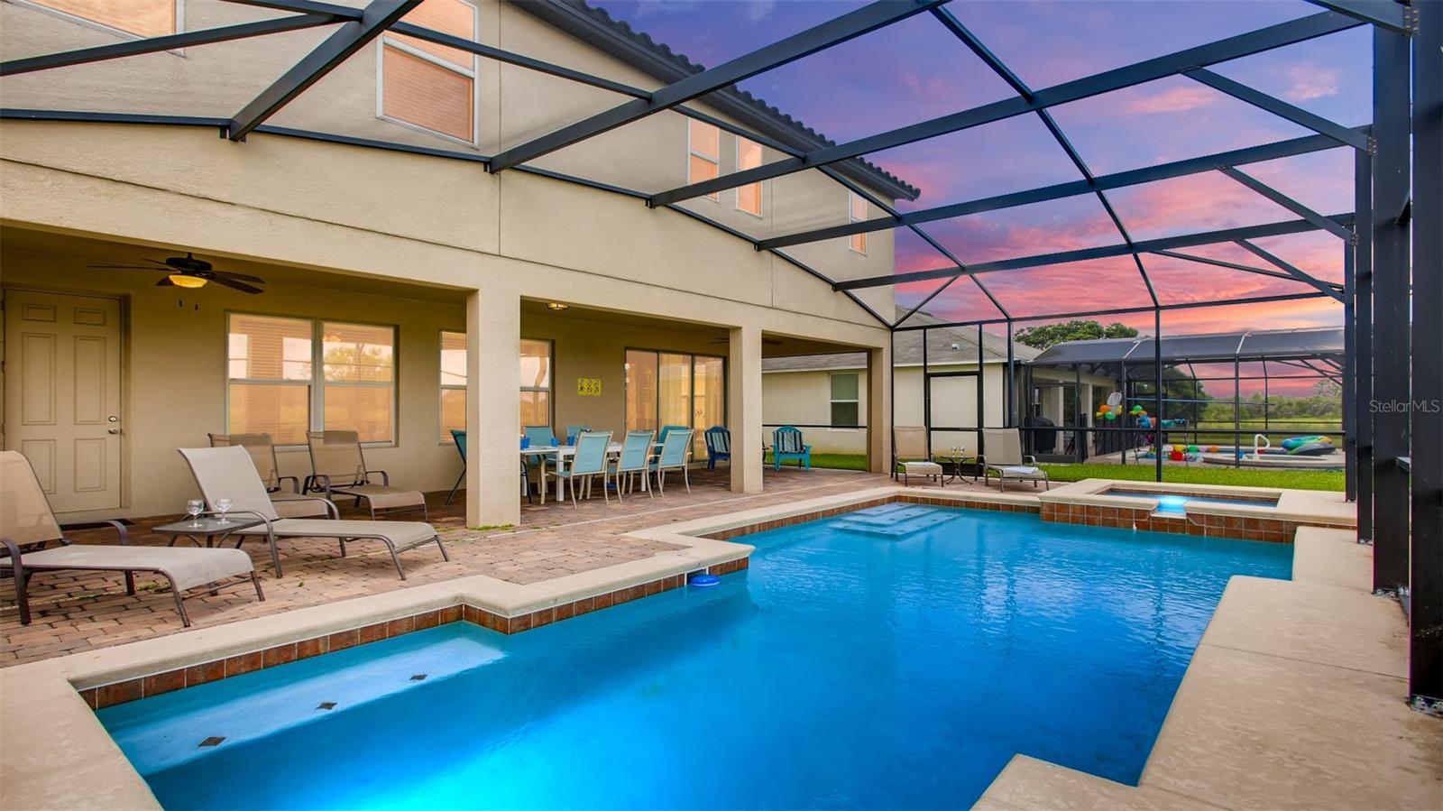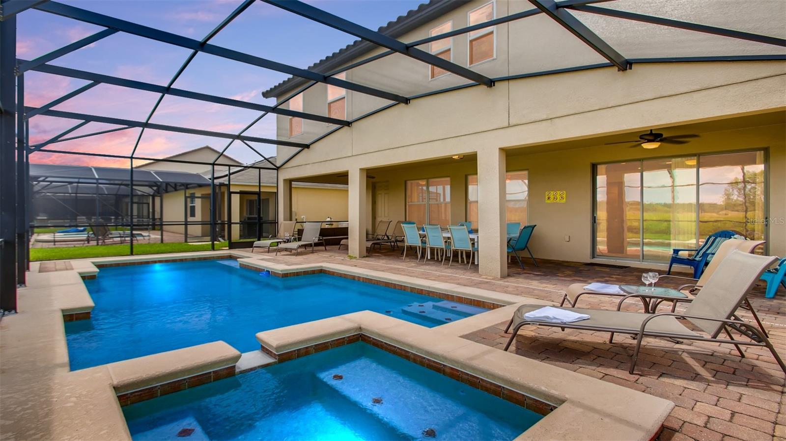 Exclusively furnished 7 bedroom villa in The Dales at West Haven. This luxury villa is situated on one of the most sought after lots in the community, with a south-facing pool & hot tub. Relax and enjoy the late sun and beautiful Florida sunsets, from your 14x28 feet oversized pool! The oversized pool deck and spacious kitchen is perfect for entertaining your family, friends and/or rental guests. With a total of 7 bedrooms and 6 full bathrooms, and 3500+sq.ft, this home will accommodate a large group of guests in comfort and style. This popular Samoa model built by Beazer Homes, includes a brick paved driveway and pool area as well as a tiled roof. Dales at West Haven is one of the newest subdivision in West Haven and is zoned for short term rentals. West Haven has a fantastic location, close to Disney Parks, Champions Gate, world class shopping centers and restaurants. This gated luxury resort includes a clubhouse with pool, fitness center, tennis courts and sand volley ball. Home is currently in a rental program and future bookings may convey to buyer. Don't wait on this one!
