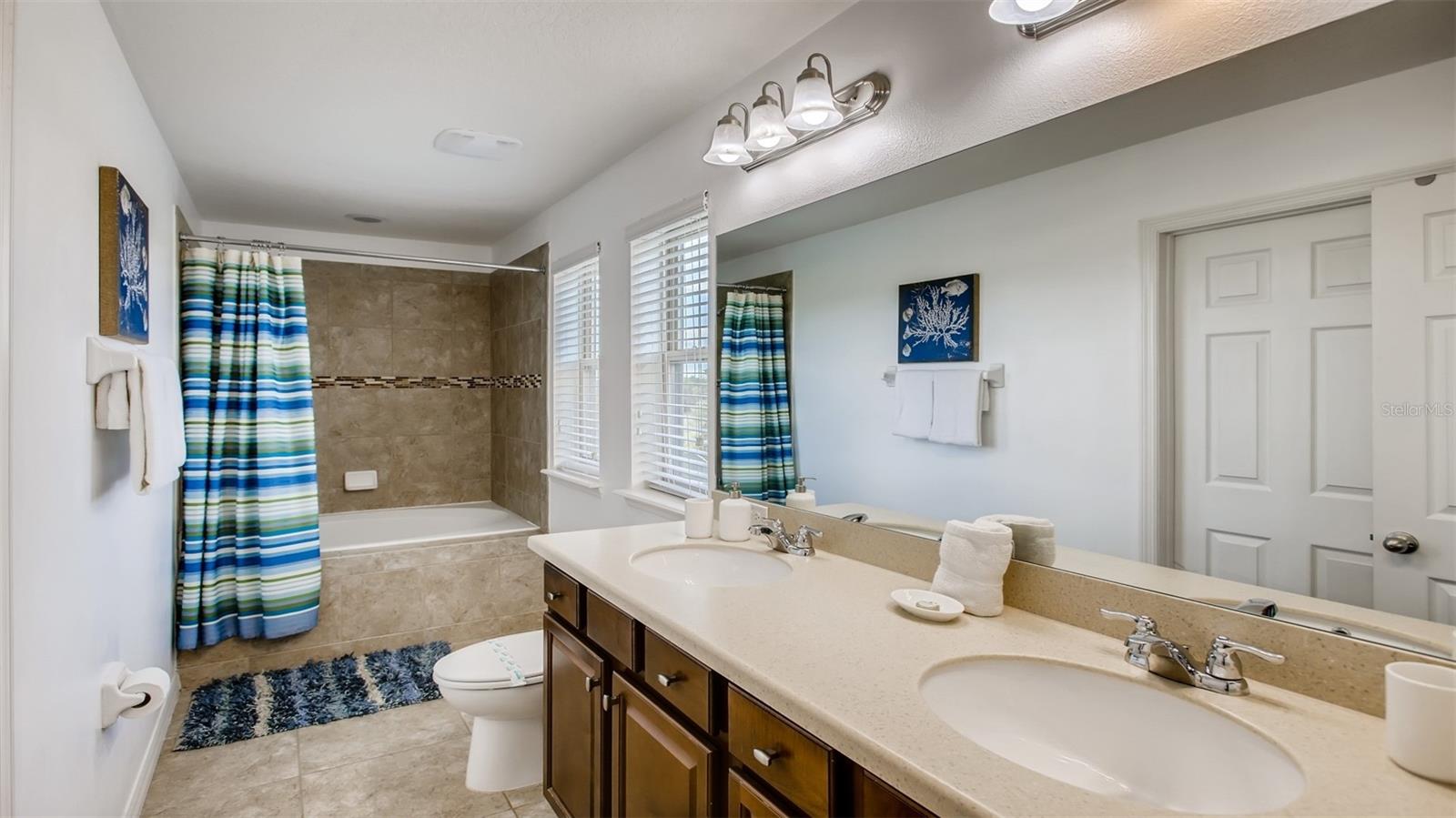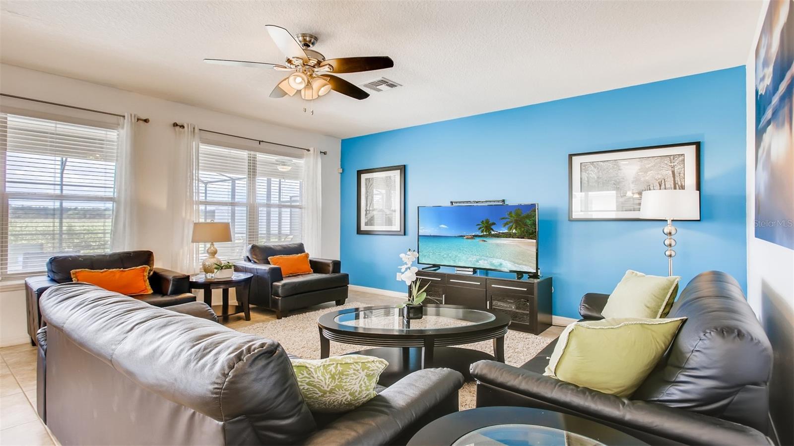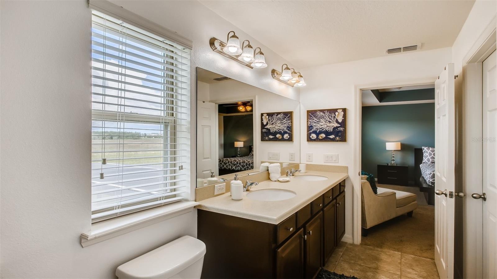 Exclusively furnished 7 bedroom villa in The Dales at West Haven. This luxury villa is situated on one of the most sought after lots in the community, with a south-facing pool & hot tub. Relax and enjoy the late sun and beautiful Florida sunsets, from your 14x28 feet oversized pool! The oversized pool deck and spacious kitchen is perfect for entertaining your family, friends and/or rental guests. With a total of 7 bedrooms and 6 full bathrooms, and 3500+sq.ft, this home will accommodate a large group of guests in comfort and style. This popular Samoa model built by Beazer Homes, includes a brick paved driveway and pool area as well as a tiled roof. Dales at West Haven is one of the newest subdivision in West Haven and is zoned for short term rentals. West Haven has a fantastic location, close to Disney Parks, Champions Gate, world class shopping centers and restaurants. This gated luxury resort includes a clubhouse with pool, fitness center, tennis courts and sand volley ball. Home is currently in a rental program and future bookings may convey to buyer. Don't wait on this one!