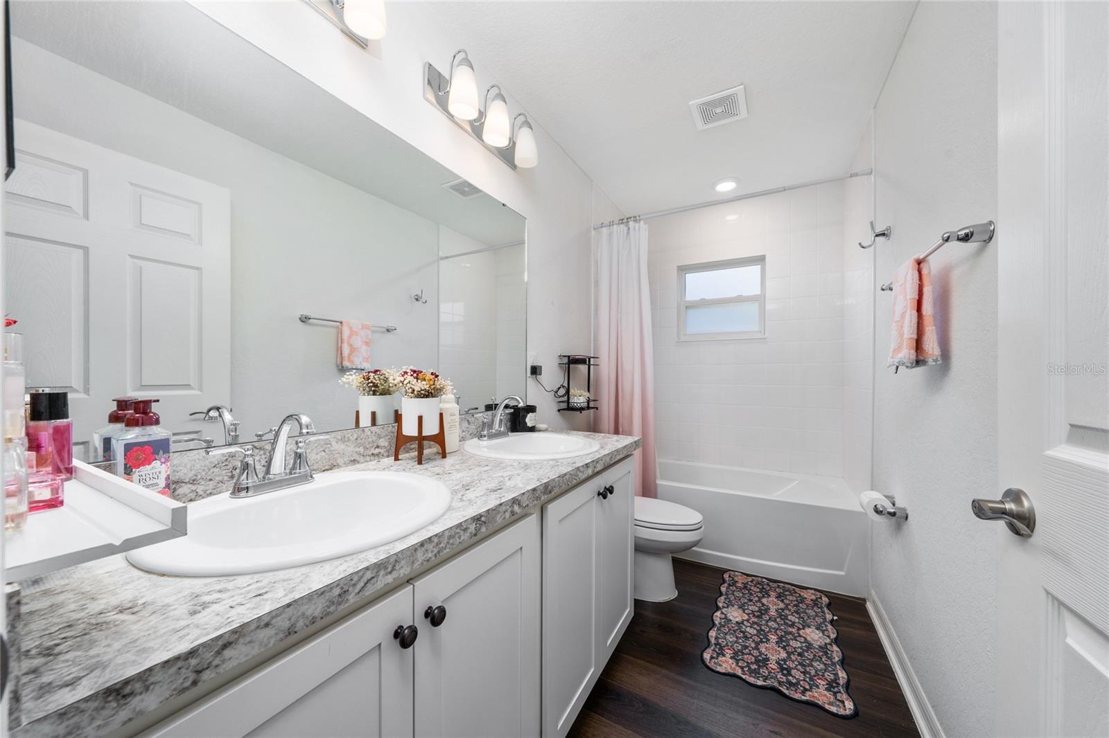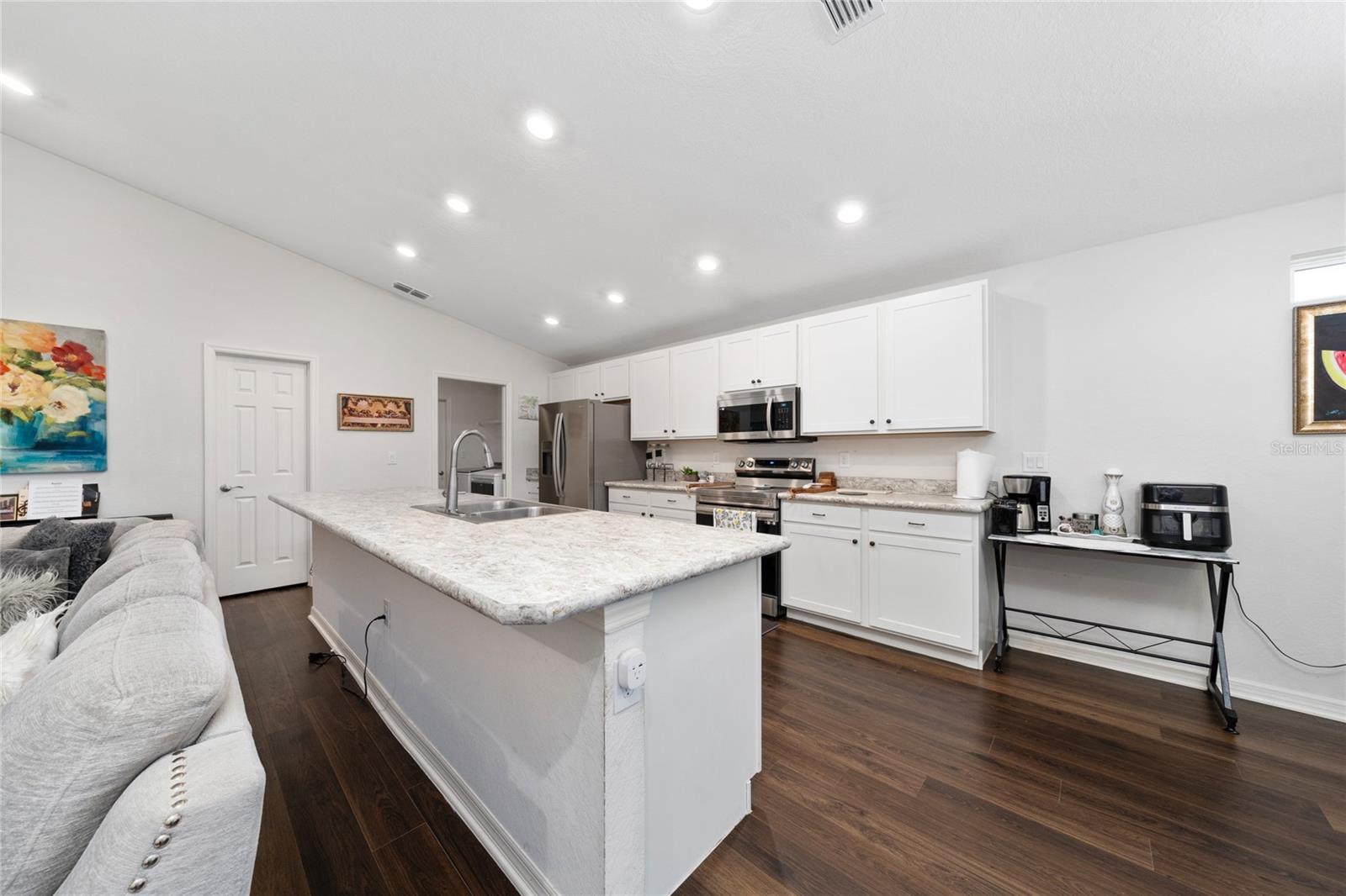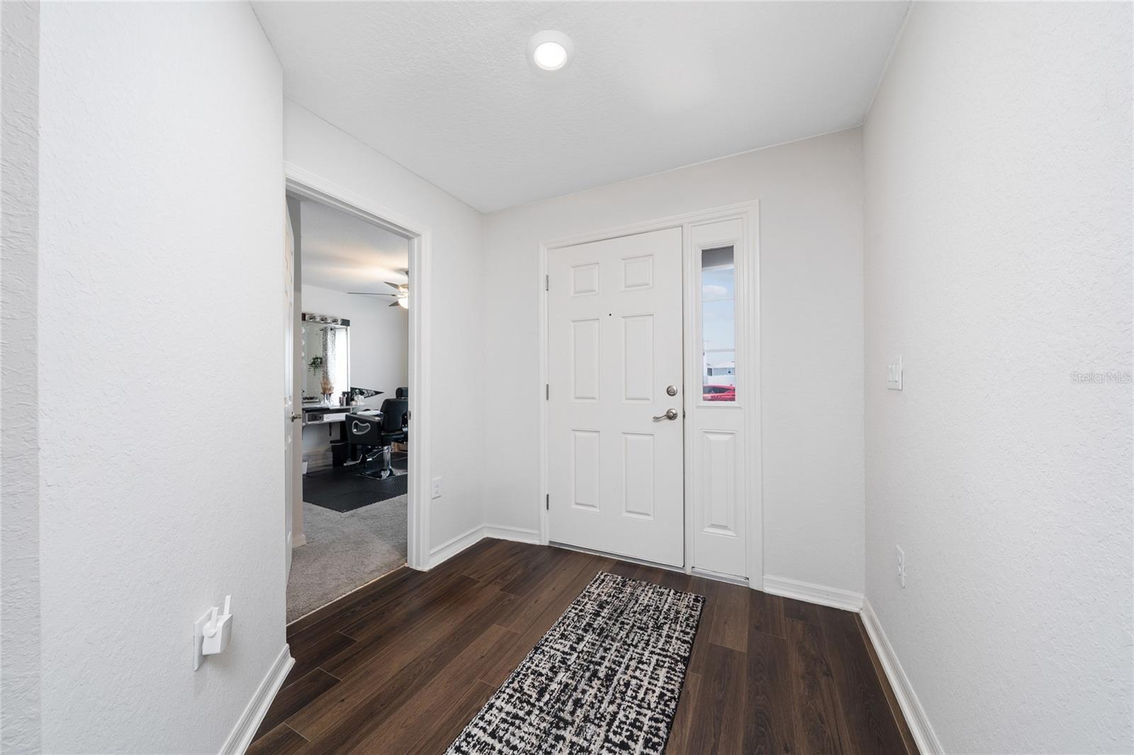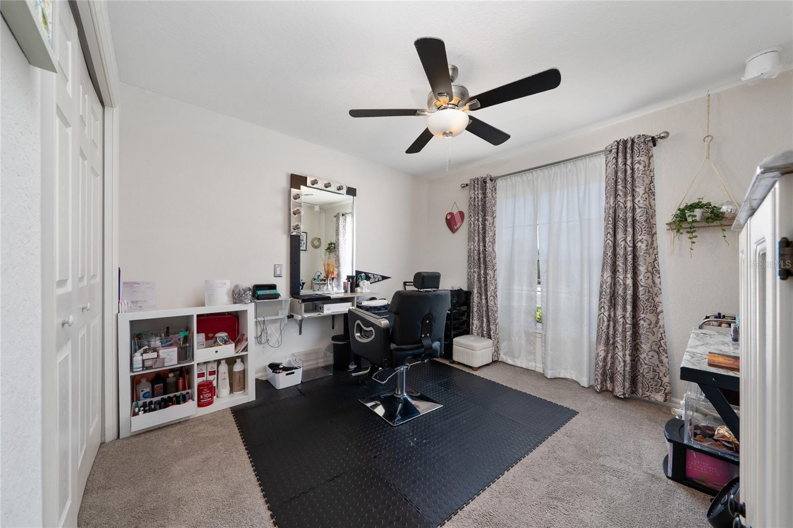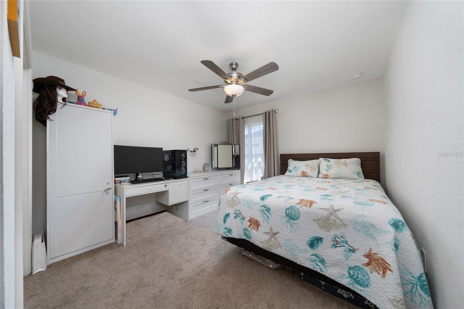 Move-in ready 4-bedroom, 2-bath home on an oversized premium lot! Built just 2 years ago, this home offers over 2,000 sq. ft. with an open floor plan and all bedrooms conveniently located on the main floor. The 4th bedroom can easily serve as a private home office, set apart from the Great Room for added quiet. The oversized screened back porch is perfect for relaxing or entertaining.The kitchen comes complete with all appliances, including refrigerator, dishwasher, washer, and dryer. Ceiling fans are installed in every room, and the spacious owner’s suite provides a comfortable retreat. Solid cement block construction adds lasting value and peace of mind.Located in a community with a pool, playground, and common areas, this home combines comfort, function, and lifestyle all in one.