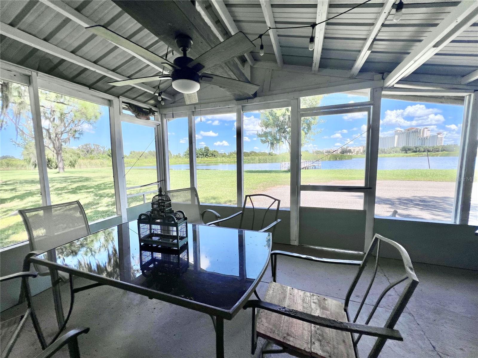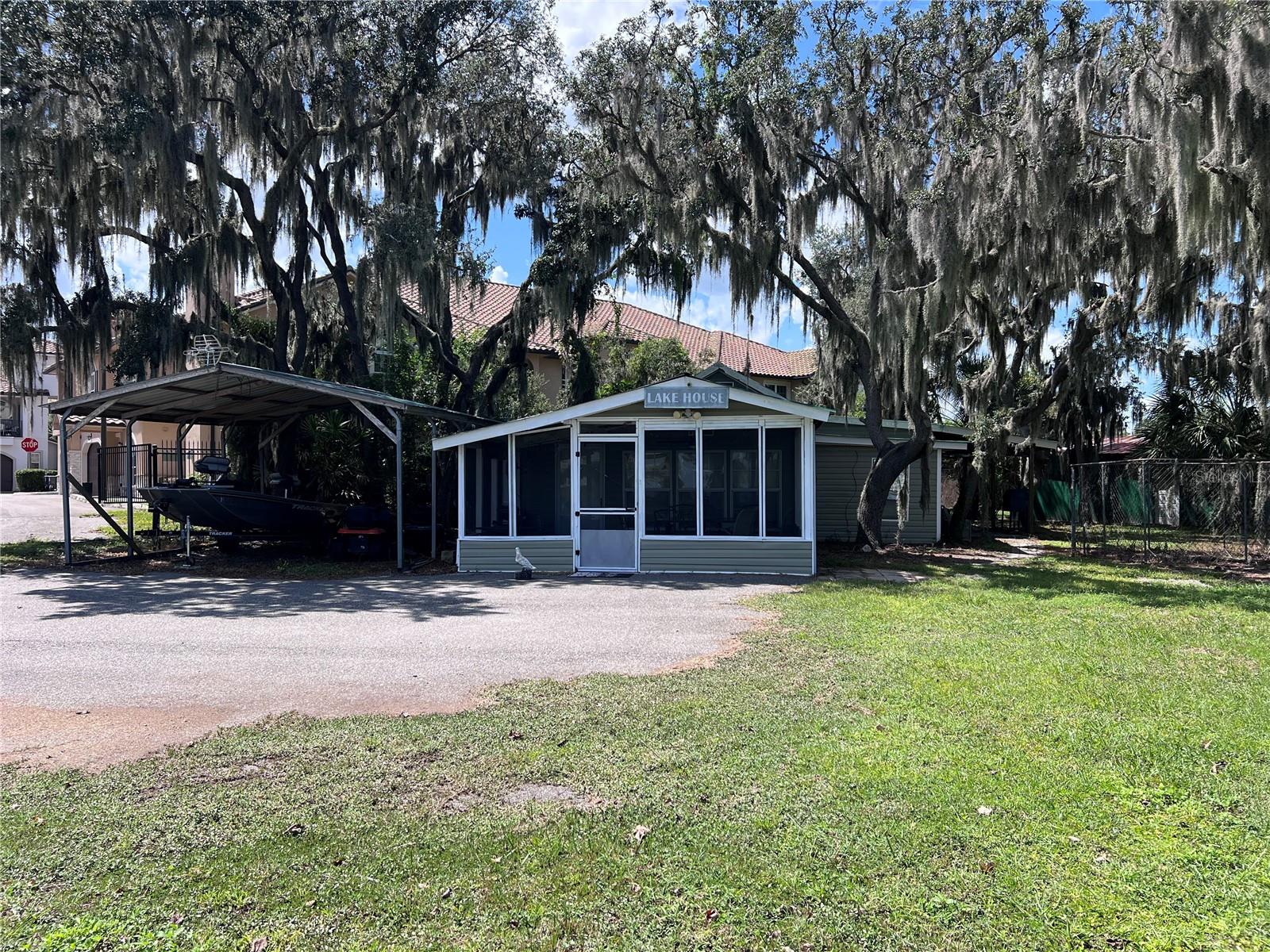 Cozy 2-bedroom, 2-bath lakefront cabin on a beautiful 1.46-acre lot in Davenport. This charming property offers endless potential perfect for buyers looking to add their personal touch or investors seeking a great opportunity. The cabin needs some TLC and is being sold as-is, making it ideal for renovation or a peaceful weekend retreat. Enjoy over 530 feet of shoreline with a private dock, gated highway access, no HOA fees, and great fishing with easy boat launching. Take in scenic golf course views and enjoy convenient access to I-4 and Hwy 27. Relax on the screened-in porch with your morning coffee, listening to the birds and feeling the refreshing lake breeze. Experience the tranquility of a large, private lot while still being just minutes from shopping, dining, and major highways.