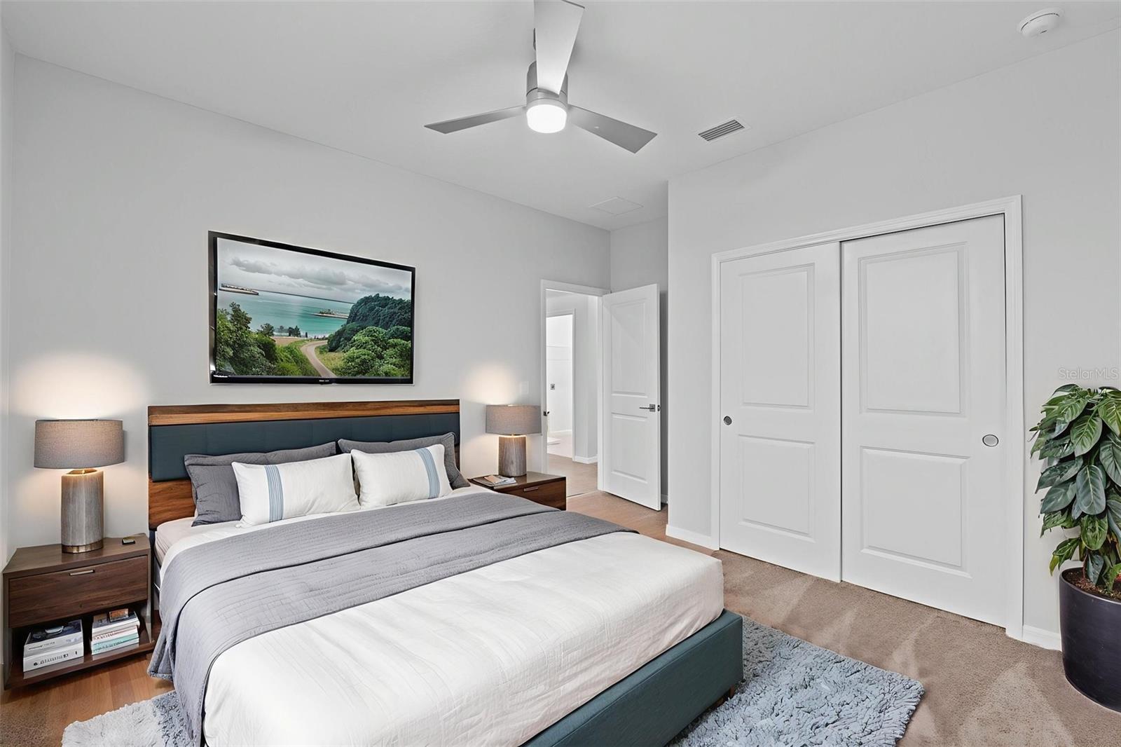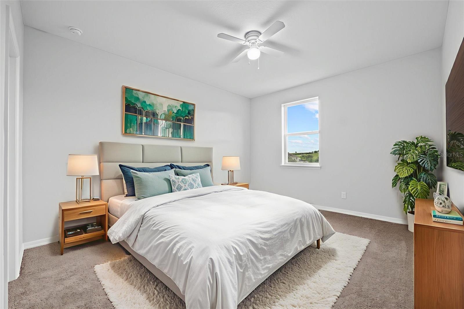 One or more photo(s) has been virtually staged. Spacious and modern 2-story home conveniently located near local shopping and restaurants. The interior has been freshly painted, and new carpeting has been installed. The roof will be replaced with new shingles prior to closing, pending HOA approval. This home features an open floor plan that is ideal for family gatherings and entertaining. The modern kitchen includes a large pantry, ample cabinet storage, and an open-concept layout perfect for hosting. A versatile bonus room on the first floor can be used as a 5th bedroom, office, or flex space. The large family room boasts ceramic tile flooring and sliding doors that lead to the covered patio. Upstairs, you’ll find 4 bedrooms and 2 full baths, including a spacious primary suite with new carpet and a large walk-in closet. The second floor also offers a laundry room and a loft area that provides additional living space. Don’t miss out—schedule your private showing today before this opportunity is gone! The home is being sold in AS IS condition.