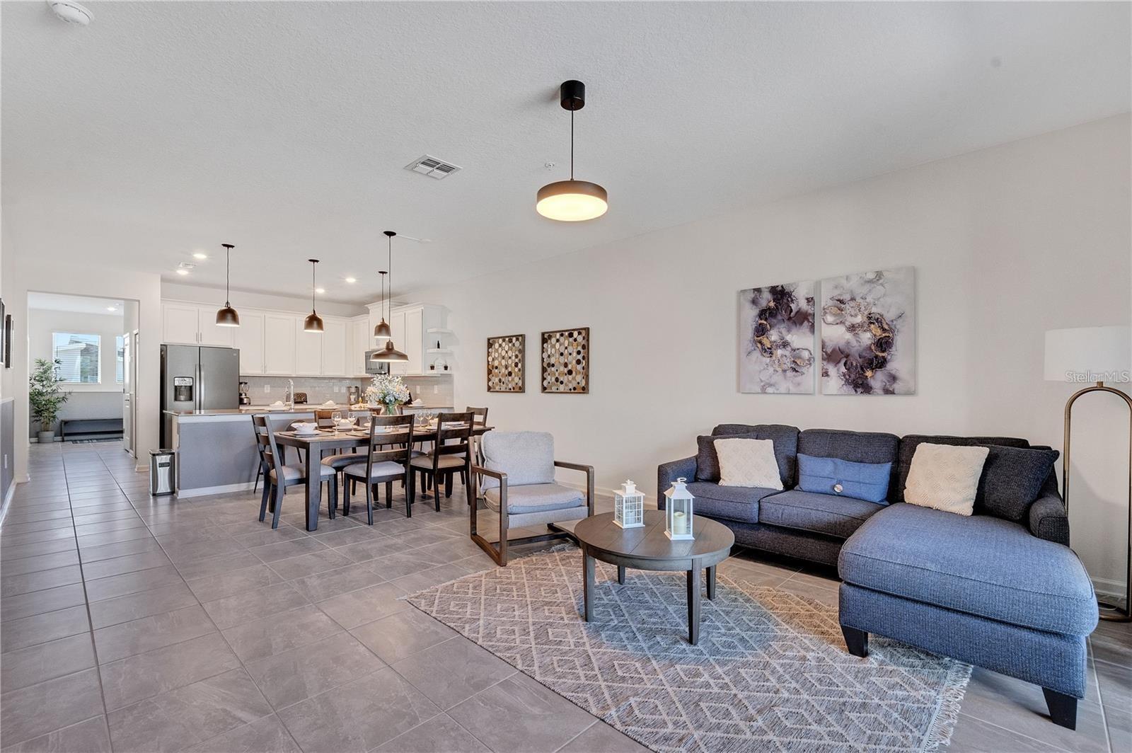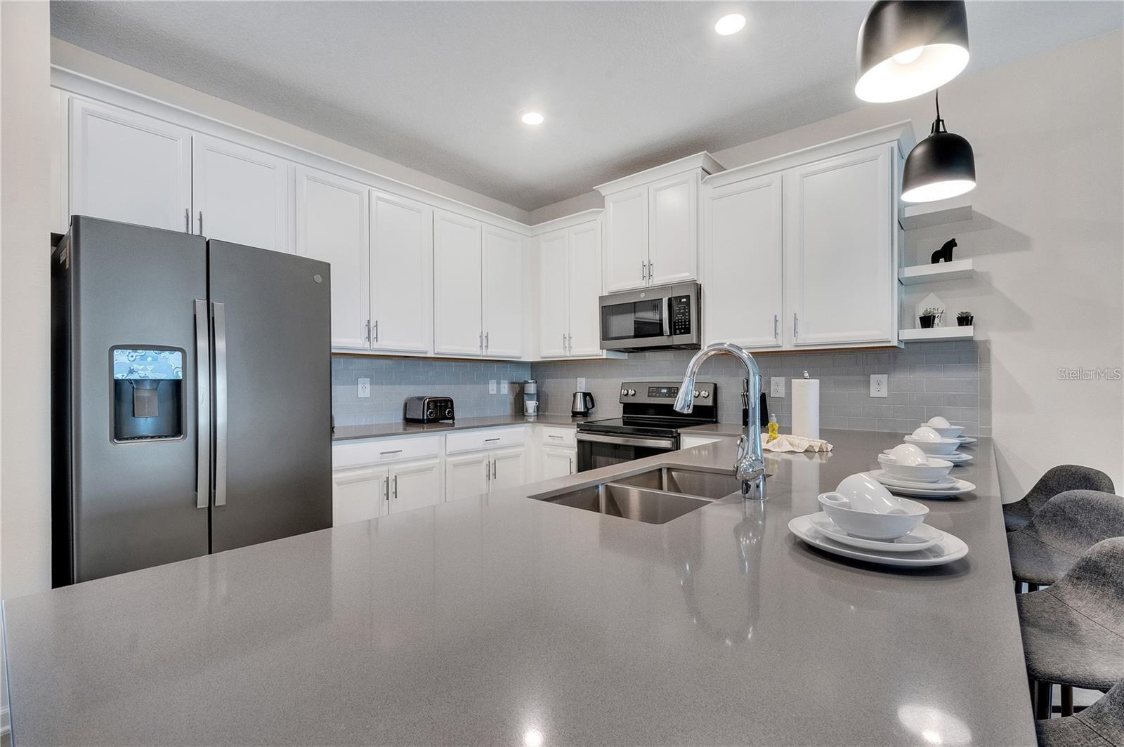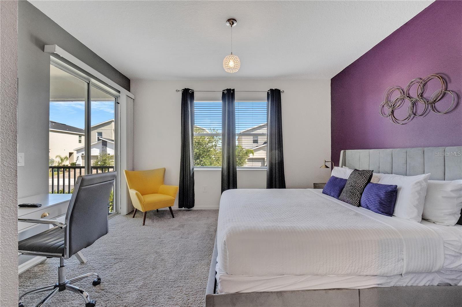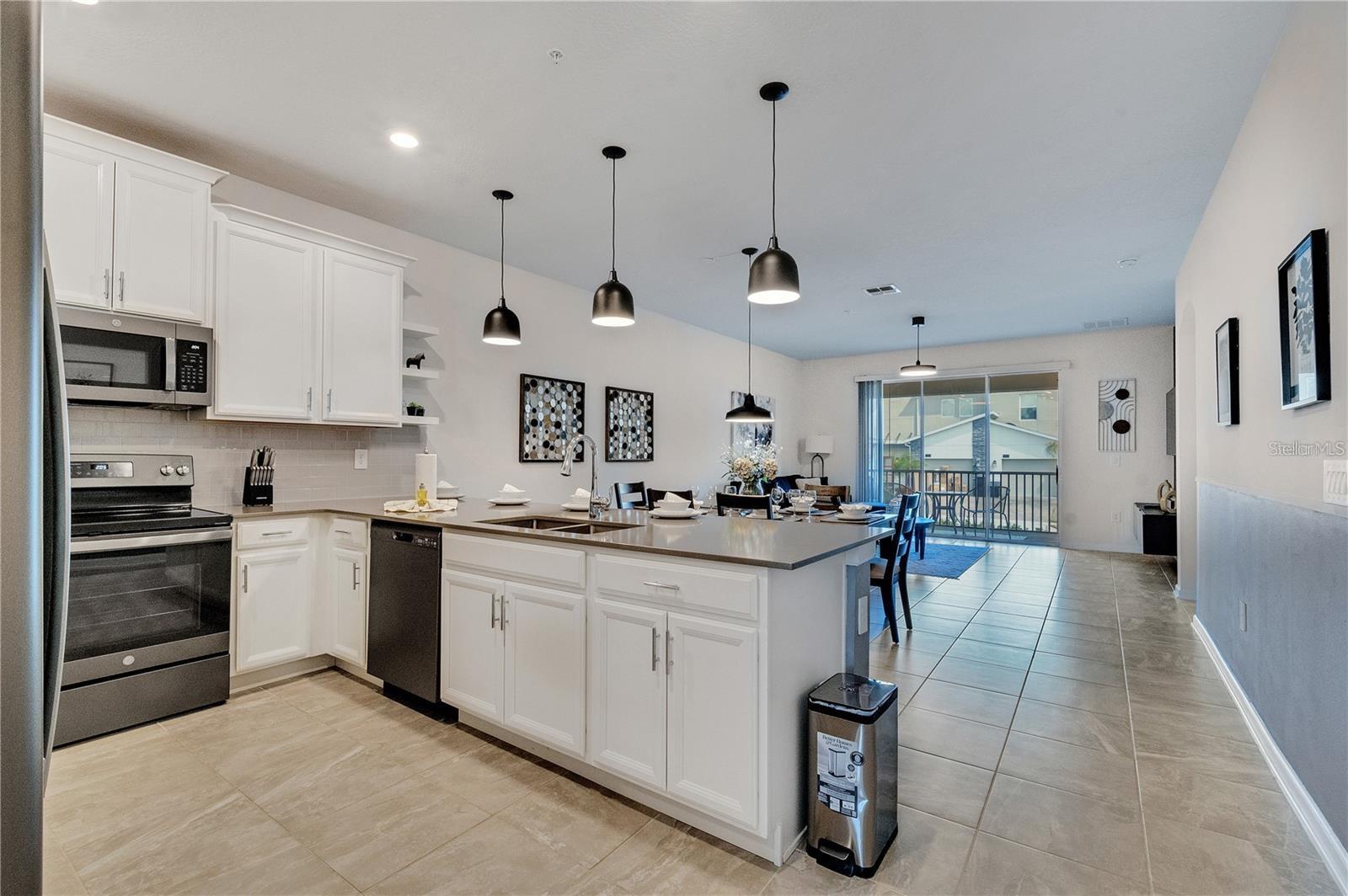 The sought-after Turnberry floor plan boasts a prime location with picturesque golf course views. This fully furnished, turnkey second-level condominium offers an exceptional opportunity for both steady rental income and unforgettable vacations with family and friends. Inside, you’ll find three spacious bedrooms, two bathrooms, and an open dining and family room that flows seamlessly to a screened-in balcony—perfect for relaxing or entertaining. The impressive owner’s suite, a well-appointed kitchen with 42” cabinetry and quartz countertops, and an attached one-car garage further enhance its appeal. Modern touches such as energy-efficient fixtures, window blinds, and a security system add comfort and convenience. Residents enjoy access to resort-style amenities, including a pool, spa, basketball court, fitness center, and concierge services. The renowned ChampionsGate Oasis Clubhouse & Waterpark elevates the lifestyle with a lazy river, water slides, swim-up bar, splash pad, spa, grill, fitness center, theater, games room, tiki bar, and private cabanas. Additional perks include seven tennis courts and all-inclusive HOA coverage of the amenities. Lovingly maintained by its current owner, this home is offered fully furnished and ready for immediate use—whether as a vacation retreat, secondary residence, or income-producing investment. Don’t miss the chance to own this exceptional property in ChampionsGate.