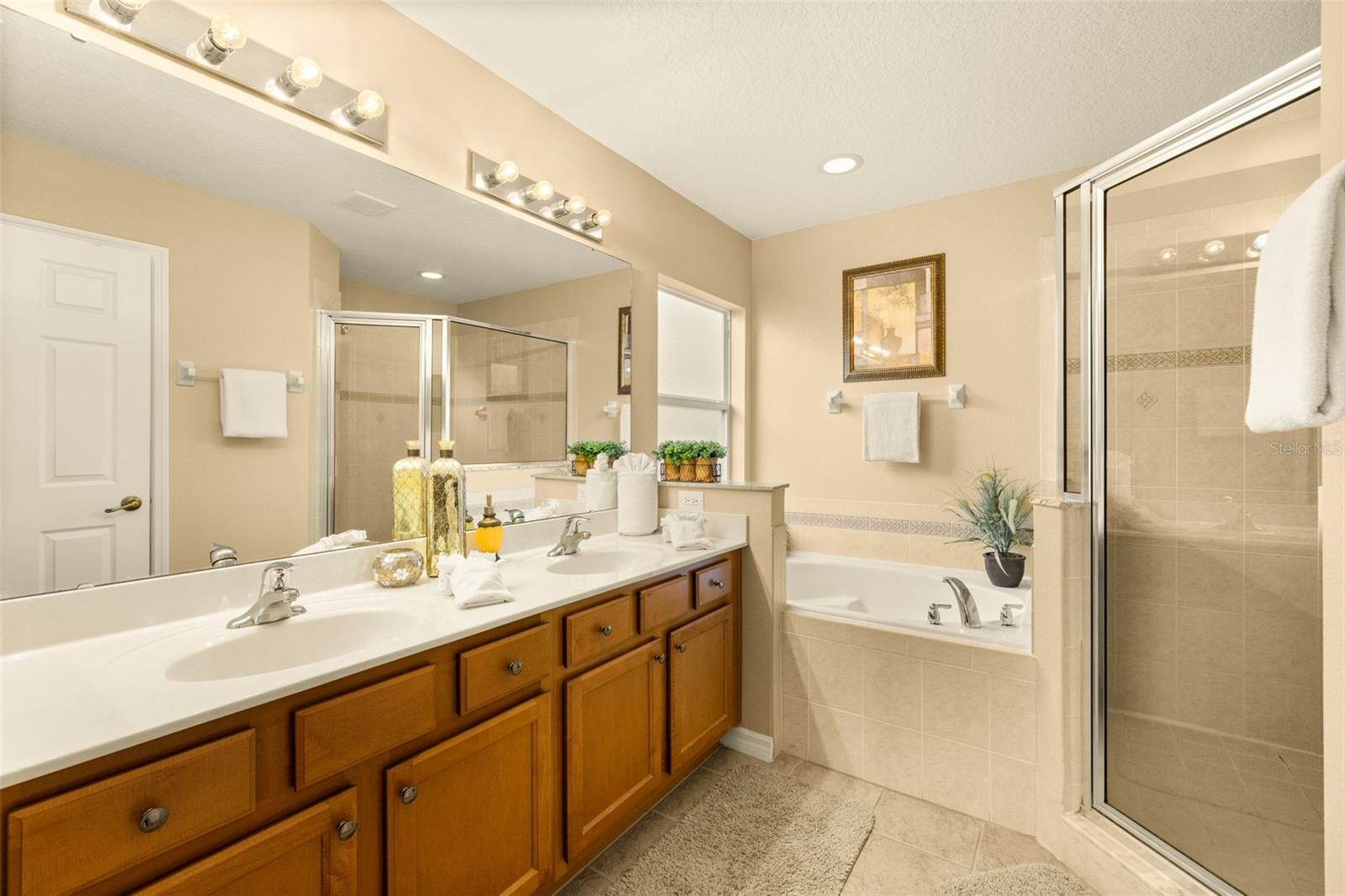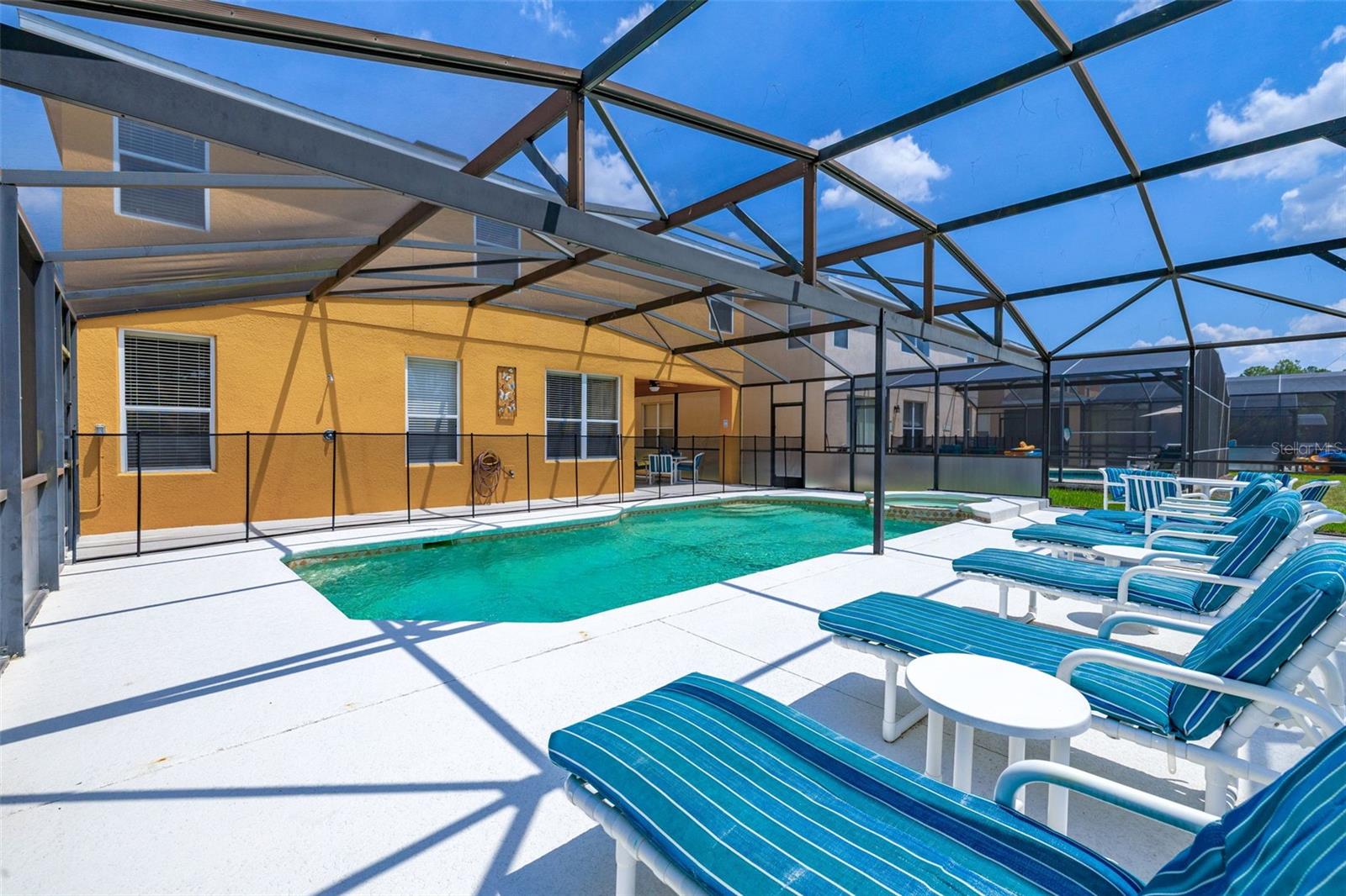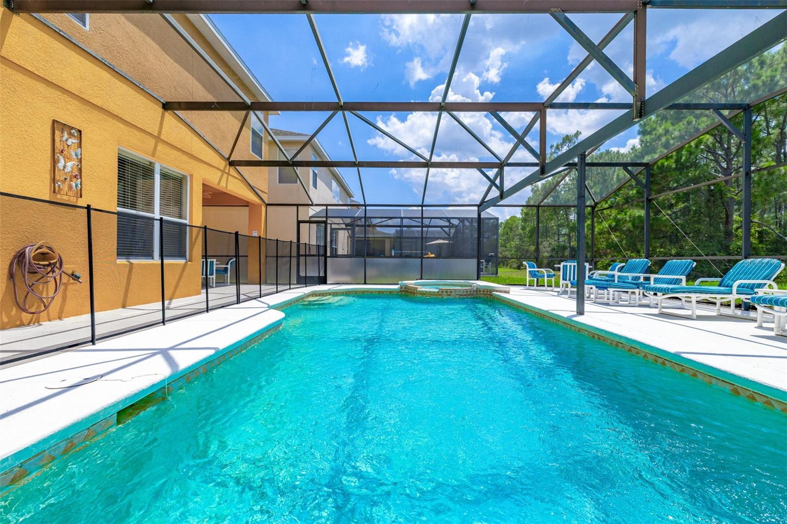 Beautifully Furnished, Turnkey 5-Bedroom, 4.5-Bathroom Home with an Impressively Extended, West-Facing Pool Deck — ideally situated in the desirable Watersong Resort, Davenport, FL! This beautifully maintained home truly stands out with its glorious extended pool deck, one of the largest in the community, offering an impressive ADDITIONAL 14 feet of outdoor living space beyond the pool —a rare feature. With its west facing orientation its perfect for soaking up the Florida sunshine, hosting family gatherings, or simply enjoying the extra room for alfresco dining, play equipment, potted plants, or even space for pets to roam—this spacious screened-in area makes outdoor living both versatile and inviting. From the moment you walk through the front door, you notice the soaring ceilings, open spaces, and elegant finishes create an immediate sense of comfort and sophistication. The main floor features a flowing, open layout with a welcoming living and dining area at the entrance, graceful archways leading to an eat-in kitchen, and a generous family room—all overlooking, and with sliding door access to, the sparkling 30ft x 15 ft private pool and in ground spa. The kitchen and bathrooms showcase SOLID WOOD CABINETRY adding timeless warmth and quality throughout. Upstairs, you’ll find five spacious bedrooms, including THREE WITH ENSUITE BATHROOMS—a huge advantage in the short-term rental market. This layout is ideal for multi-generational families or groups traveling together, offering everyone privacy while still enjoying the home’s shared areas. It’s one of the key reasons this property performs so well as a vacation rental. The home has been updated with FRESH EXTERIOR PAINT (2024), REFINISHED POOL DECK (2024), TWO NEW AC UNITS (2023 & 2024), NEW WATER HEATER (2024), UPDATED KITCHEN APPLIANCES, REPLACED WASHING MACHINE and REPLACED POOL PUMP (2023).It also features Nest smart thermostats and Ring cameras, providing modern convenience and peace of mind. A versatile two-car garage has been converted into a fun game room, adding even more rental appeal, while the separate laundry room and ample storage areas offer practicality for absentee owners or full-time residents alike. Nestled on a peaceful cul-de-sac within the manned, guard-gated community of Watersong, this home enjoys privacy and tranquility while still being part of a true resort setting. Watersong offers residents and guests access to a beautiful clubhouse, resort-style pool and hot tub, sand volleyball court, playground, and picnic areas. ** HOA INC WIFI, CABLE & LAWNCARE ** Located just a short drive from Disney and Orlando’s world-famous attractions, the home is zoned for short-term rental (Airbnb) or residential use, providing flexibility for both investors and families. With its exceptional build quality, rare 14-foot extended deck, and highly desirable floor plan, this property isn’t just a home—it’s a premium investment opportunity in the thriving Orlando vacation home market. Copy & paste link to enjoy a VR tour, come on in and make yourself at home (https://my.matterport.com/show/?m=WdHiXnZy3fG&brand=0&mls=1&)