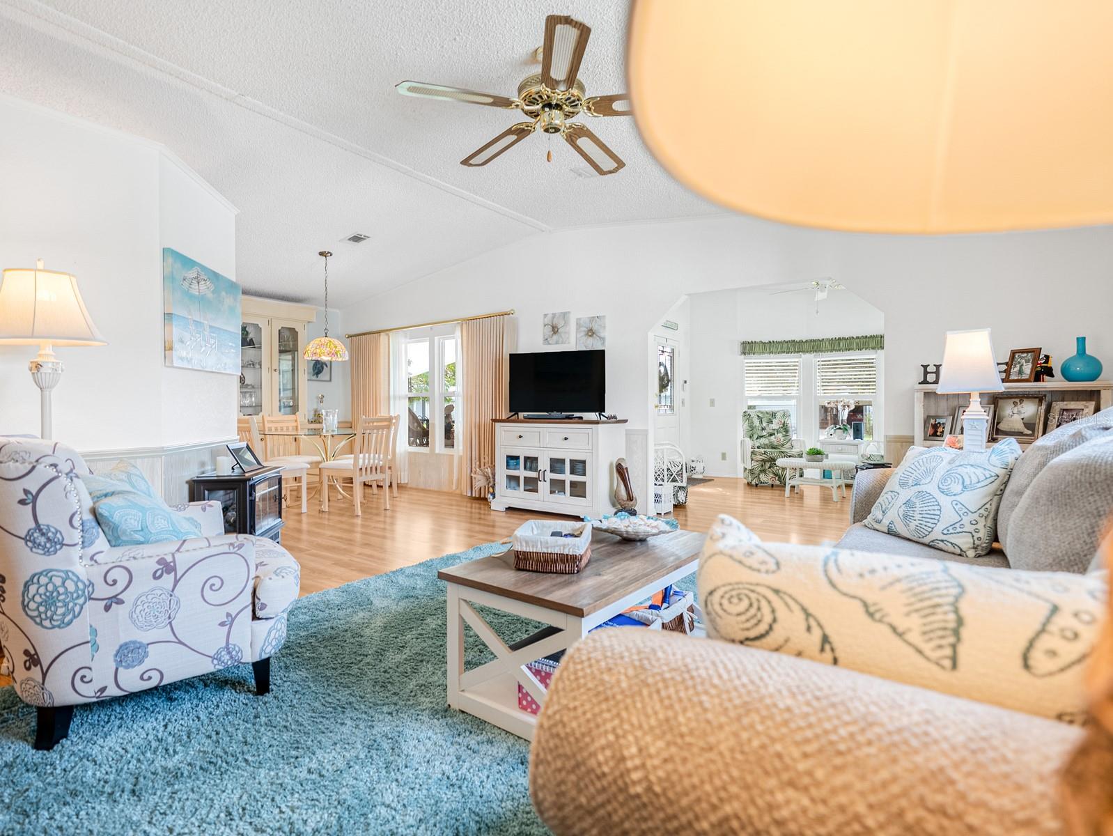 WELCOME TO YOUR PERFECT FLORIDA RETREAT IN POLO PARK, where you own the land! This beautifully maintained 2 bedroom, 2 bathroom home has so much to give. As you enter through the enclosed front porch, you'll find and additional room that's perfect for reading, relaxing or enjoying your morning coffee. Beyond that, the home opens into an spacious, light filled living area with an open layout and plenty of windows throughout. Recent updates provide peace of mind, including a New AC, Dishwasher, Bedrooms carpets, and Hot Water Tank, all replaced in 2024. This friendly 55+ golf community features two club houses, pools, fitness center and a variety of activities. All just a short drive from shopping, dining, and Orlando attractions. Furniture not included!