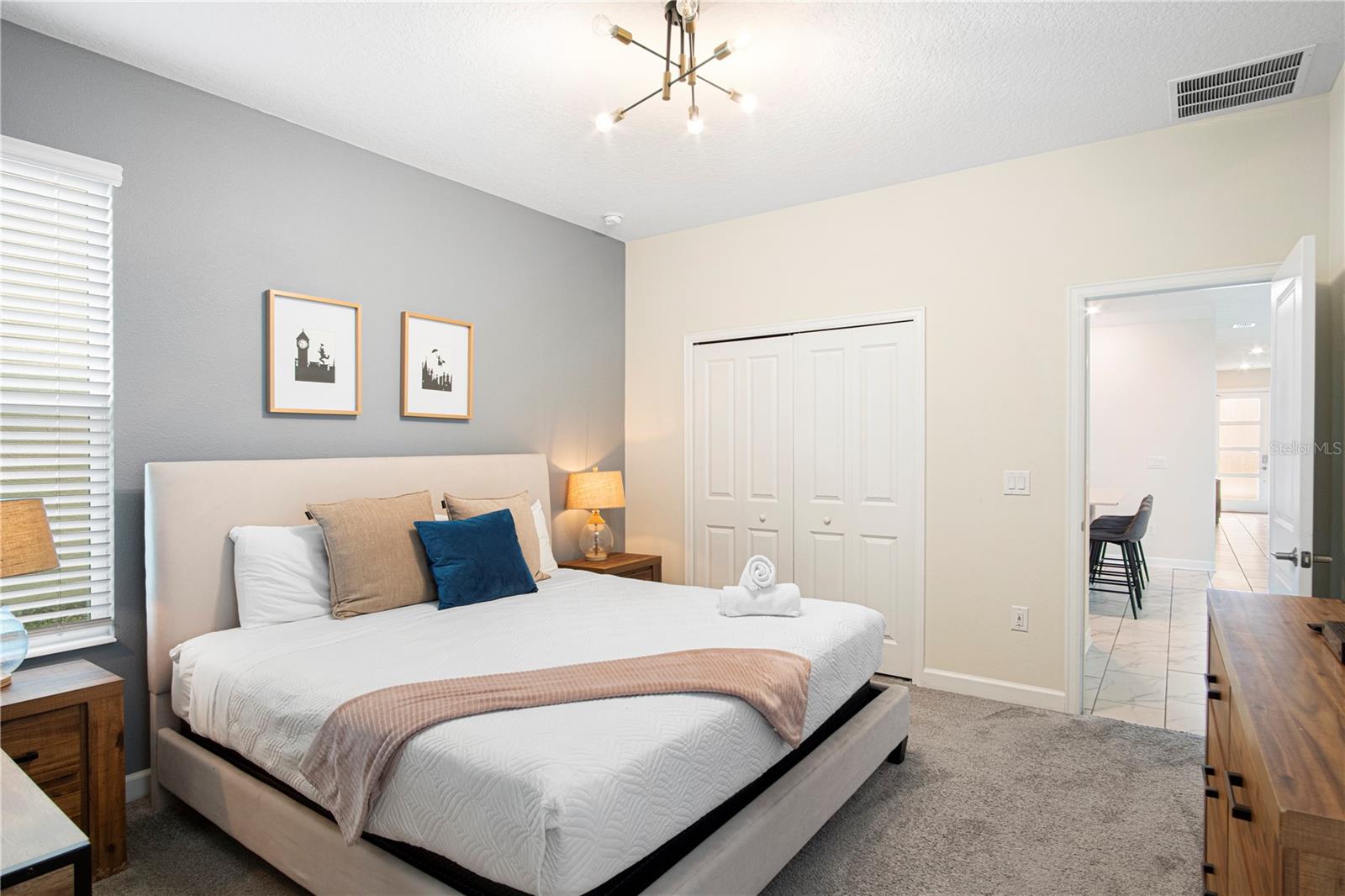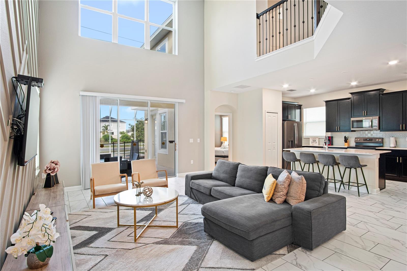 The Alexander Palm is a magnificent two-story home offering five bedrooms and five bathrooms. The spacious dining and family room flows seamlessly into the covered patio, perfect for entertaining. This home features two luxurious owner suites, a fully-equipped kitchen, and a convenient one-car garage. The upstairs loft adds extra space for relaxation or activities. FULLY FURNISHED. Built by Lennar, this home offers the affordability and value you expect, with Everything’s Included features: 42” wood cabinetry, quartz countertops in both the kitchen and bathrooms, slate appliances, and blinds throughout. Located in the highly sought-after ChampionsGate Resort Orlando, you’ll enjoy world-class amenities including the Oasis Clubhouse and Water Park, featuring a lazy river, water slides, swim-up bar, waterfalls, beach entry, spa, splash pad, fitness center, theater, game room, Tiki bar, and cabanas. Plus, seven tennis courts are available for your enjoyment—all included in the HOA! Enjoy luxury living in a community designed for relaxation and fun, all just a short distance from everything Orlando has to offer.