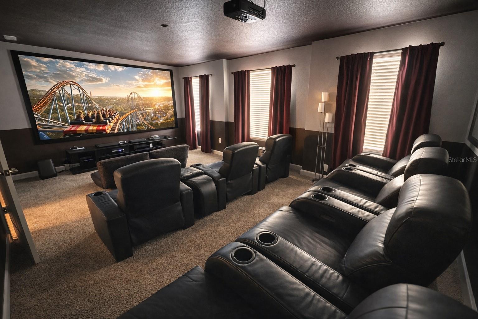 Situated within the ChampionsGate Resort, this fully furnished 8-bedroom, 5-bathroom property offers an exceptional blend of comfort, design, and resort-style living. The thoughtfully designed floor plan includes two bedrooms located on the first floor, including the primary ensuite, while six additional bedrooms are situated upstairs, providing privacy and flexibility for guests and extended stays. Designed for both relaxation and entertaining, the home features a game room conveniently located downstairs and a private cinema room upstairs, creating dedicated entertainment spaces on each level. The interior showcases modern cabinetry in the kitchen along with quartz countertops throughout the kitchen and bathrooms, complementing the home’s upscale finishes. Themed bedrooms add a distinctive and immersive design element, enhancing the overall appeal of the home. Step outside to a private pool and spa, providing a tranquil outdoor retreat ideal for unwinding or hosting guests. The property is offered fully furnished, allowing for a seamless turnkey ownership experience. Guests enjoy access to the renowned ChampionsGate Resort amenities, which include a resort-style clubhouse with a lazy river, water slides, fitness center, on-site cinema room, restaurant, mini golf, and a variety of additional recreational features. Conveniently located near major highways, world-class attractions, shopping, and dining, this home presents an outstanding opportunity for vacation use or investment ownership in one of Central Florida’s premier resort communities. Schedule your visit today.