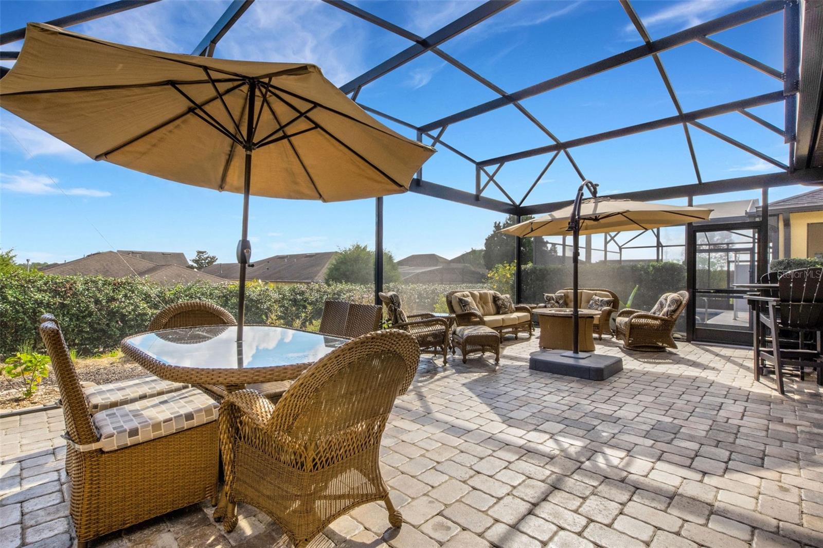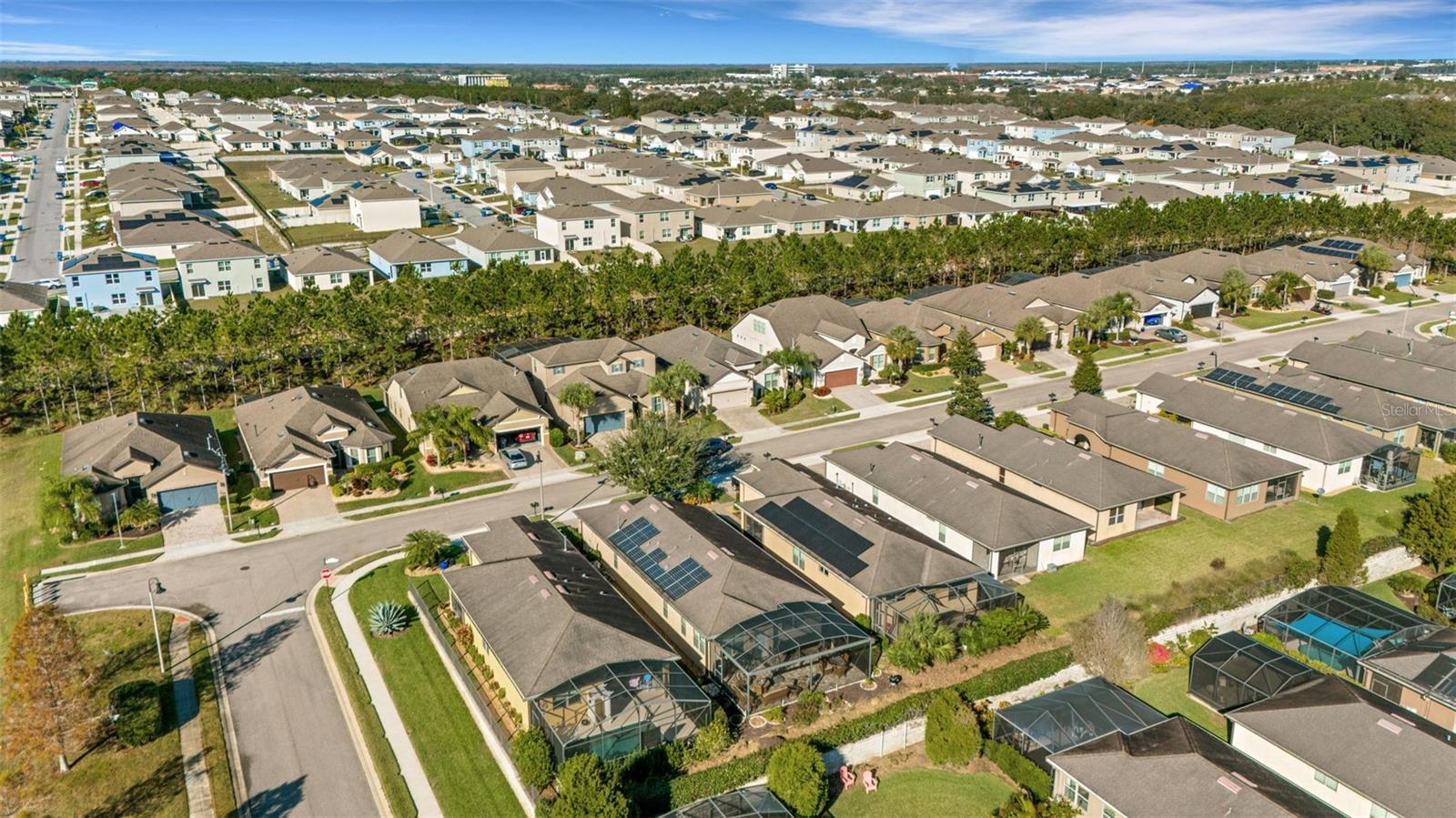 Located in the desirable 55+ community of Del Webb Orlando this beautiful Taft Street floor plan has 2 bedrooms, 2 bathrooms, a den and a sunroom and located just a short walk from the community clubhouse and amenities. Enter this home through the screened front porch and into the comfortable great room. The adjacent kitchen features a large island, granite countertops, upgraded cabinets with pull-outs and backsplash. The primary bedroom is located in the rear of the home for privacy. The primary bathroom suite which has two sinks, and tiled walk-in shower. A large walk-in closet in included the primary suite. The laundry room is conveniently located adjacent to the primary bedroom. The guest bedroom and guest bathroom are located near the front of the home for privacy. Prior to exiting the home onto the lanai is a cozy sunroom perfect bonus space for a hobby room, music room or a great space for relaxing. The large screened lanai is the showcase of the backyard and the elevation offers great privacy. The garage features epoxy floors, overhead storage racks, and and stairs/ladder for attic access. Additional upgrades include leased solar for affordable electric bills and updated lighting. The $425 semi-annual HOA fee provides 24x7 staffed security gate and master association-owned private road maintenance. Adjacent to recently renovated 18-hole White Heron Golf Club. The $282 monthly Del Webb HOA fee includes exclusive access to resident-owned 30,000+ SF Montecito clubhouse and amenities. DEL WEBB ORLANDO is a 55+ community with a tavern, indoor walking track, fitness center, indoor and outdoor pools and spas with locker rooms and showers, billiards, ping pong, craft room, and a ballroom for special events. Outdoor activities include pickleball, tennis, bocce, basketball, shuffleboard, community gardening center, an outdoor amphitheater, large brick fire pit and large screened-in gazebo over the water. Miles of biking and walking trails within Ridgewood Lakes gated community. Located conveniently to shopping at Posner Park (4 miles), Disney World, Universal Studios, Orlando & Central FL entertainment nearby. Easy access to I-4, medical facilities, airports & Sunrail Station. Advent Health hospital is 3 miles away.