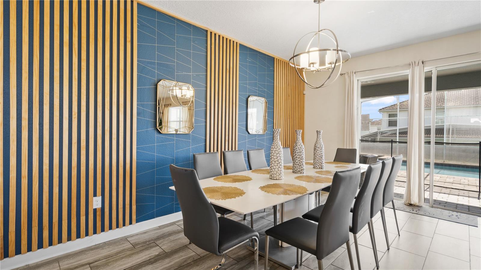 SELLER SAYS SELL!. This is an 8 bedroom with 5 bathrooms fully furnished pool and spa home with an extended pool deck. This home is excellent for short term rental.(Bookings can convey) Large open Kitchen with Granite Counter Tops, Stainless Steel Appliances. Two bedrooms on the first floor, one is the main master and the other is a bedroom with a connect bathroom. Main living area in on the first floor. All appliances come with the home including the washer and dryer (property has connection for two dryers). Champions gate is a 24 hour man gated community with a large free water park for your family and your guests to enjoy. The water park has a lazy river, slide, splash pad for the little ones, 16,000 S/F clubhouse with indoor and outdoor dining, movie theater, full gym / fitness center, spa center and much more. Includes a large pool area next to the outdoor tiki bar. The clubhouse also offers air conditioned cabanas as well. Perfect home and resort for short term rentals. Coming soon is the second clubhouse of the resort which is sure to amaze guests even more.