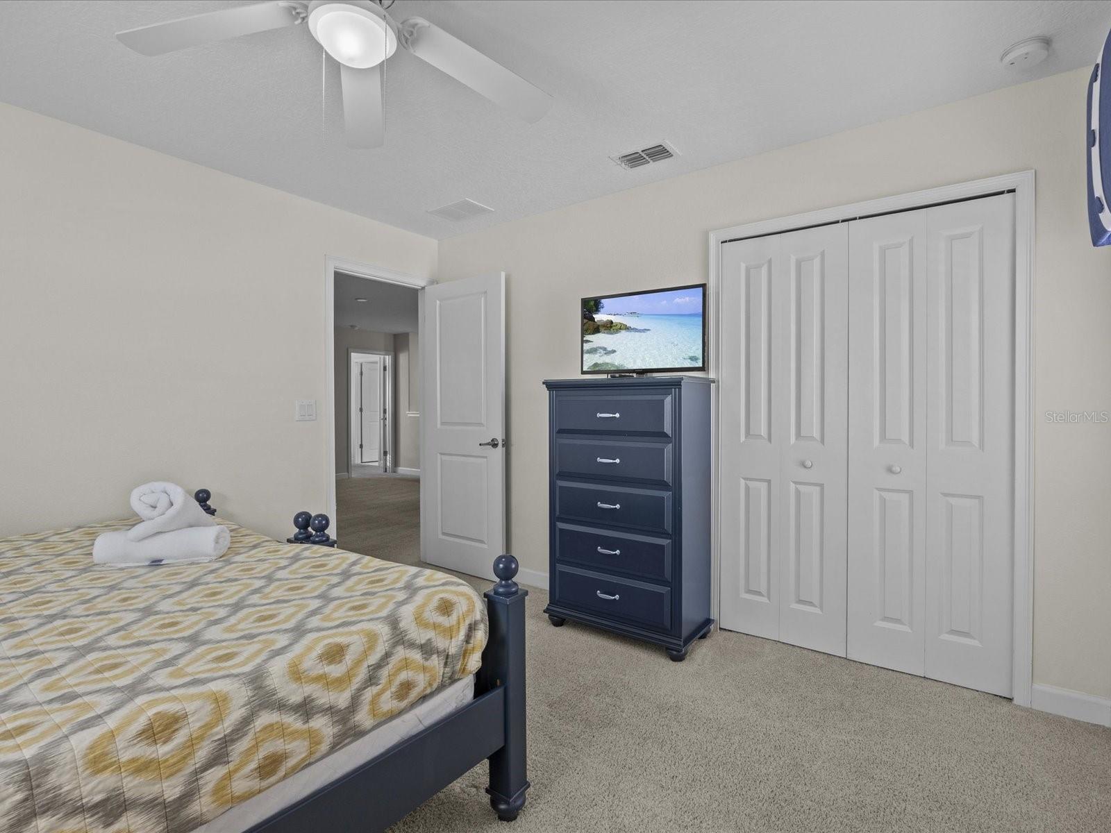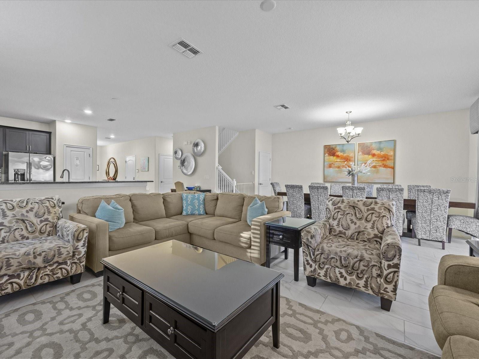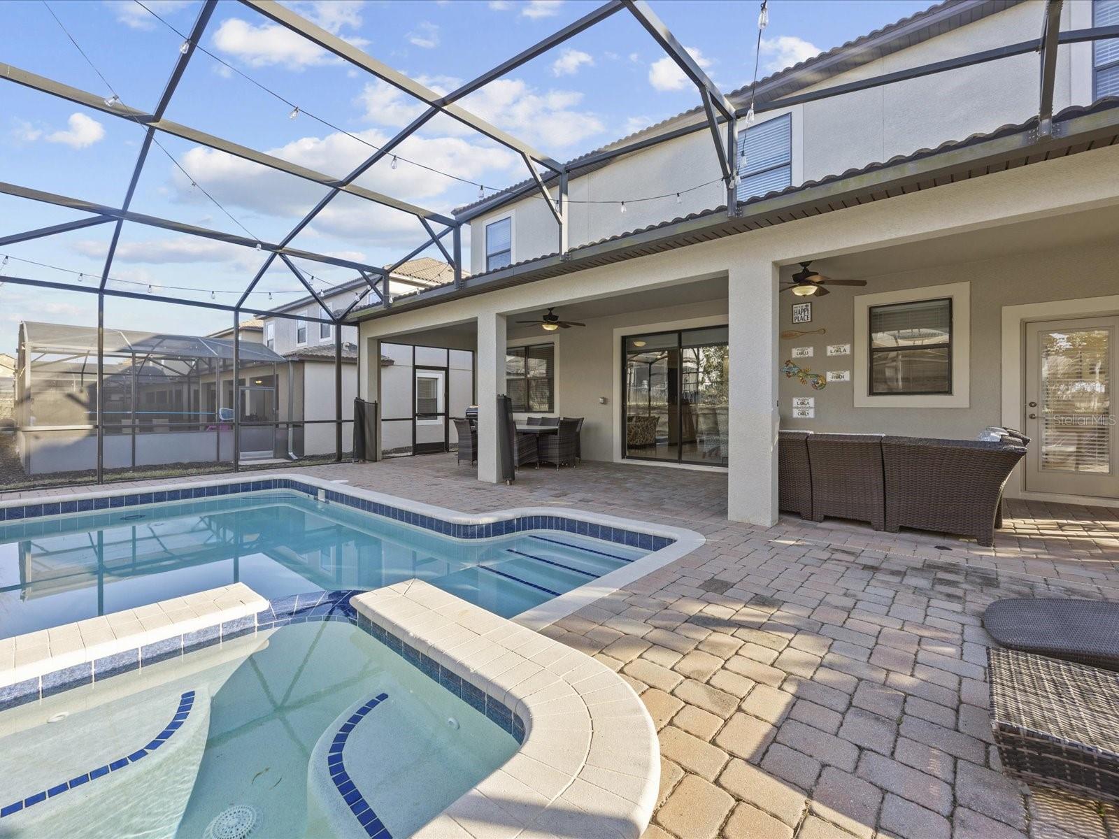 Welcome to this fully furnished 8-bedroom, 5-bath luxury vacation home, perfectly designed for unforgettable memories and exceptional investment potential. Situated on a premium south-facing corner lot, this home features a private pool and hot tub, ideal for enjoying Florida sunshine year-round. The thoughtfully designed floor plan offers a primary suite and guest bedroom on the main level, with additional tastefully decorated guest rooms upstairs. The open-concept living area provides ample space for dining, gathering, and entertaining. Onsite amenities include a private movie theater, game room, and more—perfect for hosting family and guests. Just steps away, enjoy access to the Oasis Club, featuring a resort-style pool, lazy river with water slide, fully equipped fitness center, arcade, movie theater, poolside dining, and countless recreational options. Located 20 minutes from Walt Disney World in the highly desirable gated community Champions Gate, this home offers endless entertainment and convenience. Whether for personal enjoyment or as a short-term rental opportunity, this exceptional property checks every box. Champions Gate is a fantastic guarded and gated community that has 18 hole golf course & 'Oasis' Resort Center which offers water park style relaxation. Buyers and Agents are advised to verify all information obtained within. Information is deemed accurate but not guaranteed. Ask your Realtor to show you this property today!