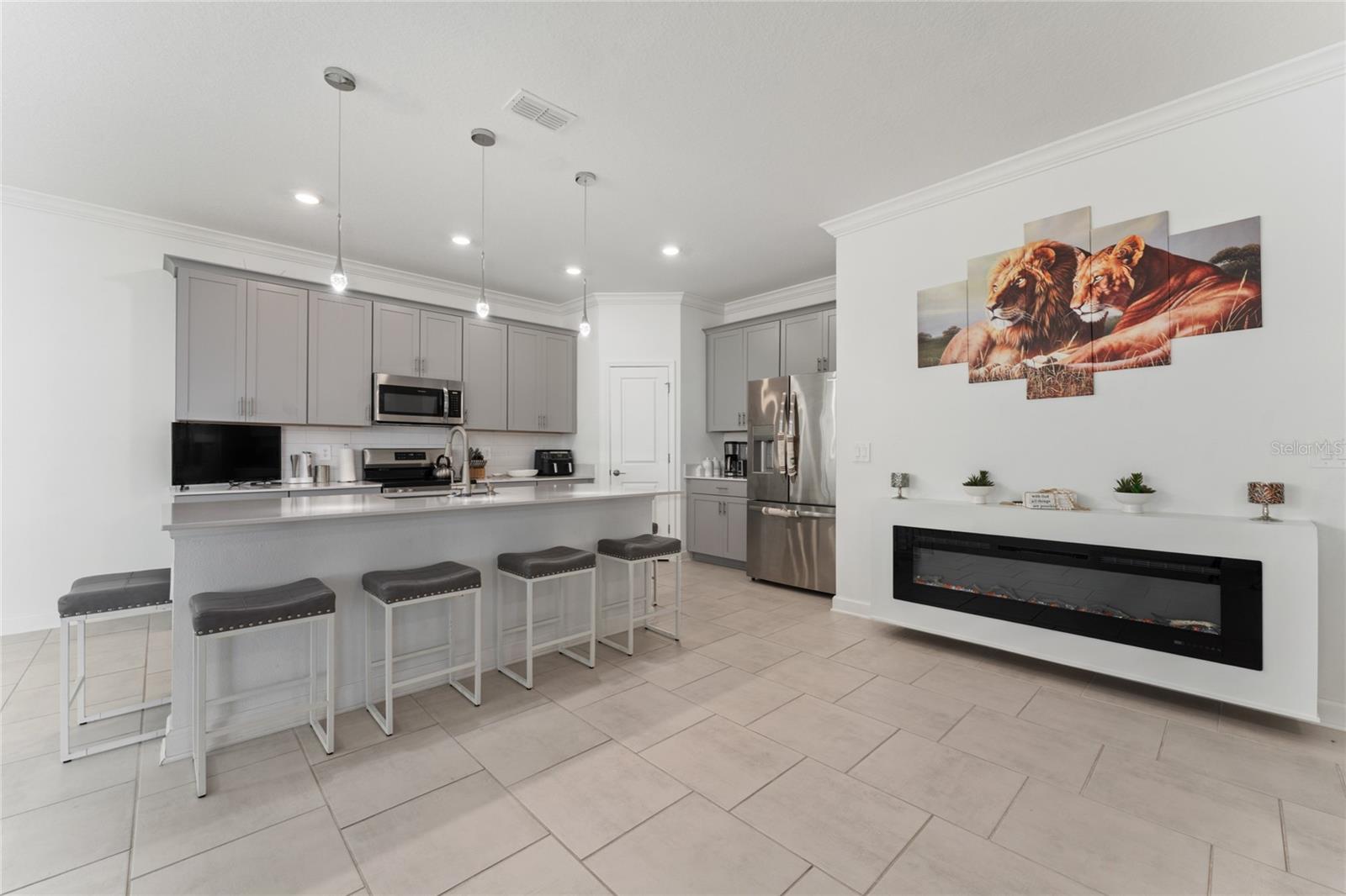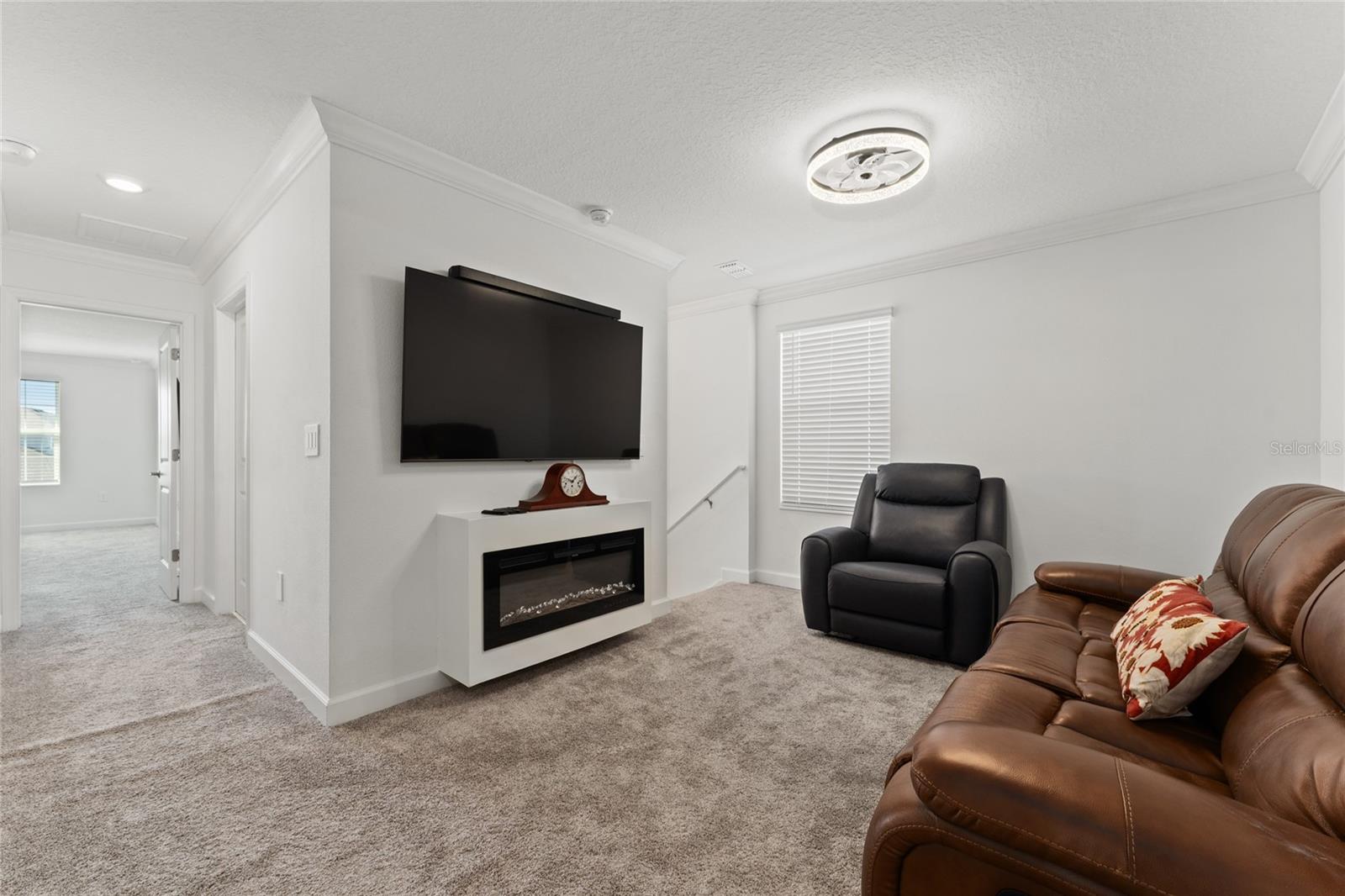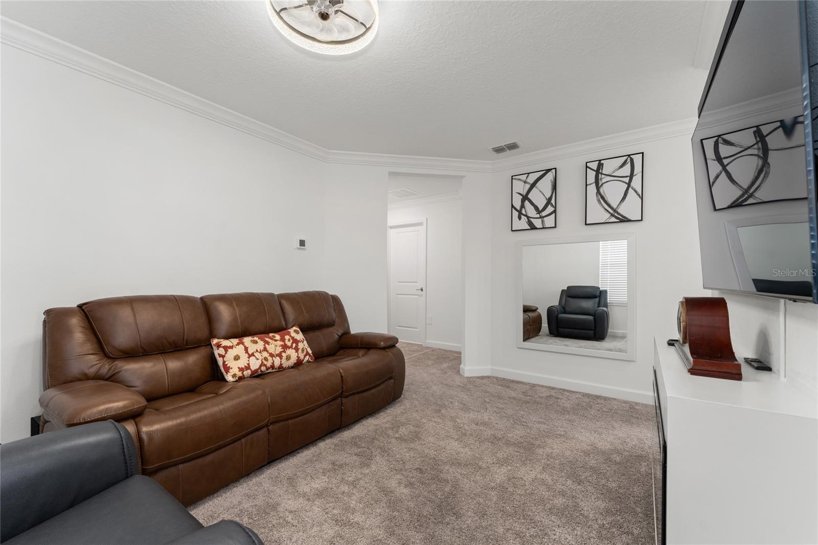 Beautiful two-story home featuring a modern open-concept layout designed for comfortable everyday living and entertaining. The main level offers a spacious family room that flows seamlessly into the kitchen and dining area, with direct access to a covered patio perfect for indoor-outdoor living. The kitchen showcases contemporary cabinetry, quality countertops, and ample workspace. Upstairs you’ll find a versatile loft area surrounded by secondary bedrooms, along with a private and generously sized primary suite with a spa-style bathroom. Additional upgrades include a full gutter system and a whole-house water filtration system, offering enhanced protection, efficiency, and premium water quality throughout the home. The home also includes a two-car garage and energy-efficient construction features. Located inside a 24-hour guard-gated golf community, residents enjoy resort-style amenities including a fitness center, tennis courts, swimming pool, walking trails, dog park, clubhouse, pro shop, and on-site restaurant. The championship golf course and beautifully maintained grounds create a true lifestyle community atmosphere. Conveniently situated near major highways, shopping, dining, and Central Florida attractions.