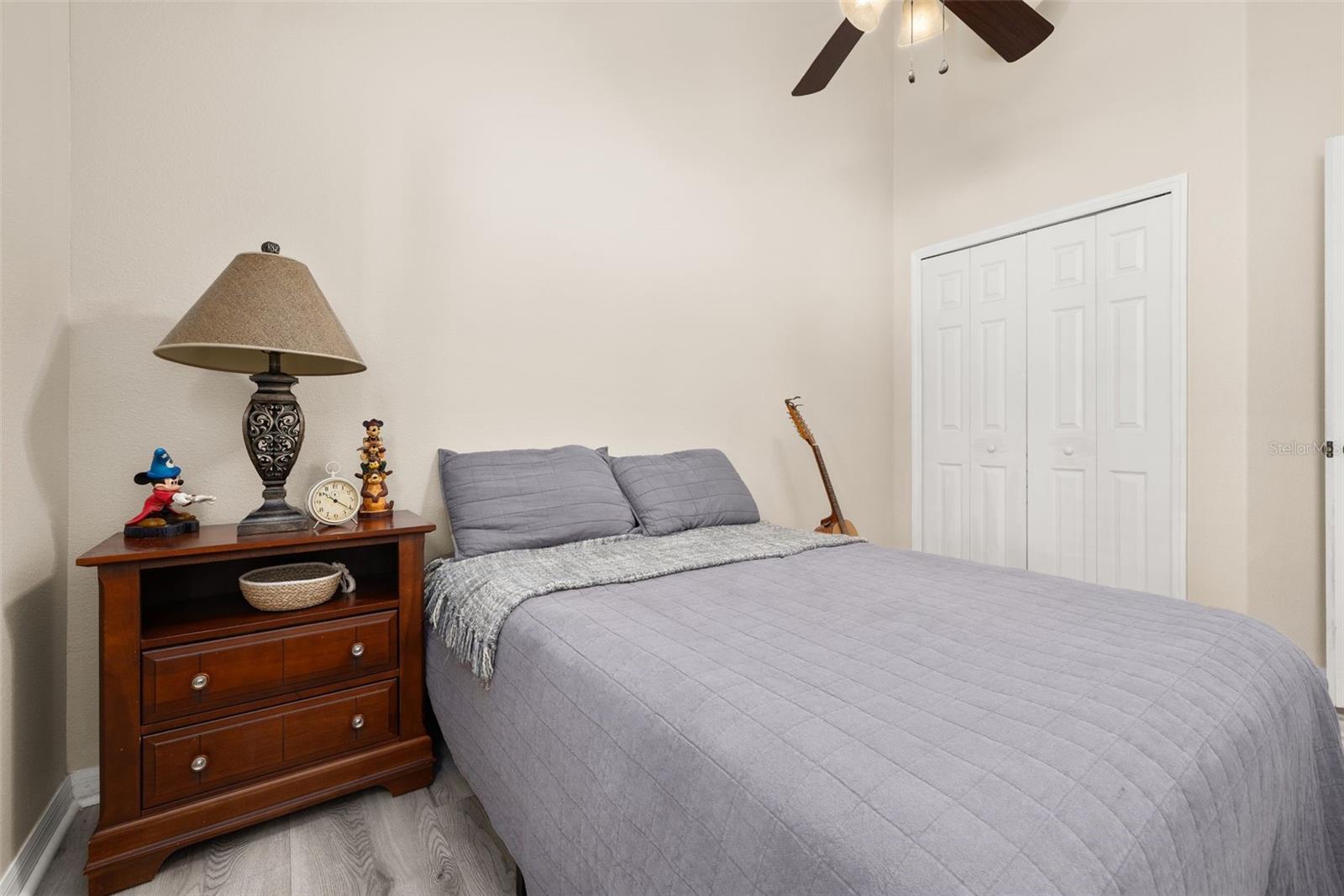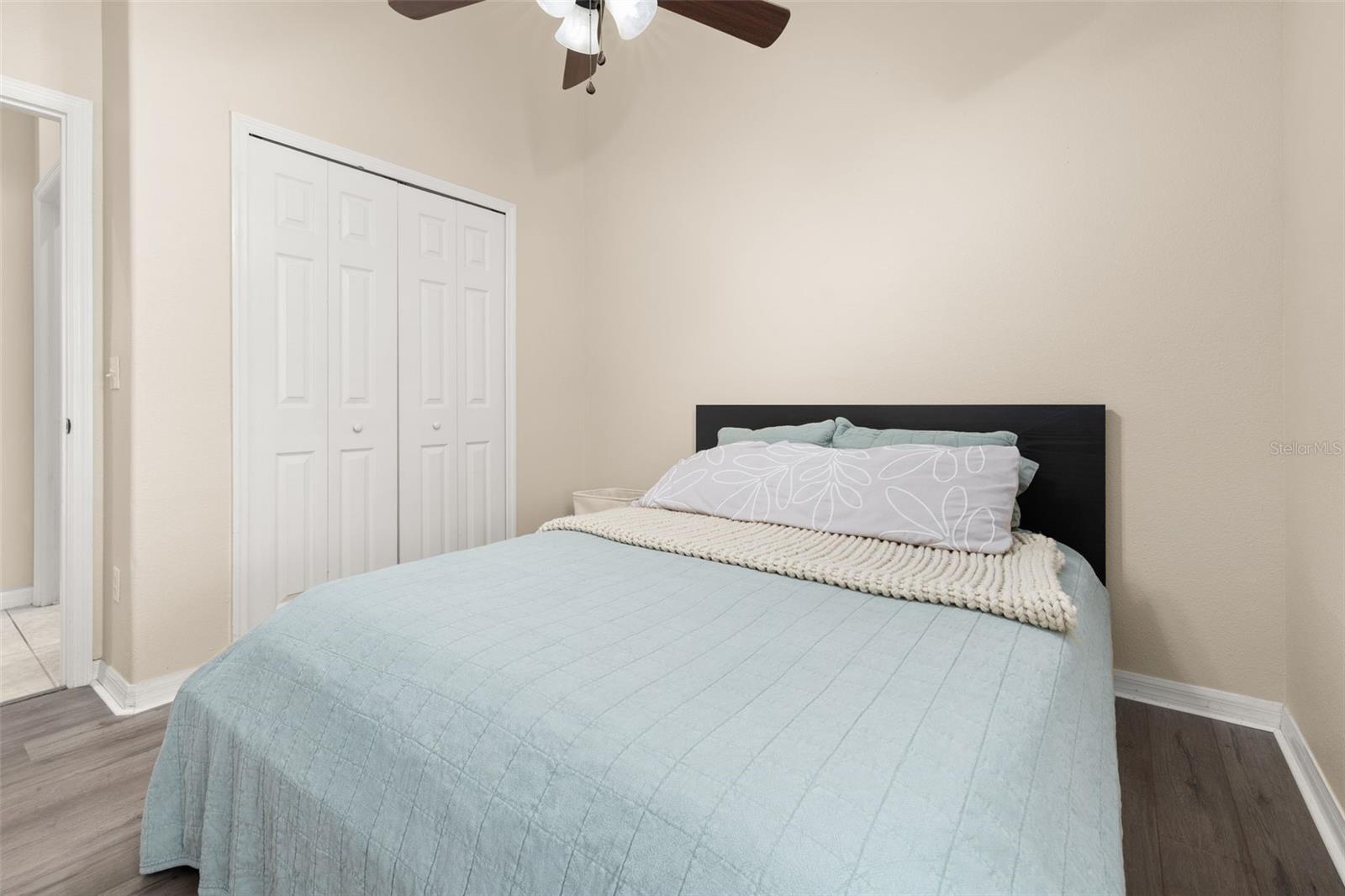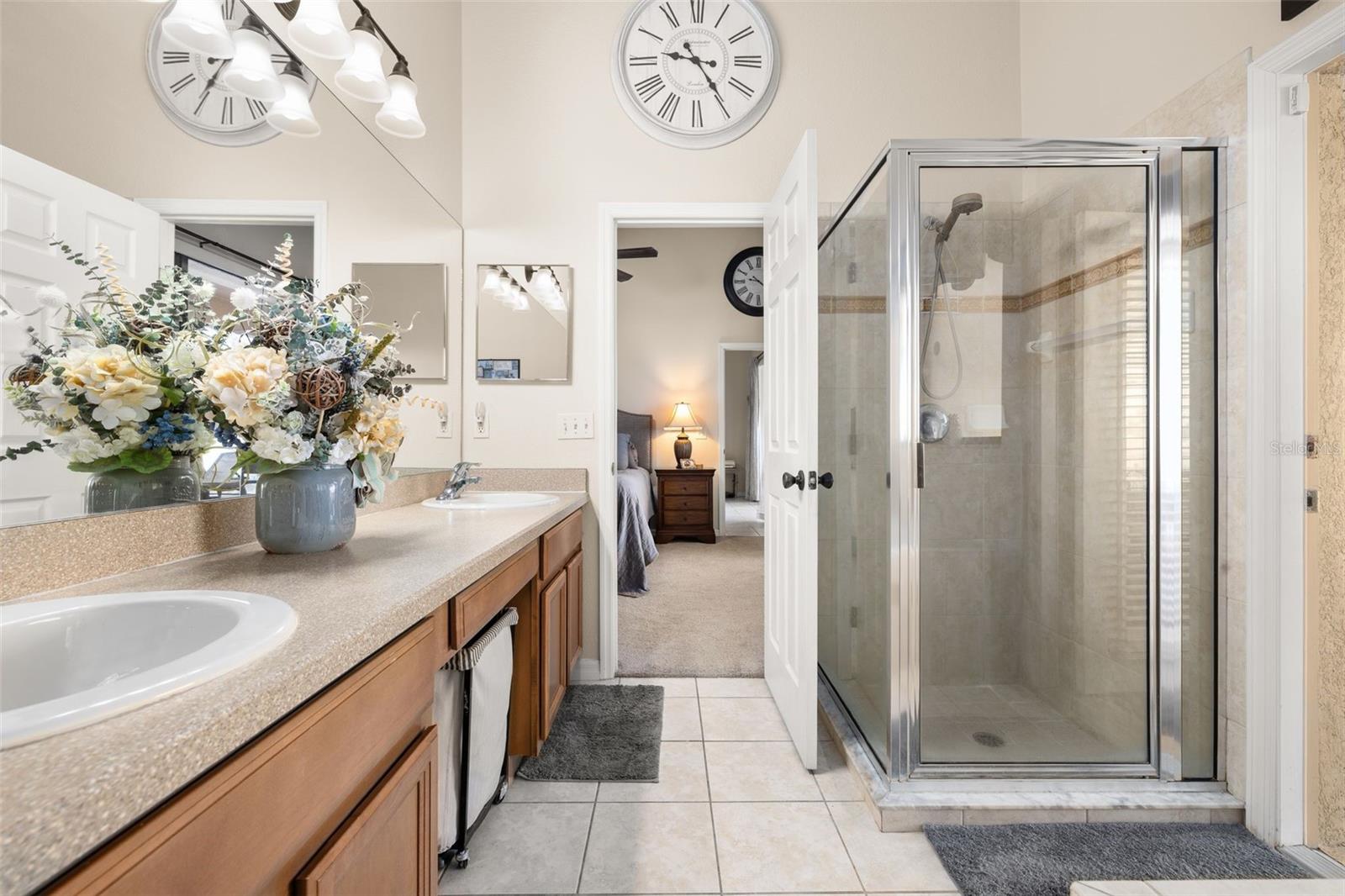 Welcome to this beautifully maintained single-family home, with 4 bedrooms and 3 bathrooms nestled in one of Polk County's most sought-after gated communities - Bridgeford Crossing. Perfectly positioned just minutes from Central Florida's world-renowned theme parks, top-rated schools, shopping, dining, and major roadways, this home is an exceptional opportunity whether you are searching for a primary residence, vacation retreat, or a rental investment. From the moment you arrive, soaring ceilings, elegant tile flooring, and a wrought-iron pendant chandelier set the tone for the warmth and style found throughout. An arched architectural niche anchors the foyer alongside a decorative mosaic tile inlay at the entry, creating a charming and memorable first impression. The open-concept family room flows seamlessly into the kitchen and dining area, bathed in warm light with a ceiling fan overhead and sliding glass doors that open to the outdoor oasis — with a privacy fence in the rear yard and stunning sunset views from the heated pool and spa. A separate formal living space offers additional flexibility with vaulted ceilings. The kitchen is the heart of the home, boasting warm honey-toned raised-panel cabinetry, light countertops, and stainless-steel appliances including a French door refrigerator, recessed lighting, and an island with bar seating to complete this inviting space. The adjacent dining area easily accommodates the whole family for weeknight meals and weekend gatherings alike. The primary suite offers a true private retreat, complete with an en-suite bathroom featuring a tiled corner tub, a separate glass-door walk-in shower with tile surround, warm wood vanity cabinetry, a private water closet, a door leading to the pool area and a spacious walk-in closet and sliding doors that lead to the outdoor covered lanai. Three additional bedrooms provide excellent versatility for families of all sizes — one currently used as a music studio retreat, showcasing just how adaptable the floor plan can be. The other two bedrooms feature wood-toned flooring, and each room throughout includes a ceiling fan, closet, and window treatments. Two full secondary bathrooms serve these bedrooms, both featuring wood vanity cabinetry, updated lighting, and tile floors. A dedicated laundry room rounds out the interior with storage cabinetry, decorative lighting, and tile flooring. The low HOA fee covers basic cable, internet, and lawn care — plus no CDD fees — while residents enjoy resort-style amenities including a clubhouse, community pool, fitness center, tennis courts, game room, movie theater, and sauna. BRAND NEW ROOF will be completed prior to closing!!! The community also allows short-term rentals, making this an outstanding investment opportunity. Conveniently located near White Heron public Golf Course, Lake Eva Community Park, Posner Park shopping, and with easy access to Hwy 27 and I-4, you are just 30 minutes from Disney World, and all that Central Florida has to offer. Schedule your private showing today!