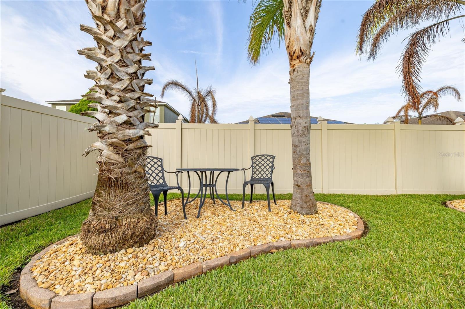Welcome to 1817 Sereno Drive — a beautifully maintained home offering space, style, and energy-efficient living in a gated community. From the moment you step inside, you’re greeted by a light-filled Open Split Floor plan with expansive living and dining areas, NO CARPET, perfect for both everyday living and entertaining. The seamless flow into the kitchen creates a true heart-of-the-home experience, complemented by Ceramic Tile Flooring and Luxury Vinyl Plank Floors, for easy maintenance and a modern, cohesive feel. The Stunning Updated Kitchen features crisp White Shaker Style Cabinetry with SOFT CLOSE draws and doors, ROLL-OUT Shelving for added convenience, Ample and Sleek GRANITE Countertops and Island, and Stainless Steel Appliances. The Sky lights are a perfect touch to the living area and with the Spacious Island overlooks the living area and back yard, making it ideal for hosting or casual dining. The primary suite offers a Comfortable Spacious Retreat with Updated Finishes including a Soft Close Cabinetry with a Double Vanity, Fresh Stand Up Shower with Rain Shower Head, 2 WALK-IN Closets. The additional bedrooms provide flexibility and privacy for guests, family, or a home office. The secondary bathroom has also been tastefully updated and features a full bathtub—ideal for those who prefer or require a tub. Step outside and enjoy Florida living at its best with both front and rear screened-in lanais, perfect for relaxing year-round. The fully fenced backyard is beautifully maintained, offering privacy and space to unwind, garden, or entertain under the palms whilst relaxing with in Lanai. This home is packed with valuable upgrades, including: Repainted inside and out, Fully paid-off solar panels, Hybrid hot water heater 2023 Whole-home water filtration system, Enhanced attic insulation, Solar attic fan and solar lighting. Located in the gated community of Sereno, residents enjoy access to a community pool and playground, all just minutes from ChampionsGate, shopping, dining, golf, and world-renowned attractions. This is a move-in ready home that combines efficiency, comfort, and location — all it needs is YOU!