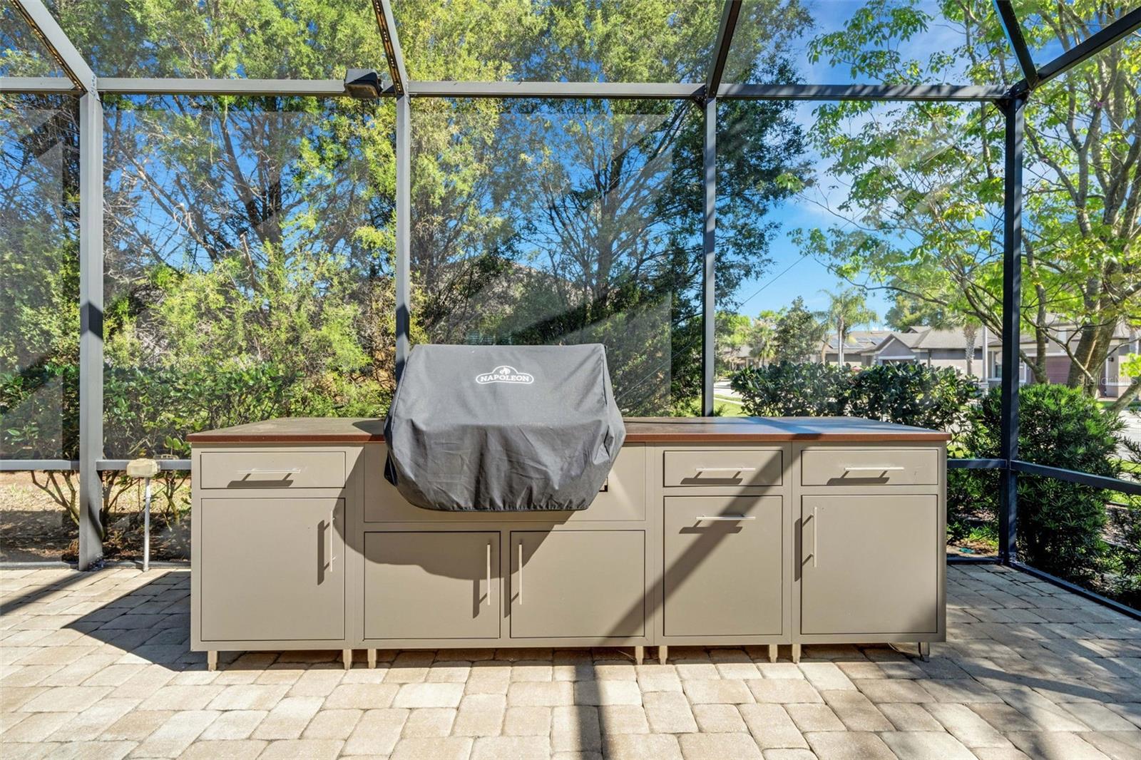Welcome to Del Webb Orlando, a beautiful 55+ resort-style community located inside the guard gates of Ridgewood Lakes. This home conveniently located on a corner lot walking distance from the Clubhouse and amenities is the popular Vernon Hill floor plan with 3 bedrooms, 2 bathrooms, plus a den/office. Plenty of room for guests without giving up your den. This open floor plan includes the great room with a floor outlet and surround sound system. The adjacent kitchen includes quartz countertops, stainless steel appliances, cabinetry with roped crown molding and above and below cabinet lighting, a tumbled marble backsplash, single basin sink with touch kitchen faucet with pull-down sprayer. The kitchen is extended to include an entertainment area with additional cabinetry with glass doors, a wine cooler, a wine rack with stem glass holder and accent lighting. The primary bedroom is located in the rear of the home along with the primary bathroom which includes a large shower with double shower head, two sinks with new quartz countertops, and a large walk-in closet. There are two guest bedrooms in the front of the home, together with the guest bathroom which also has been updated with new quartz countertops. The laundry room located off the kitchen is equipped with a sink, cabinets and a wall-mounded ironing board and drying rod. Additional interior upgrades include crown molding in the living areas, large baseboards, rounded drywall corners, plantation shutters in the bedroom and office, and dimmer switches on most lights. The 20' x 40' screened lanai has been upgraded with LED accent lighting, extra electrical outlets, a 9' kitchen with gas grill, ceiling fan, wired for speakers, and extensive landscaping for privacy. The 4' extended garage includes an insulated garage door, additional 110V receptacles, and extra storage shelving. Additional exterior upgrades include widened driveway and walkway, retractable front screen door, and remote garage keypad. Best of all this home comes with OWNED SOLAR PANELS for a greatly reduced electric bill. The $425 semi-annual HOA fee provides 24x7 staffed security gate and master association-owned private road maintenance. Adjacent to recently renovated 18-hole White Heron Golf Club. The $282 monthly Del Webb HOA fee includes exclusive access to resident-owned 30,000+ SF Montecito clubhouse and amenities. DEL WEBB ORLANDO is a 55+ community with a tavern, indoor walking track, fitness center, indoor and outdoor pools and spas with locker rooms and showers, billiards, ping pong, craft room, and a ballroom for special events. Outdoor activities include pickleball, tennis, bocce, basketball, shuffleboard, community gardening center, an outdoor amphitheater, large brick fire pit and large screened-in gazebo over the water. Miles of biking and walking trails within Ridgewood Lakes gated community. You can be just as busy as you want with Del Webb Orlando’s very active adult lifestyle. Located conveniently to shopping at Posner Park (4 miles), Disney World, Universal Studios, Orlando & Central FL entertainment nearby. Easy access to I-4, medical facilities, airports & Sunrail Station. Advent Health hospital is 3 miles away.