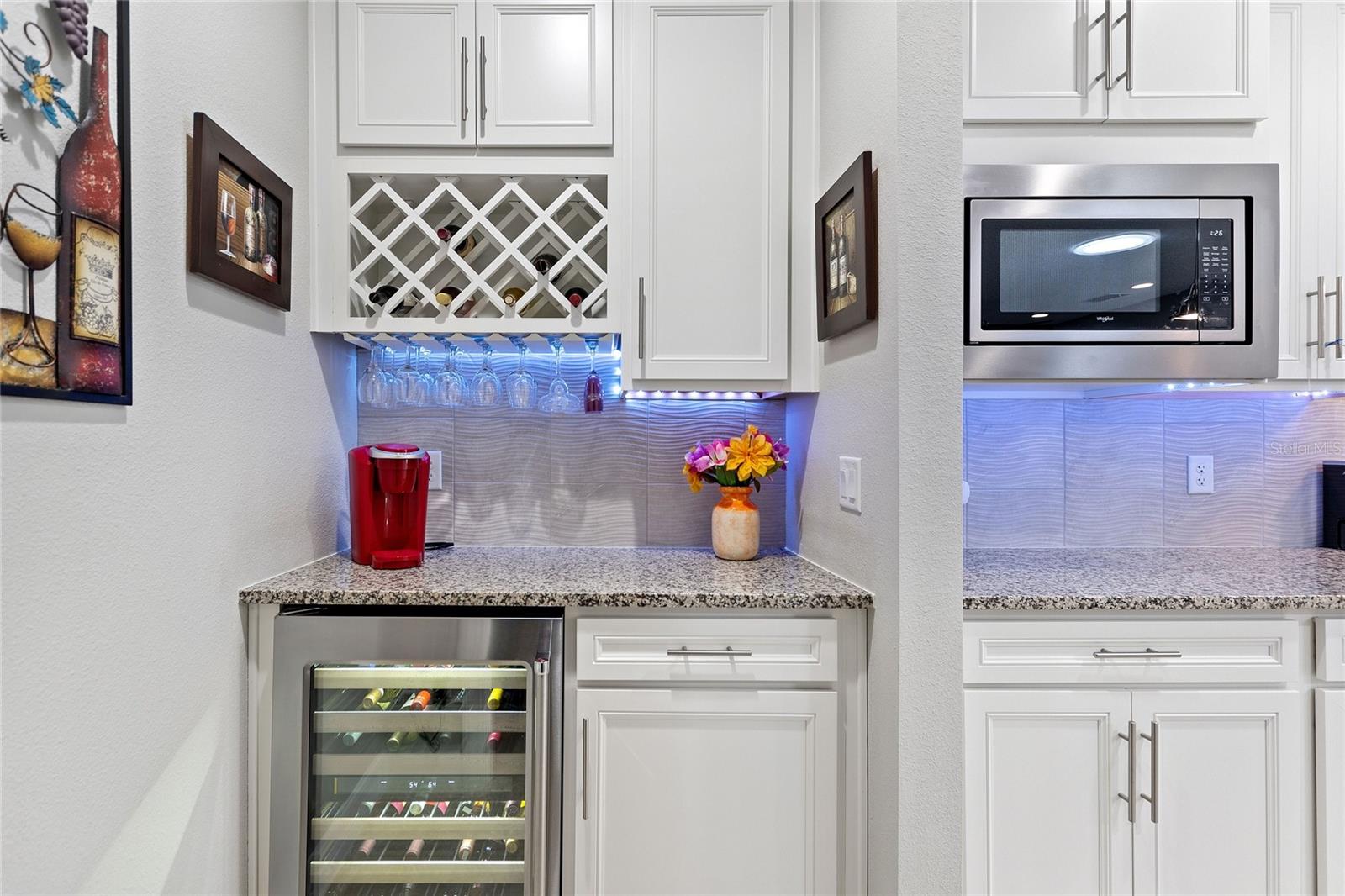 One or more photo(s) has been virtually staged. Welcome home to Del Webb Orlando! Truly exceptional 55+ resort-style living located in the gated golf community of Ridgewood Lakes. Convenient to shopping, hospital, restaurants, theme parks, airport and just a little over an hour to some of the world's most beautiful beaches! STUNNING HOME, METICULOUSLY MAINTAINED located on a highly desirable lot across from greenspace with a privacy fence at the rear. This exceptional home offers the perfect blend of comfort, flexibility, and upscale upgrades. Step inside to an open-concept floor plan featuring 2 bedrooms, 2 baths, plus a private office offering an easy conversion to a 3rd bedroom to suit your needs. The EXPANSIVE GATHERING ROOM flows seamlessly into a beautifully appointed kitchen and dining room, highlighted by a stylish shiplap accent wall. Chef’s Kitchen Features large granite island, gleaming stainless steel appliances, raised dishwasher for added convenience, stylish 42" white shaker cabinets with crown molding, upper & lower cabinet lighting, and butler’s pantry with wine fridge. Convenient Walk in Pantry with plenty of storage, and soft close cabinets with roll-outs! The Gathering Room and additional SUN ROOM fill the home with natural light, while the spacious primary suite offers a relaxing retreat and Ensuite Bath with a tiled shower and walk-in closet. Impressive Garage & Exterior: 4-ft EXTENDED 3 CAR TANDEM GARAGE, Extended, widened paver driveway, garage storage racks, solar attic fans and attic access with fold-down ladder. Outdoor Living at Its Best: Massive 16x40 screened lanai ideal for entertaining large groups or relaxing in privacy. MORE Upgrades! Screened front porch, Plantation shutters throughout, Central vacuum system 8-foot doors, Tile & luxury plank vinyl flooring (NO carpet!). Solatube skylights for added natural light. Built-in drop zone off garage and home is Hardwired for security & surround sound. Equipped with Peace of Mind Features: Generac 22K whole house generator, Whole House Hydro Quad water filtration system, Micron 5 Stage reverse osmosis system, New Water and garbage disposal 2025. LAWN MAINTENANCE INCLUDED IN LOW HOA FEE! Bringing a furry friend? You will love the dog park with separated areas for large and smaller pups, complete with a doggie water station! The resident owned Montecito Clubhouse is a state-of-the-art facility with 30,000 square feet of amenities. Complete with fitness center, indoor walking track, dance/aerobic studio, ballroom, craft rooms, resort-style outdoor pool, and even an indoor pool and hot tubs! Grab a bite to eat and your favorite beverage at La Tapenade Tavern where you can also enjoy live music, karaoke, trivia, and bingo Wednesday - Saturday. Looking for more activities? Try your hand at pickleball, shuffleboard, tennis, bocce ball, or basketball. How about a relaxing day of golf at Ridgewood Lake's White Heron Public Golf Club and Restaurant /Bar? Take a stroll along the picturesque walking paths by the beautiful lakes or try your luck hooking a fish on the fishing dock. 24/7 GUARDED GATE ACCESS. BONUS - This community has NO CDD! You're just minutes away from everything you need. Call today to schedule your private showing. This home truly checks every box—location, upgrades, and lifestyle—all within the sought-after Del Webb Orlando community.