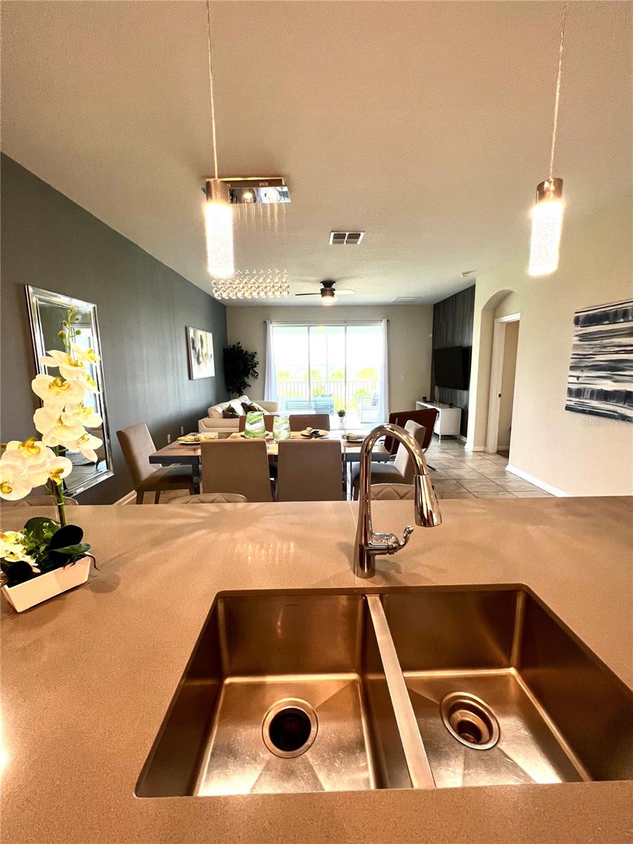 Amazing opportunity, income producing property, or living in the paradise, located in the Davenport/Orlando's Top Resorts, Champions Gate!!! This end unit has a rare nature preserve view overlooking a lake from the balcony. Located just minutes from Orlando and the famous theme parks. FULLY FURNISHED BUILT in 2021. The property's excellent rental history and availability for future bookings make it an attractive option for those seeking a relaxing and comfortable stay in a premier location. This 3 Bedroom, 2 Bathroom, + Game room or one car garage, it is Professional Decorated, and fully packed for the next owner. The kitchen offers quartz countertops, stainless steel appliances, and a dual sink. Laundry room with washer & dryer included. The open floor plan allows for great family and friends gatherings and is the perfect vacation rental. All bedrooms are very spacious and tastefully decorated. The master bathroom has separate sinks, a stand-up shower, and a large bathtub. Minutes away from Walt Disney World, Universal Orlndo Resort & Parks, the Omni Hotel and Resort, International Drive, and I-4, where residents and visitors of the Champions Club can play, eat and shop all within minutes from their doorstep. With so much to offer, The Oasis Club house offers limitless fun and enjoyment with ammenities as a water park, Pool, cabanas, Bar, game room & more. This place is for anyone looking to take a break from life and Live The Florida Sunshine State!!! Make your appoitment today.