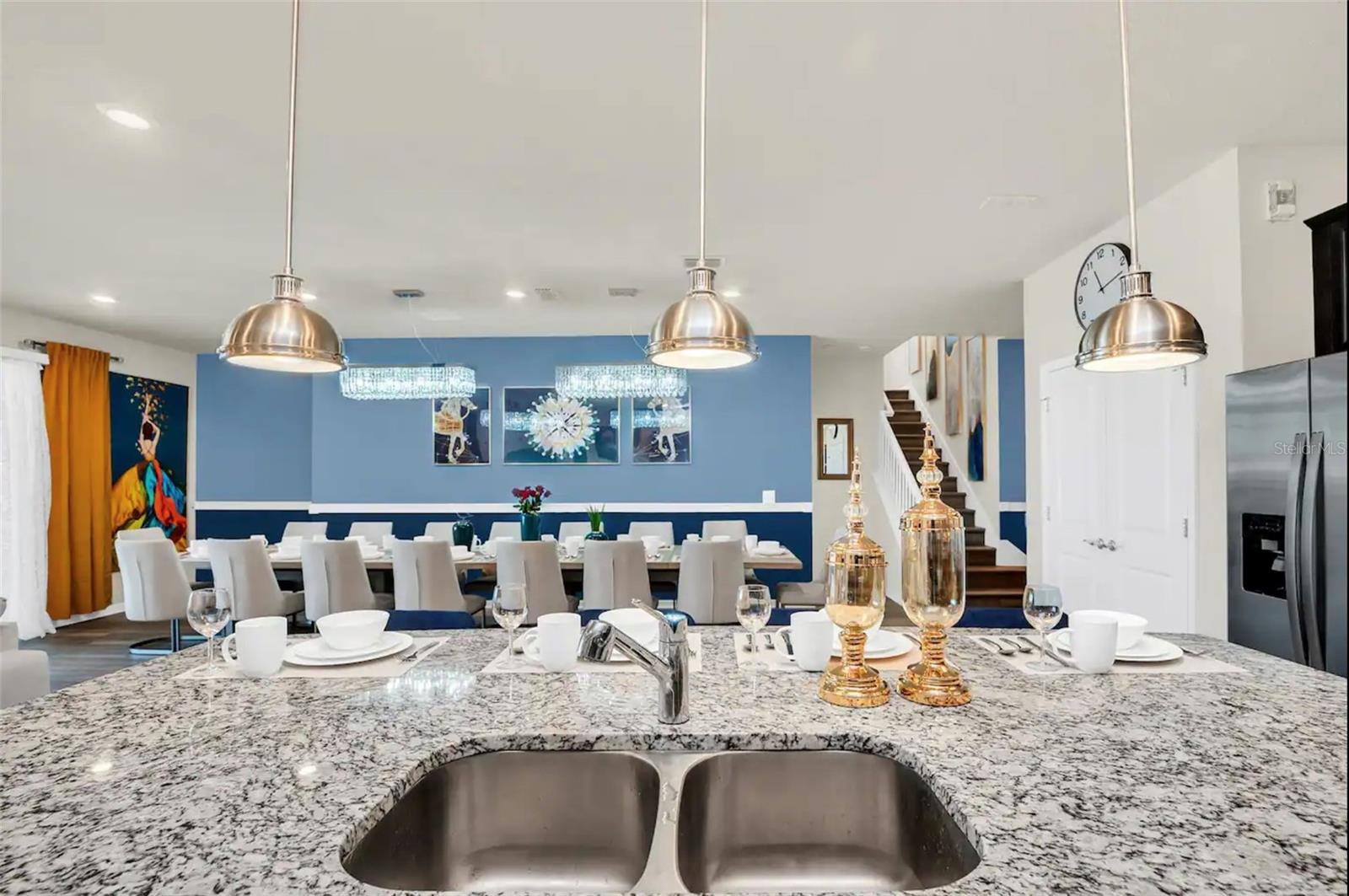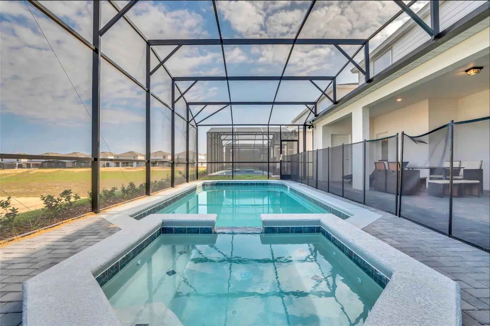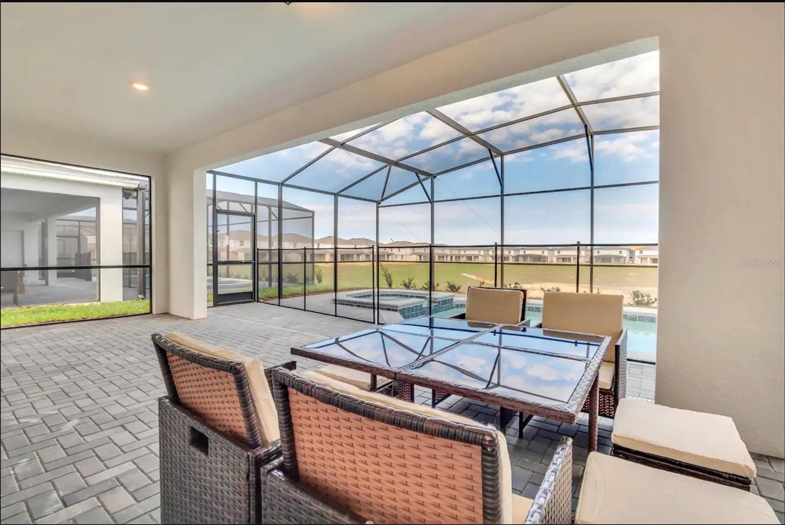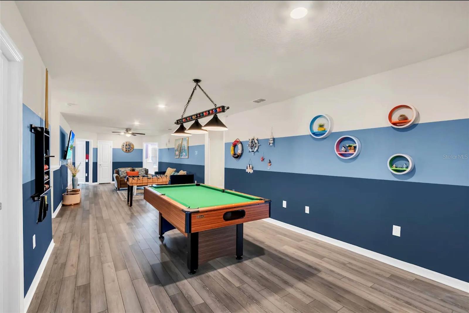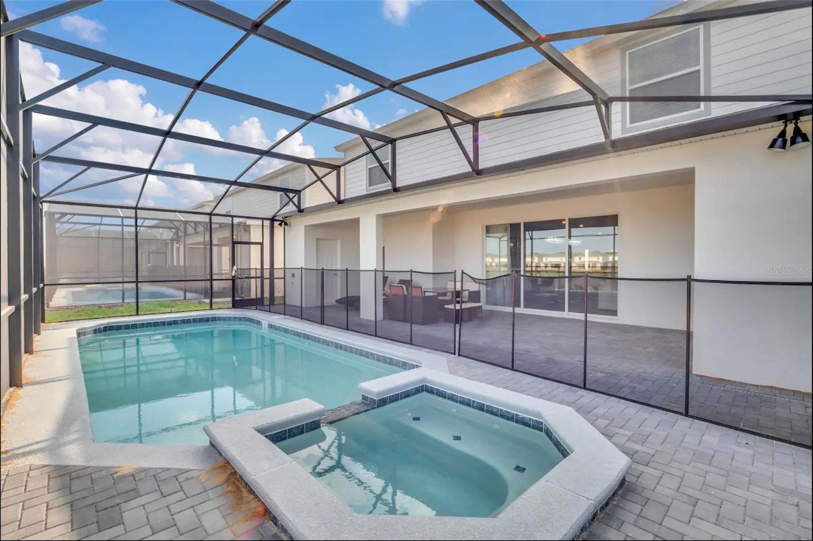 The Windsor Island Resort, a new and thrilling vacation home development, is ideally located near central Florida's major attractions, including Disney and Universal. This elegantly furnished home, sold complete with furniture, boasts 10 bedrooms and 8 bathrooms. It features a private, screened-in pool with a spa. Windsor Island's amenities rank among central Florida's finest, offering a zero-entry resort pool, a lazy river, water slides, a splash pad, a fitness center, a game room, mini-golf, a hammock garden, a sand volleyball court, a basketball court, private cabanas, a poolside bar, an ice-cream/snack bar, and a 24-hour guarded gate for enhanced security. The absence of neighbors behind the property provides additional privacy for residents.